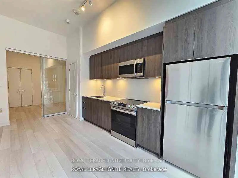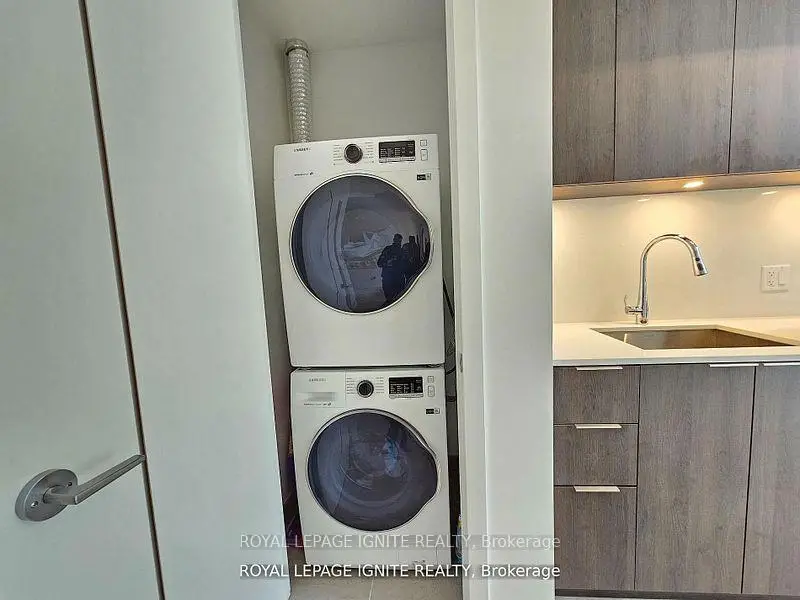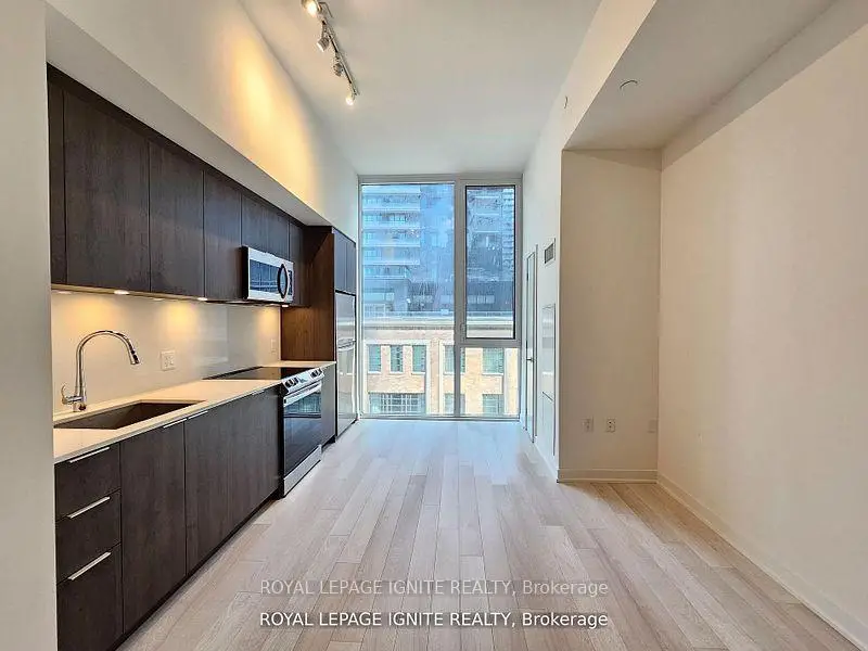 Experience luxury living in this 1-year-new 1 bedroom + den, 1 bath condo by Great Gulf, located in the heart of Toronto's Entertainment District. Featuring soaring 12-ft ceilings, floor-to-ceiling windows with a clear view, and stylish laminate flooring throughout, this unit offers an open-concept layout with a modern kitchen, quartz countertops, and backsplash. The den is perfect for a home office, and the suite includes convenient in-suite laundry. Enjoy access to premium amenities including a fitness studio, yoga studio, communal workspace, and podium terrace. Steps to shopping, dining, and transit-urban living at its finest.