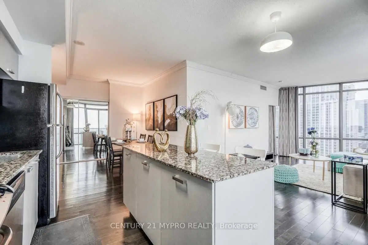Rare 3-Bed + Den, 1,264 Sq Ft Corner Suite in the Heart of Downtown!Freshly painted and completely carpet-free, this sun-filled suite features a desirable open-concept Zanardi layout with 9-ft ceilings. Spacious and functional design with stunning bird's-eye city views. Prime Bay & College location, steps to TTC, shopping, dining, U of T, TMU, major hospitals, and more. A rare large unit in the downtown core - don't miss this opportunity.Photos include previous staging. Unit is currently unfurnished.