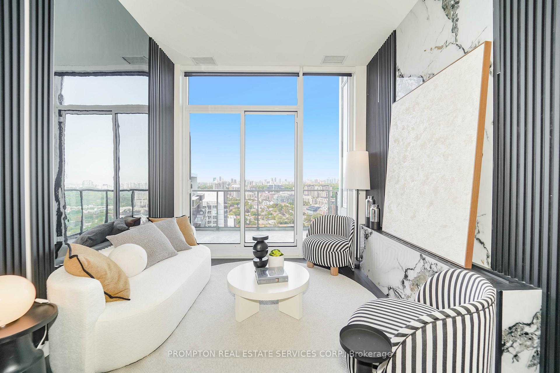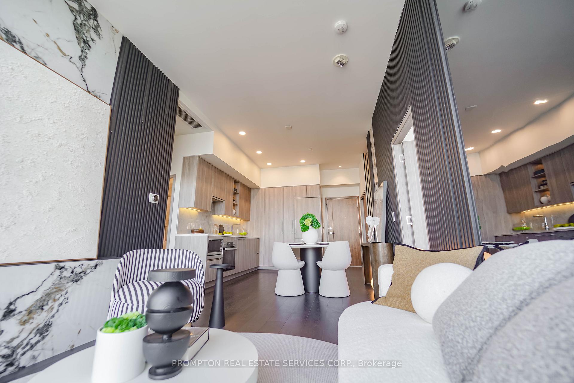 Experience refined luxury living at Seasons Condos by Concord in North York. This exquisite penthouse west-facing suite offers 850 sq ft of thoughtfully designed interior space, paired with an expansive 138 sq ft balcony. Flooded with natural light, it features soaring 9 ft ceilings and impressive floor-to-ceiling windows. The contemporary open-concept kitchen showcases quartz countertops and premium Miele appliances, perfect for both everyday living and entertaining. The spa-inspired bathroom is appointed with custom cabinetry, quartz finishes, and an elegant undermount sink. The sophisticated bedroom includes built-in custom closets and chic roller blinds for added privacy and style. Situated just steps from Bessarion TTC subway station, this exceptional location offers unbeatable convenience with immediate access to an 8-acre park, shopping destinations, and a variety of dining experiences. Enjoy the ultimate in style and comfort in one of North Yorks most prestigious penthouse addresses.