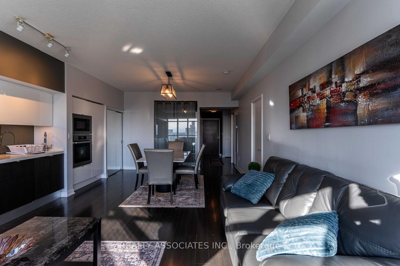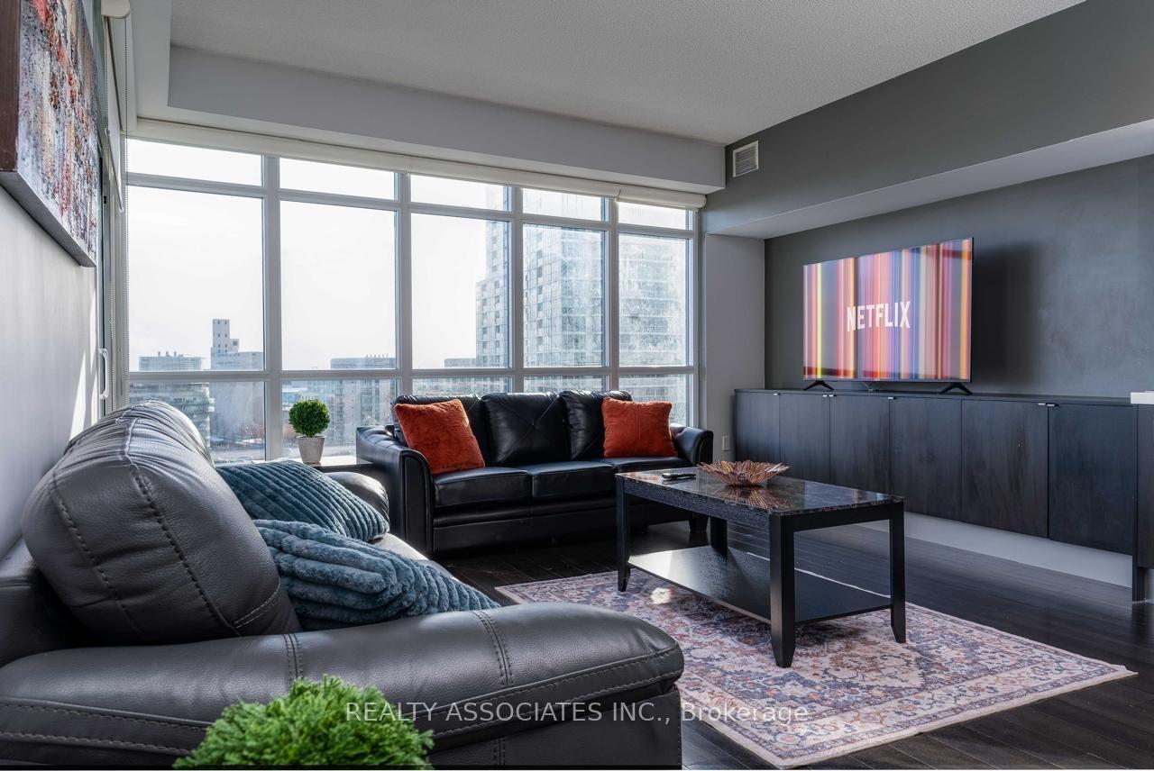 Spacious and sunny 2 - Br + den with 2- bathroom unit. Sought-after Parade 2 condo in vibrant City Place Community. 9 Feet ceilings with clear views of Canoe Landing Park and Lake Ontario. Spectacular views! Open concept kitchen, dining and living room with walkout to south facing balcony. Split bedroom floor plan for privacy with generous size primary bedroom. Resort style amenities. 24/7 concierge, party room with terrace and BBQ, fitness centre, gym, yoga studio, aerobics room, squash court, pet spa, pool, sauna, hot tub, theater and billiard room. 2 car parking spaces and 1 locker included.