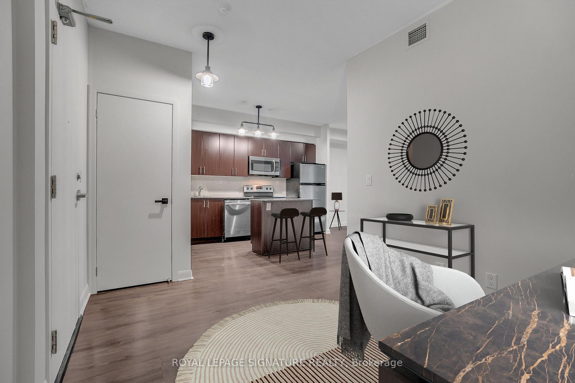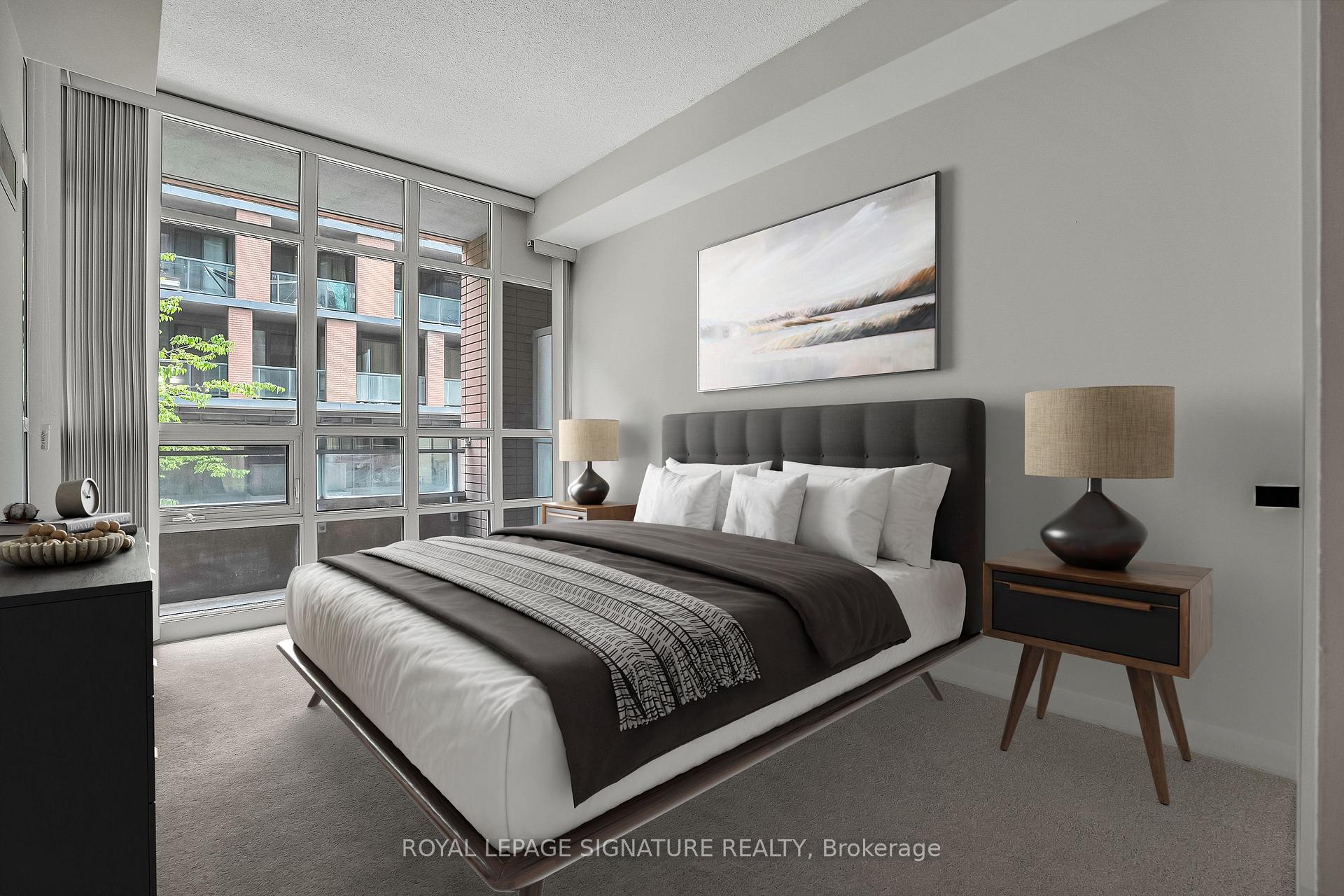 Spacious 1+ den condo with walk-out balcony in a prime downtown location with parking & locker. This bright and functional 1+den layout features a spacious living room with walk-out to a private balcony, a modern kitchen with granite countertops, stainless steel appliances, and a centre island with breakfast bar perfect for entertaining or casual meals. The primary bedroom impresses with wall-to-wall, floor-to-ceiling windows and a large walk-in closet. Stylish laminate flooring flows throughout the unit. Amenities include: Concierge, fitness centre, party/meeting room, rooftop garden, visitor parking. Situated in a centrally located boutique building near the Lake, Billy Bishop Airport, CNE, major sports stadiums, financial and entertainment districts, plus steps to the grocery store and LCBO. Ideal for professionals, investors, or anyone seeking vibrant downtown living!