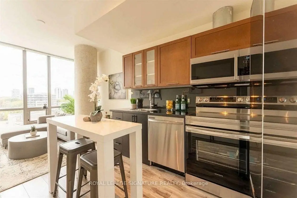 Welcome to 33 Mill Street, where historic charm meets modern living! This beautifully renovated and freshly painted 1-bedroom + den condo offers 642 sq. ft. of bright, open-concept space with soaring 10-foot polished concrete ceilings and stylish flooring throughout.The sleek, upgraded kitchen is equipped with stainless steel appliances and ample storage,making it perfect for cooking and entertaining. The versatile den is ideal as a home office or even a second bedroom. Located in one of Toronto's most vibrant neighbourhoods, you'll be just steps from boutique shops, top-rated restaurants, theatres, transit, and the waterfront. Enjoy resort-style amenities, including a concierge, outdoor pool, hot tub, sun deck, and fitness centre.Renovated just two years ago with all-new appliances, this stunning condo is move-in ready.Don't miss your chance to own a piece of the Distillery District's unique charm-book your showing today!