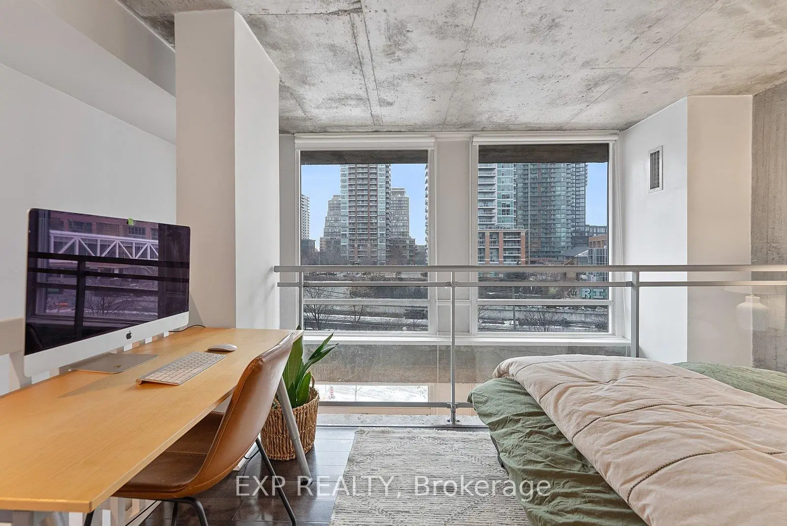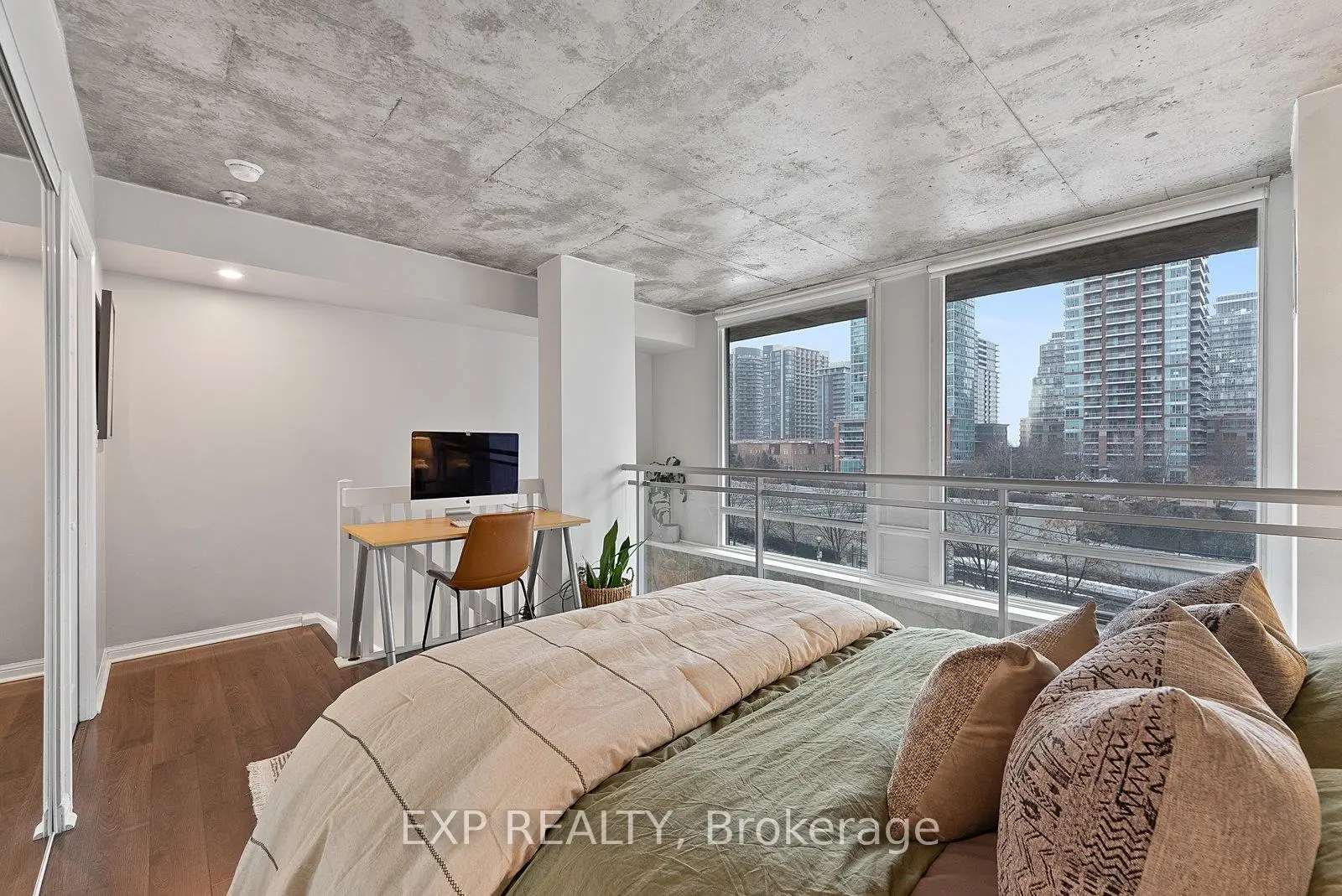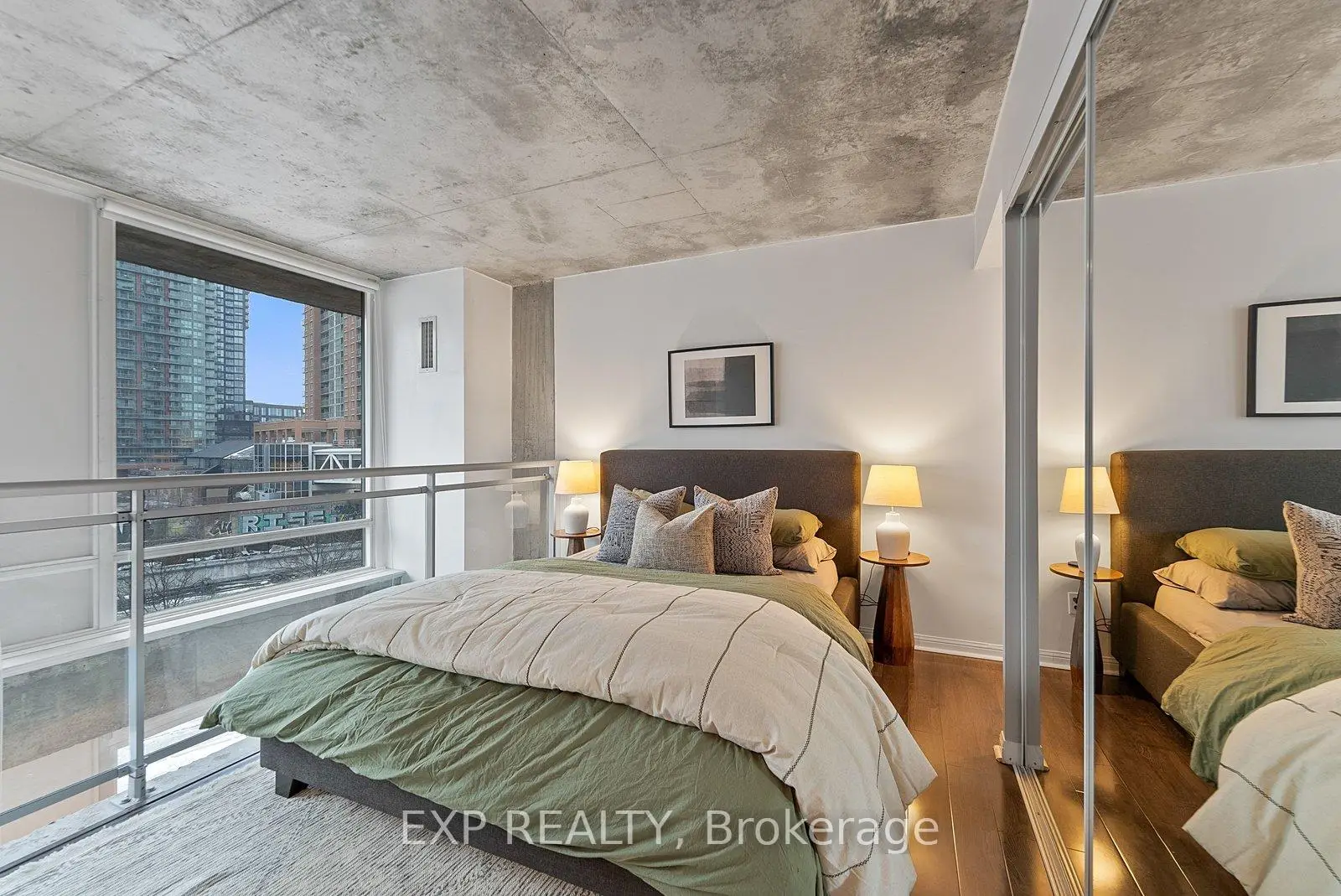 The Ultimate First-Time Buyer Loft In Toronto. Welcome To Electra Lofts-Where Owning A Two-Storey Loft Is More Than Just Owning A Condo. It's Owning A Rare And Architecturally Distinctive Piece Of Toronto Real Estate That Stands Apart And Holds Long-Term Value. This Move-In-Ready, South-Facing Two-Storey One-Bedroom Loft Is Located In A Highly Sought-After Boutique Building In The Heart Of King West. Thoughtfully Designed And Flooded With Natural Light, The Space Showcases Soaring 18-Foot Ceilings, Exposed Concrete Walls And Ceilings, And Dramatic Floor-To-Ceiling Windows That Define True Urban Loft Living.The Open-Concept Main Level Is Ideal For Entertaining, While The Upper-Level Bedroom Offers Privacy Along With Generous Storage. Step Out Onto Your Large South-Facing Balcony-Perfect For Morning Coffee Or Unwinding In The Evening. One Owned Parking Space And One Owned Locker Complete The Offering.Enjoy Unbeatable Convenience With TTC Transit At Your Doorstep And Some Of Toronto's Top Restaurants, Cafés, And Lifestyle Amenities Just Steps Away. Low Maintenance Fees Include Hydro, Heat, And Water, Making This An Exceptional Opportunity For First-Time Buyers, End-Users, And Investors Alike.