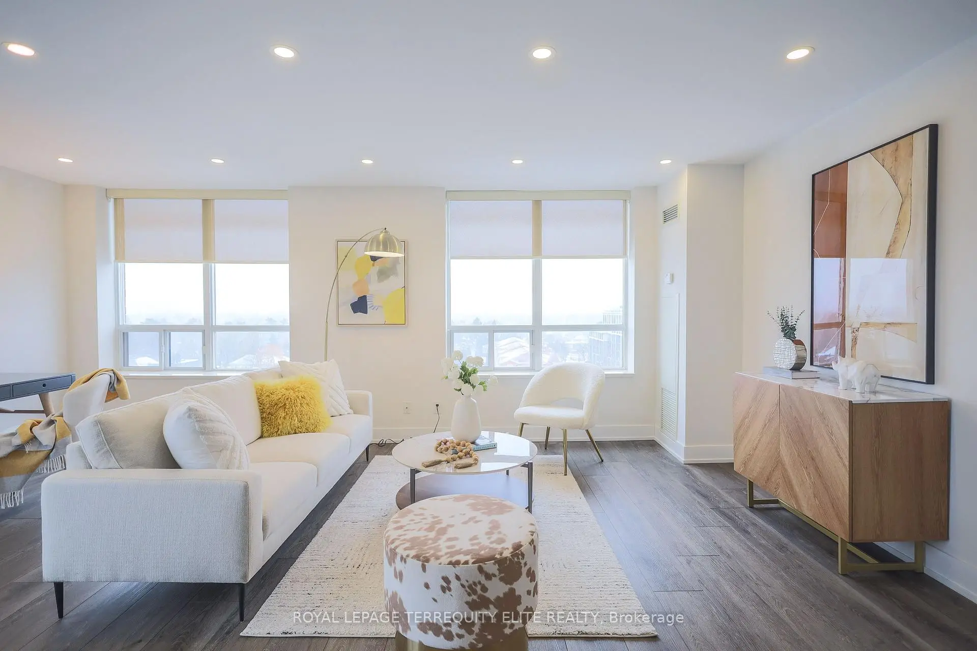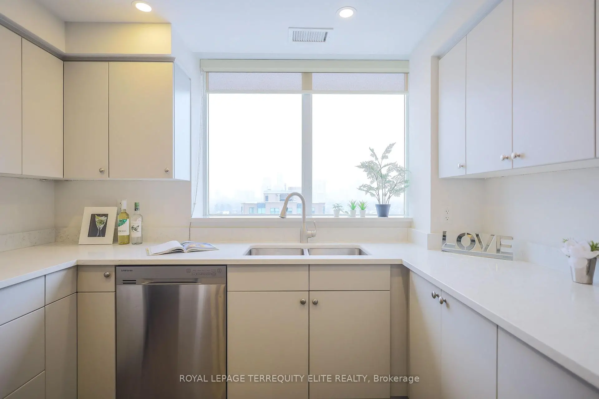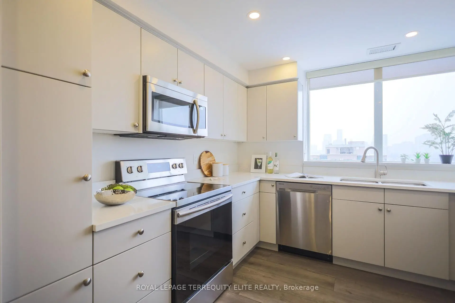 Welcome to your quiet oasis in Bayview Mansions-a serene sanctuary in the heart of the city! This rare, stunning, and spacious 1,144 sq. ft. corner unit. featuring 2 bedrooms and 2 baths. has been meticulously transformed to offer a truly luxurious living experience. Step inside and be greeted by unobstructed, sun-drenched views and an incredible abundance of natural light from the desirable North and West exposures. complemented by soaring 9-foot ceilings! The gourmet kitchen is a chefs delight, featuring Quartz countertops. integrated stainless steel appliances, custom cabinetry with under-counter LED lighting, and a matching Quartz window sill. The primary suite is a private retreat with built-in closet organizers and a fully renovated 4-piece ensuite showcasing an LED-lit mirror. French doors with clear glass elegantly separate the main living areas from the kitchen and primary suite. Every detail is tastefully upgraded: enjoy modern, durable vinyl plank flooring, LED lighting, baseboards throughout. and premium window coverings (roller blinds and California shutters). This is a truly turn-key home! Located in a prime spot for unparalleled convenience, you're just minutes from Bayview TTC Station, Bayview Village Shopping Centre, Highway 401, restaurants, and North York General Hospital. Plus, this incredible offering includes one underground parking spot and one locker for storage. Enjoy this perfect blend of elegance and location! This home is ready for you to move in and start making memories!