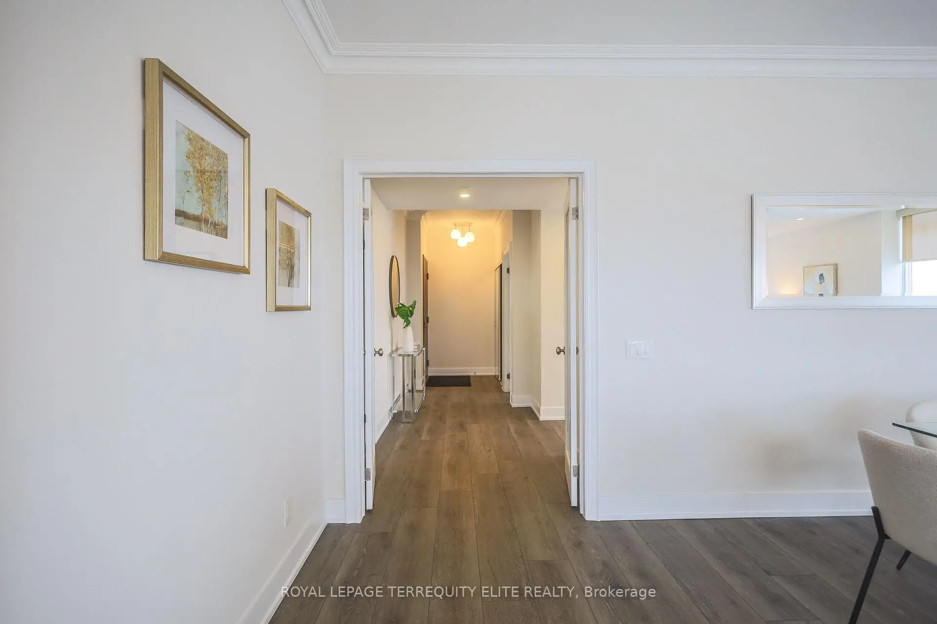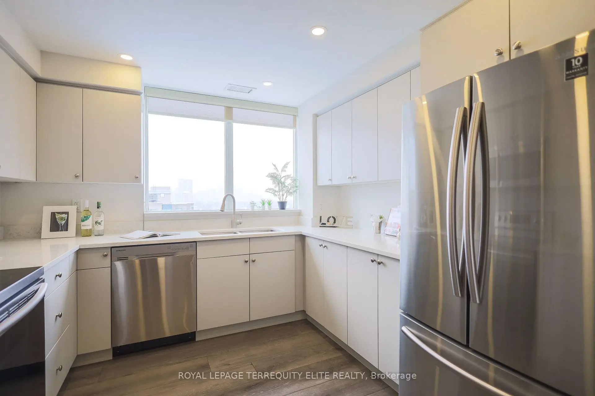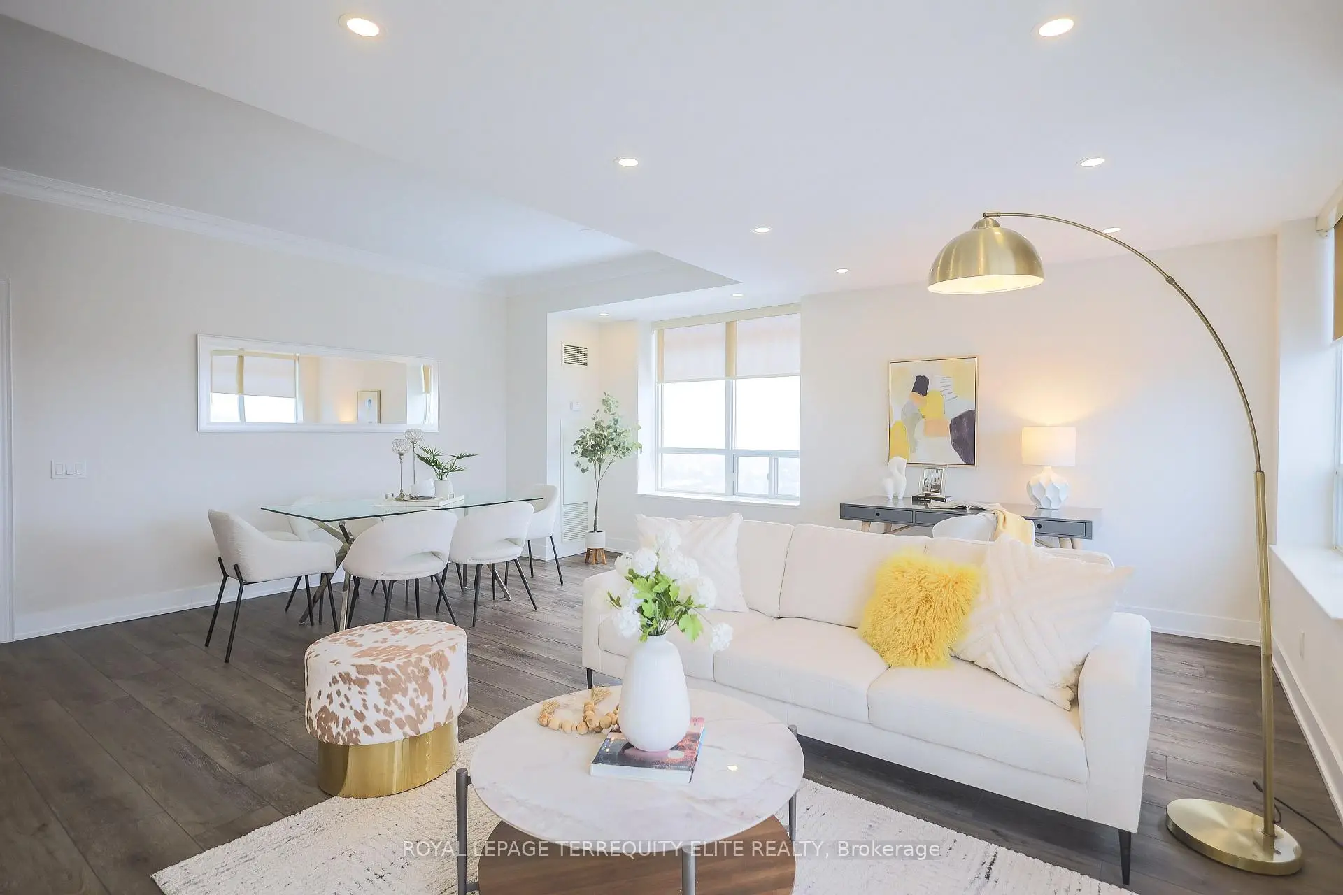 Welcome to your quiet oasis in Bayview Mansions-a serene sanctuary in the heart of the city! This rare, stunning, and spacious 1,144 sq. ft. corner unit. featuring 2 bedrooms and 2 baths. has been meticulously transformed to offer a truly luxurious living experience. Step inside and be greeted by unobstructed, sun-drenched views and an incredible abundance of natural light from the desirable North and West exposures. complemented by soaring 9-foot ceilings! The gourmet kitchen is a chefs delight, featuring Quartz countertops. integrated stainless steel appliances, custom cabinetry with under-counter LED lighting, and a matching Quartz window sill. The primary suite is a private retreat with built-in closet organizers and a fully renovated 4-piece ensuite showcasing an LED-lit mirror. French doors with clear glass elegantly separate the main living areas from the kitchen and primary suite. Every detail is tastefully upgraded: enjoy modern, durable vinyl plank flooring, LED lighting, baseboards throughout. and premium window coverings (roller blinds and California shutters). This is a truly turn-key home! Located in a prime spot for unparalleled convenience, you're just minutes from Bayview TTC Station, Bayview Village Shopping Centre, Highway 401, restaurants, and North York General Hospital. Plus, this incredible offering includes one underground parking spot and one locker for storage. Enjoy this perfect blend of elegance and location! This home is ready for you to move in and start making memories!