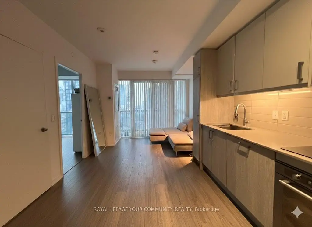 Live in the heart of downtown in this bright and functional 1-bedroom, 1-bath residence featuring stunning west-facing, unobstructed city and waterfront views through floor-to-ceiling windows. This well designed unit offers 9-foot ceilings, high quality laminate flooring throughout, and a modern open concept kitchen with built-in stainless steel appliances. Enjoy abundant natural light all day and step out onto a spacious balcony. Located just minutes from Yonge & Dundas subway station, TMU, George Brown College, Eaton Centre, Dundas Square, St. Michael's Hospital, and major transit routes. Residents enjoy exceptional amenities including a 24-hour concierge, fitness centre, yoga studio, party room, business and study lounges, TV & fireplace lounge and outdoor terrace.
