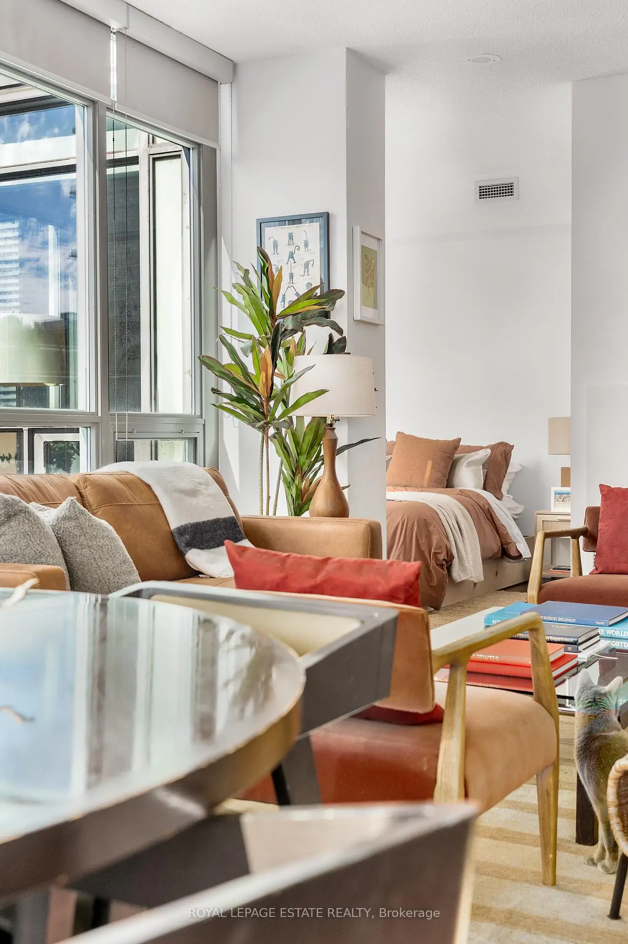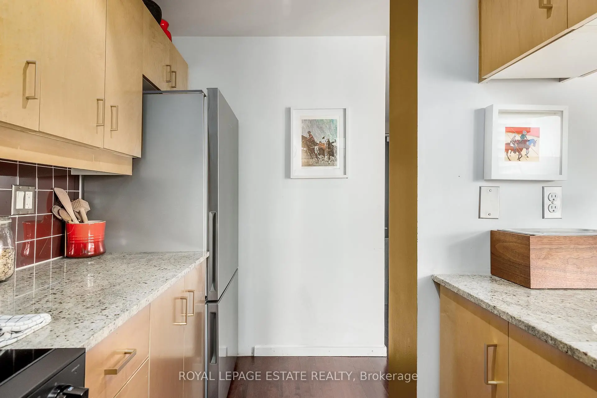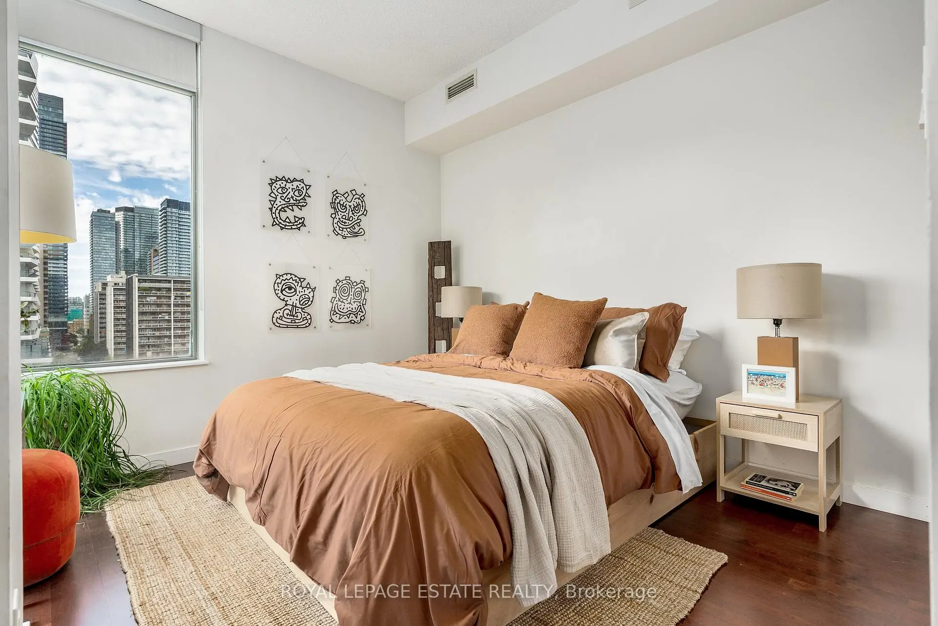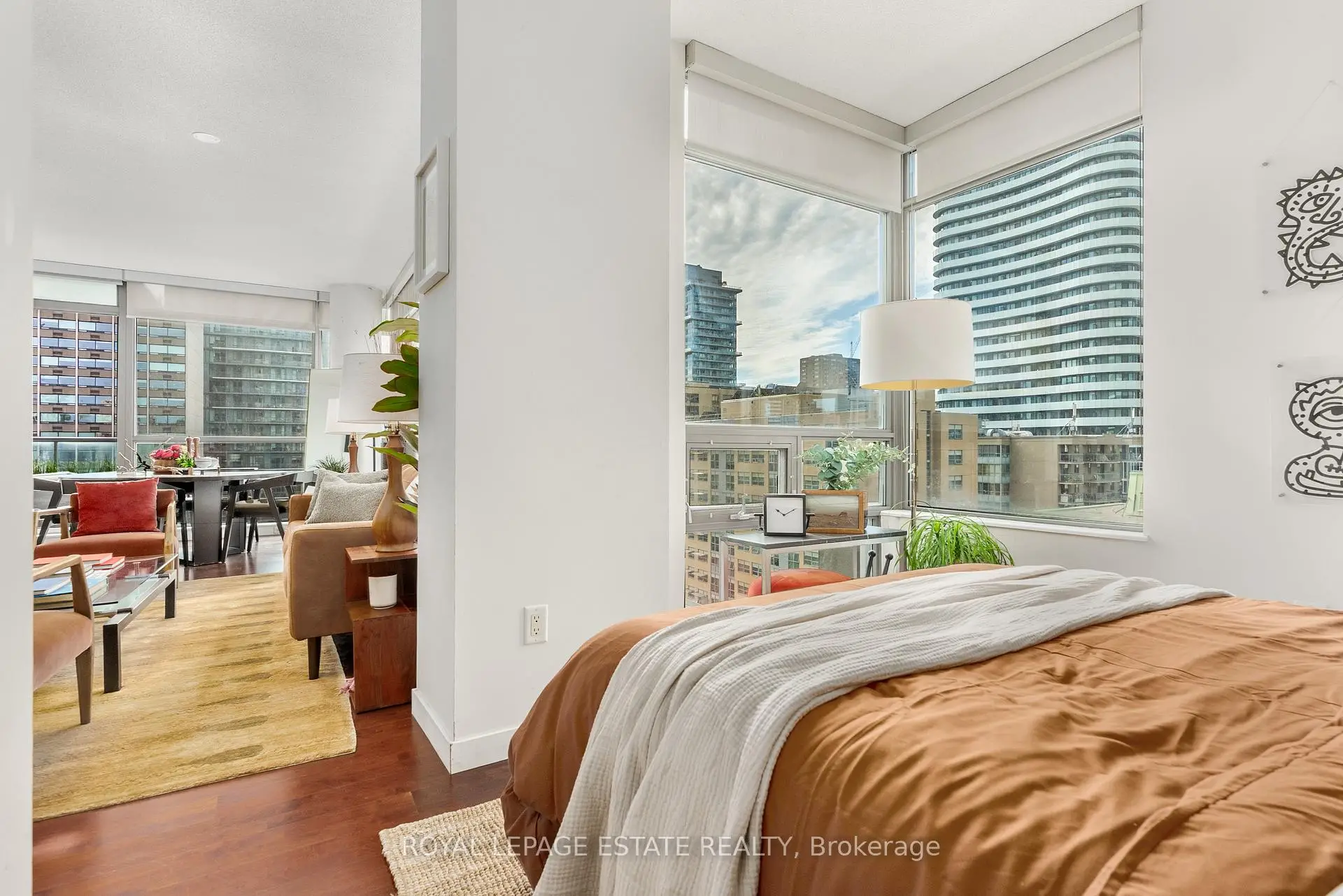 SUITE FREQUENCY. Welcome to Suite 1003 at Radio City Condos, located at 281 Mutual Street on the historic former CBC Radio campus in downtown Toronto. This thoughtfully curated corner suite features two bedrooms, two bathrooms, soaring 9-foot ceilings, and floor-to-ceiling windows that flood the space with natural light.A rare southwest-facing 100 sq. ft. balcony extends from both the living area and the primary bedroom, offering seamless indoor-outdoor living and expansive city views. A proper foyer entry sets the tone, opening directly to the skyline beyond.The kitchen is equipped with warm maple cabinetry and updated stainless-steel appliances, combining function with timeless appeal.Radio City is a well-managed, full-service building offering 24-hour concierge and security, a fitness centre, sauna, media and party rooms, guest suites, on-site property management, caretakers, and visitor parking.Tucked away on a quiet one-way street lined with mature trees and charming Victorian homes, yet just steps from the Church-Yonge corridor, this location places you moments from the National Ballet School, Yonge-Dundas Square, Yorkville, U of T, TMU, and Toronto's premier dining, culture, and nightlife.A coveted downtown address offering comfort, character, and true urban convenience.