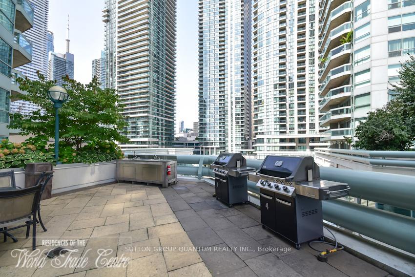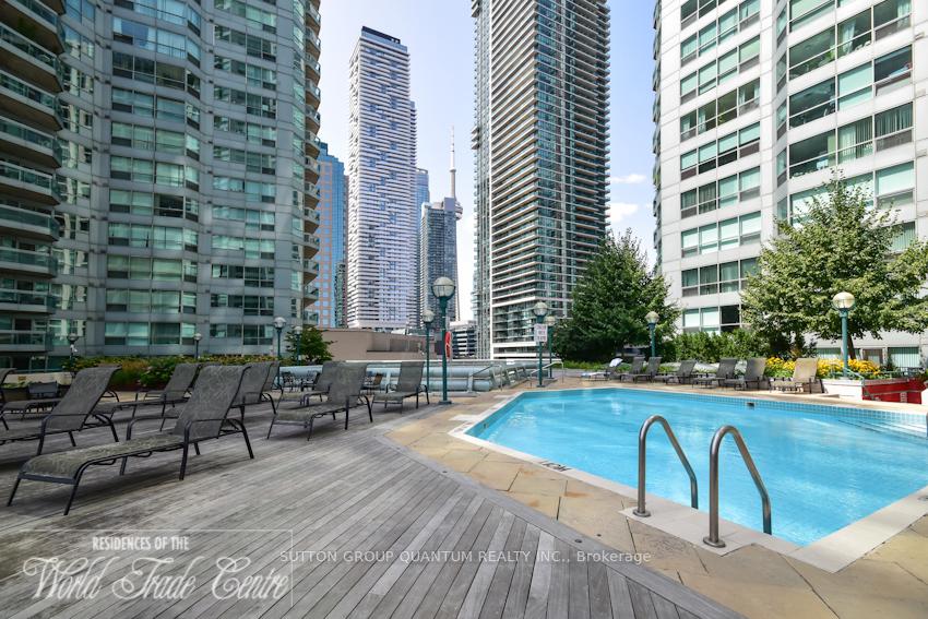 Welcome To The Residences Of The World Trade Centre. This 1 Bedroom + Den Suite With 1.5 Baths Features Approximately 900 Interior Square Feet. Designer Kitchen Cabinetry With Stainless Steel Appliances, Stone Countertops, Under Cabinet Lighting, Undermount Sink & A Breakfast Bar. Bright Floor-To-Ceiling Windows With Hardwood Flooring & Customized Roller Shades Throughout With A Walk-Out Facing The Outdoor Terrace & Pool Views. A Spacious Sized Bedroom With A 3-Piece Ensuite, Walk-In Closet & A 2nd Walk-Out To The Balcony. A Separate Den Area Perfect For A Home Office Or Can Be Used As A 2nd Bedroom. Balcony includes wooden floor tiles. Steps To Toronto's Harbourfront, Scotiabank Arena, C.N. Tower, Rogers Centre, Ripley's Aquarium, Union Station, The Underground P.A.T.H., Financial & Entertainment Districts. 1-Parking Space, 1-Locker, Cable, Internet & Hydro Electricity Is All Included In The Monthly Maintenance Fees. Visitors Parking.