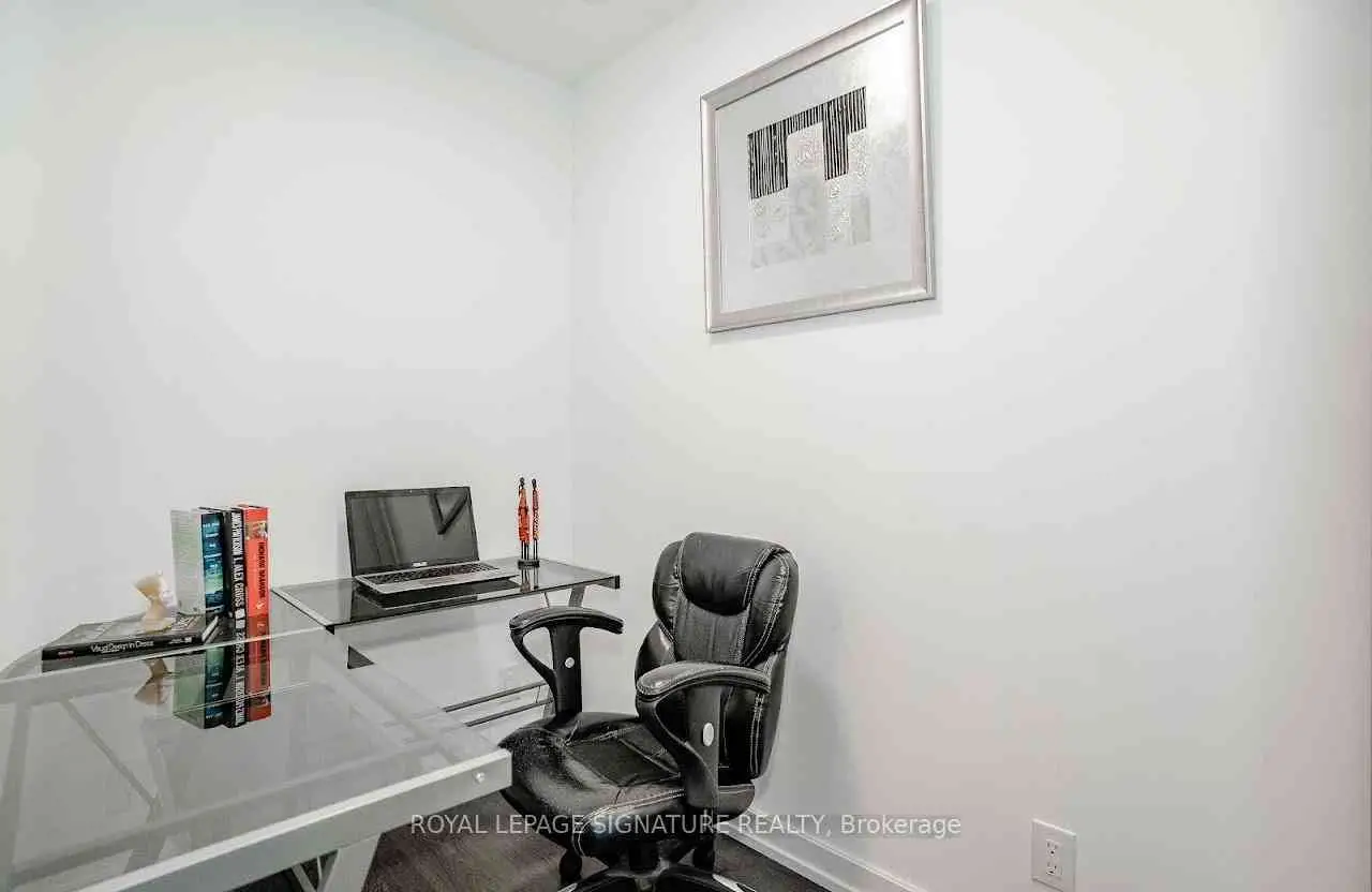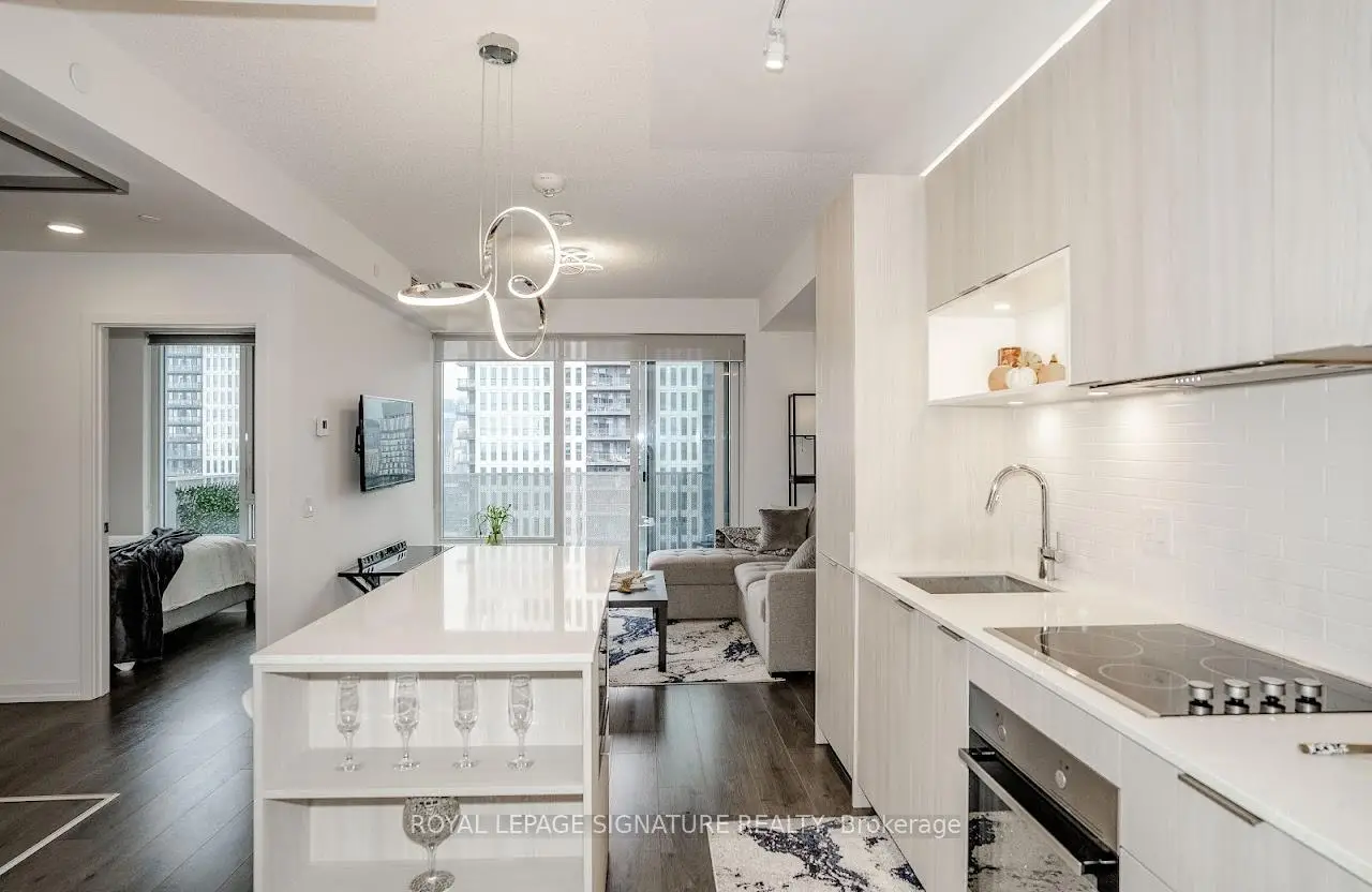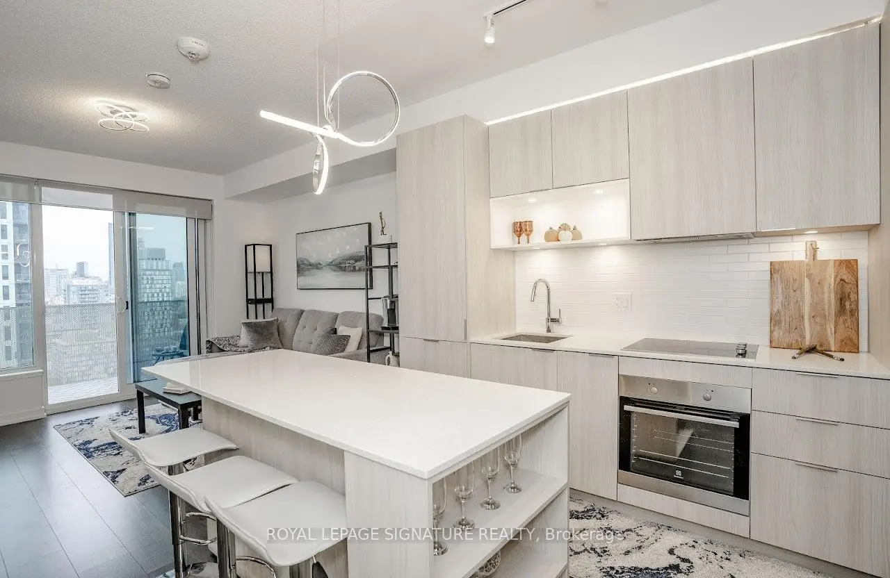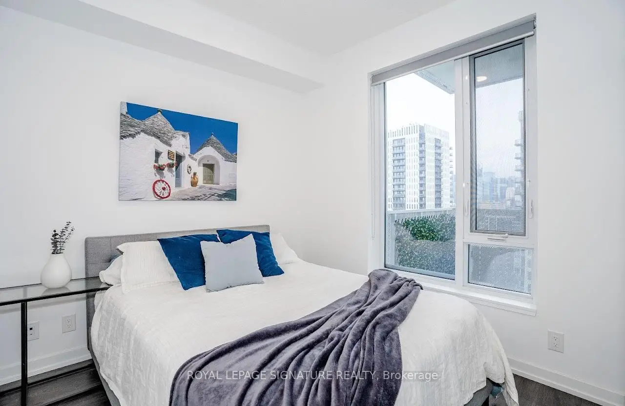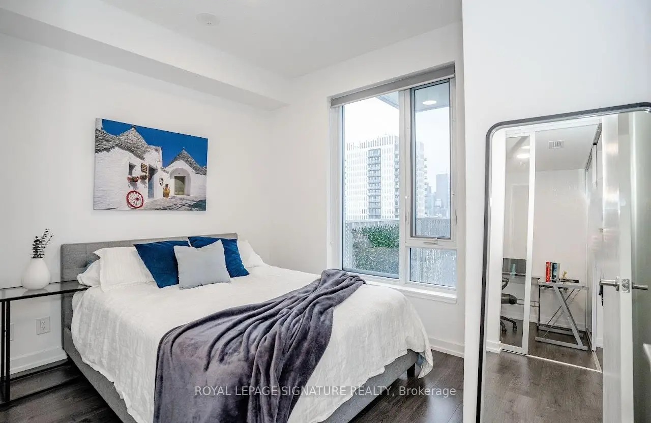 Welcome to "The Wyatt" by Daniel Corp. Modern, Bright and Sleek 1+ Den/Office Unit With 1 Parking Space and 1 Storage. Functional and Well Designed Layout With 9 foot Ceiling, Laminate Flooring Throughout, Huge Windows Flood The Space With Natural Light. Freshly Updated Unit Presents Like New, Featuring Professional Repainting And Detailed Touch-Ups. Modern Upgraded Kitchen With Centre Island, Quartz Countertops, Cabinet Lighting, and Built-In Stainless Appliances. The Unit Boasts a Massive Balcony Overlooking Clear South-West City And Park Views. Amazing Amenities Include Gym, Party Room, Roof Top Terrace, BBQ's, Rock Climbing Room and Lounge. Steps From TTC Streetcars, Easy Access To DVP, Community Centre, Soccer Field, Basketball Court, Aquatic Centre and Parks all in Walking Distance. Great Opportunity To Live Or Invest In Great Community In Regent Park.