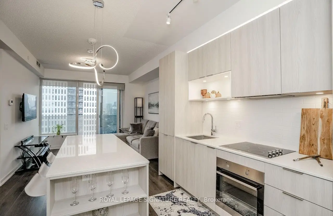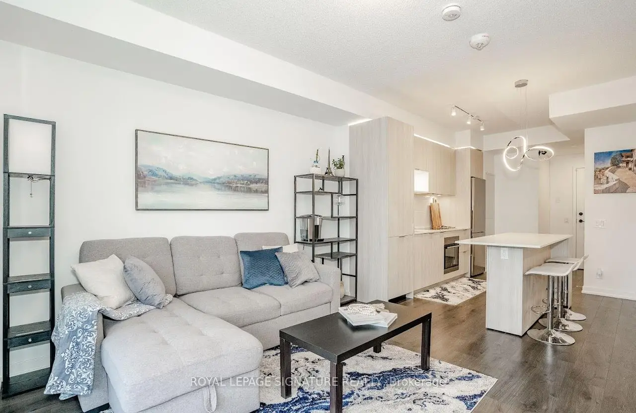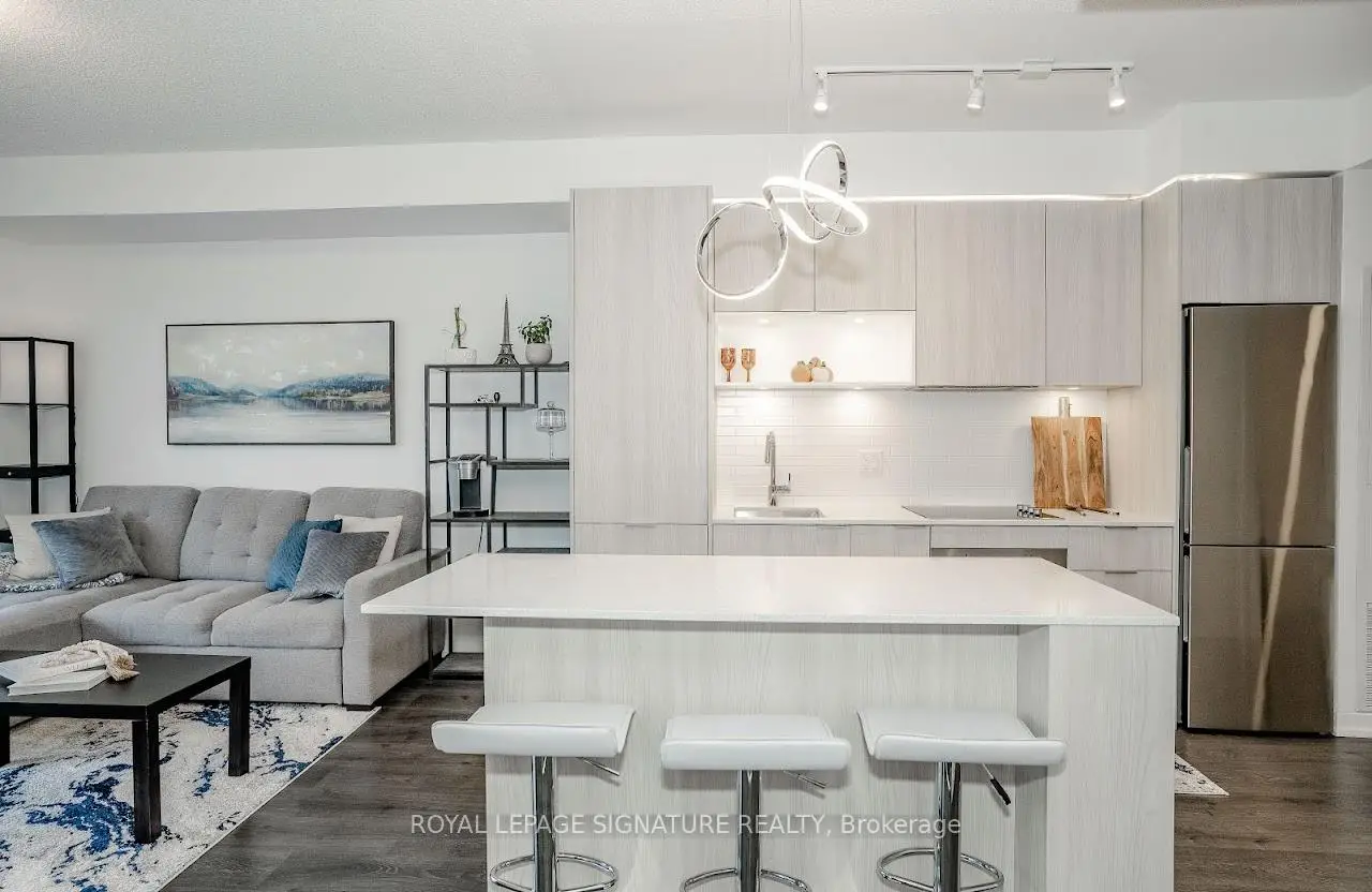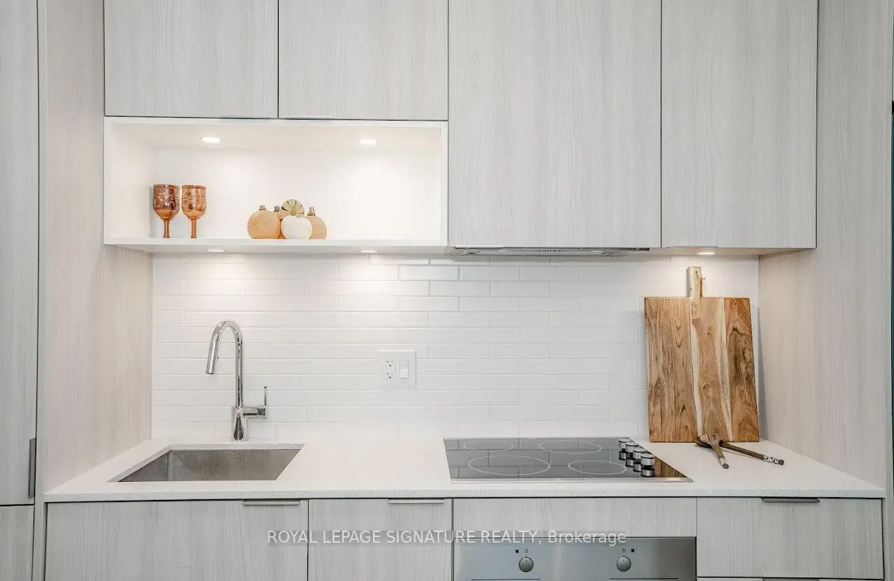 Welcome to "The Wyatt" by Daniel Corp. Modern, Bright and Sleek 1+ Den/Office Unit With 1 Parking Space and 1 Storage. Functional and Well Designed Layout With 9 foot Ceiling, Laminate Flooring Throughout, Huge Windows Flood The Space With Natural Light. Freshly Updated Unit Presents Like New, Featuring Professional Repainting And Detailed Touch-Ups. Modern Upgraded Kitchen With Centre Island, Quartz Countertops, Cabinet Lighting, and Built-In Stainless Appliances. The Unit Boasts a Massive Balcony Overlooking Clear South-West City And Park Views. Amazing Amenities Include Gym, Party Room, Roof Top Terrace, BBQ's, Rock Climbing Room and Lounge. Steps From TTC Streetcars, Easy Access To DVP, Community Centre, Soccer Field, Basketball Court, Aquatic Centre and Parks all in Walking Distance. Great Opportunity To Live Or Invest In Great Community In Regent Park.