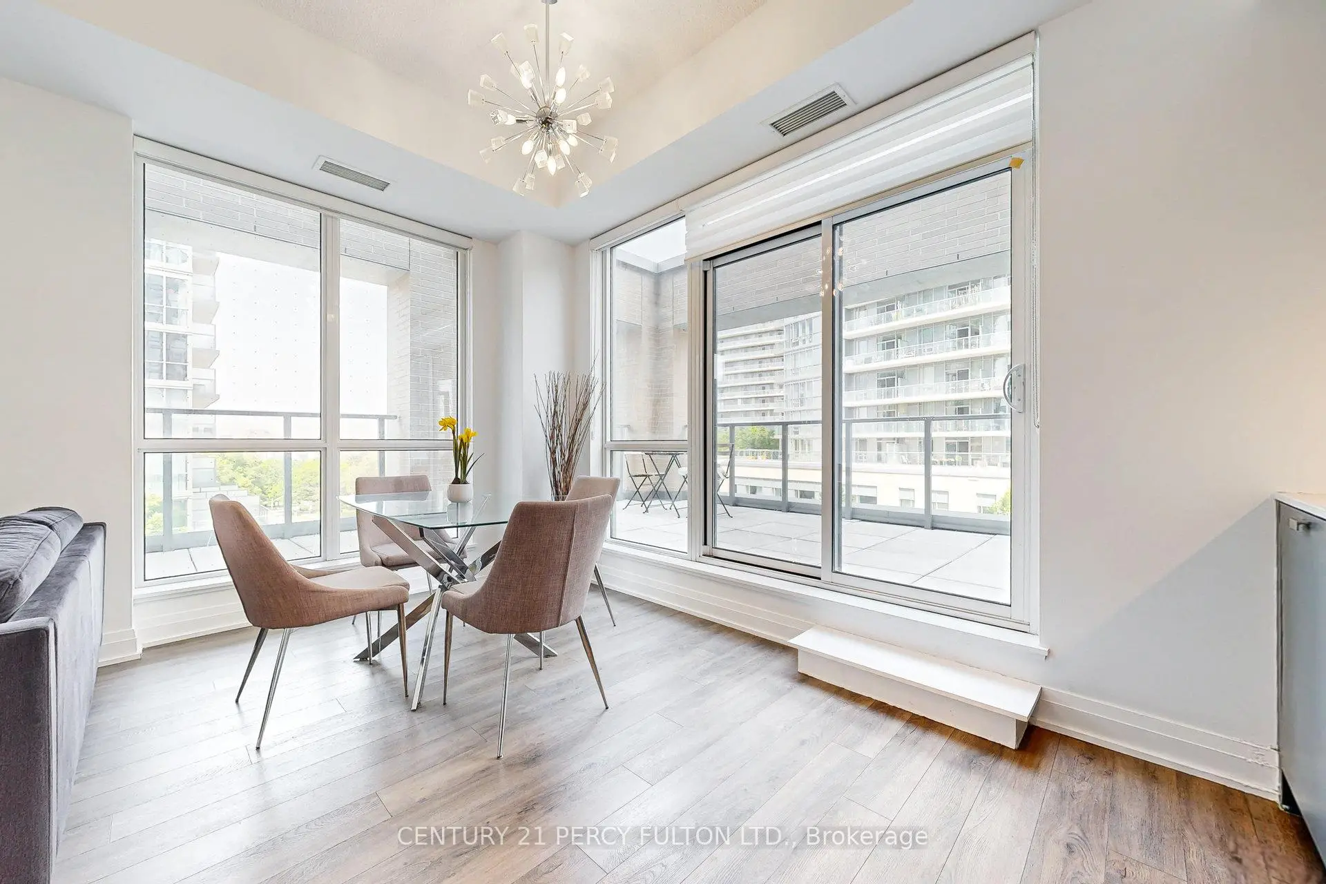 One of a kind! This sun soaked 2 Bedroom 2 Bathroom condo boasts 917 sq ft of spacious interior space plus a whopping 423 sq ft wraparound terrace. 9' ceilings and engineered hardwood throughout. Long hallway from foyer leads to an open office space - no need to work out of your bedroom for those working from home. The kitchen features built in European appliances, quartz countertop and beautiful ceramic backsplash. Spacious and Open concept family size living/dining rooms, and two full bathrooms. The oversize master bedroom has ensuite washroom and built in closet organizer - and yes, that's a king size bed next to the vanity! And for the truly one-of a kind feature nobody else can claim: a 423 sq ft wraparound terrace. Enjoy the precious summer days from the comfort of your own home. Imagine hosting your friends and family on your own private patio. Imagine working from your balcony in the nice weather or enjoying long summer days steps from your own kitchen. This condo is truly luxury living! Amenities include: Gym, Yoga Room, Scandinavian Spa With Plunge Pools, Heated Stone Bed, Lounge, Outdoor Terrace, party room, guest suites, and Concierge. Live in the highly desirable Fairview Mall community. Freshco is next door, the subway is a 7 minute walk, and Highways 401 and 404/DVP are minutes away. Fairview Mall is across the street, restaurant, retail, Schools, Parks, Performing Centre For The Arts, Library and much more walking distance. This location can't be beat! Visit this area and you'll why see it's becoming more trendy with more amenities and restaurants coming in all the time - and you will want to call this vibrant community home too!