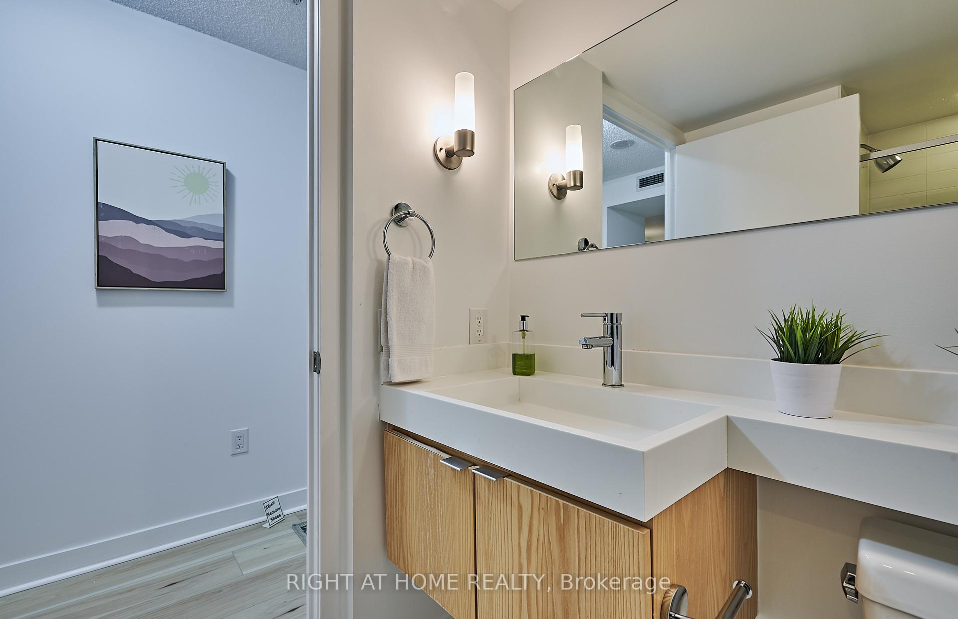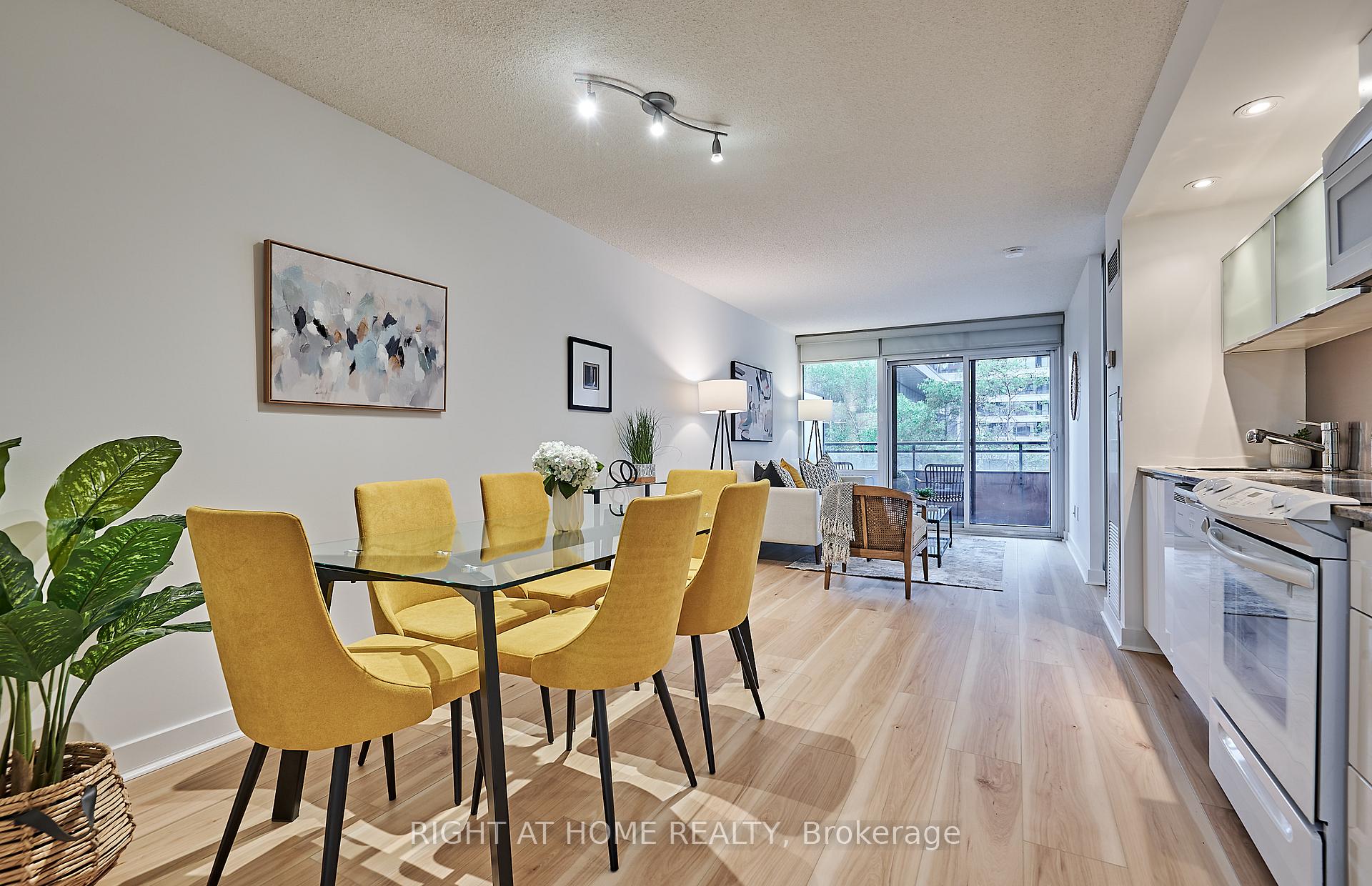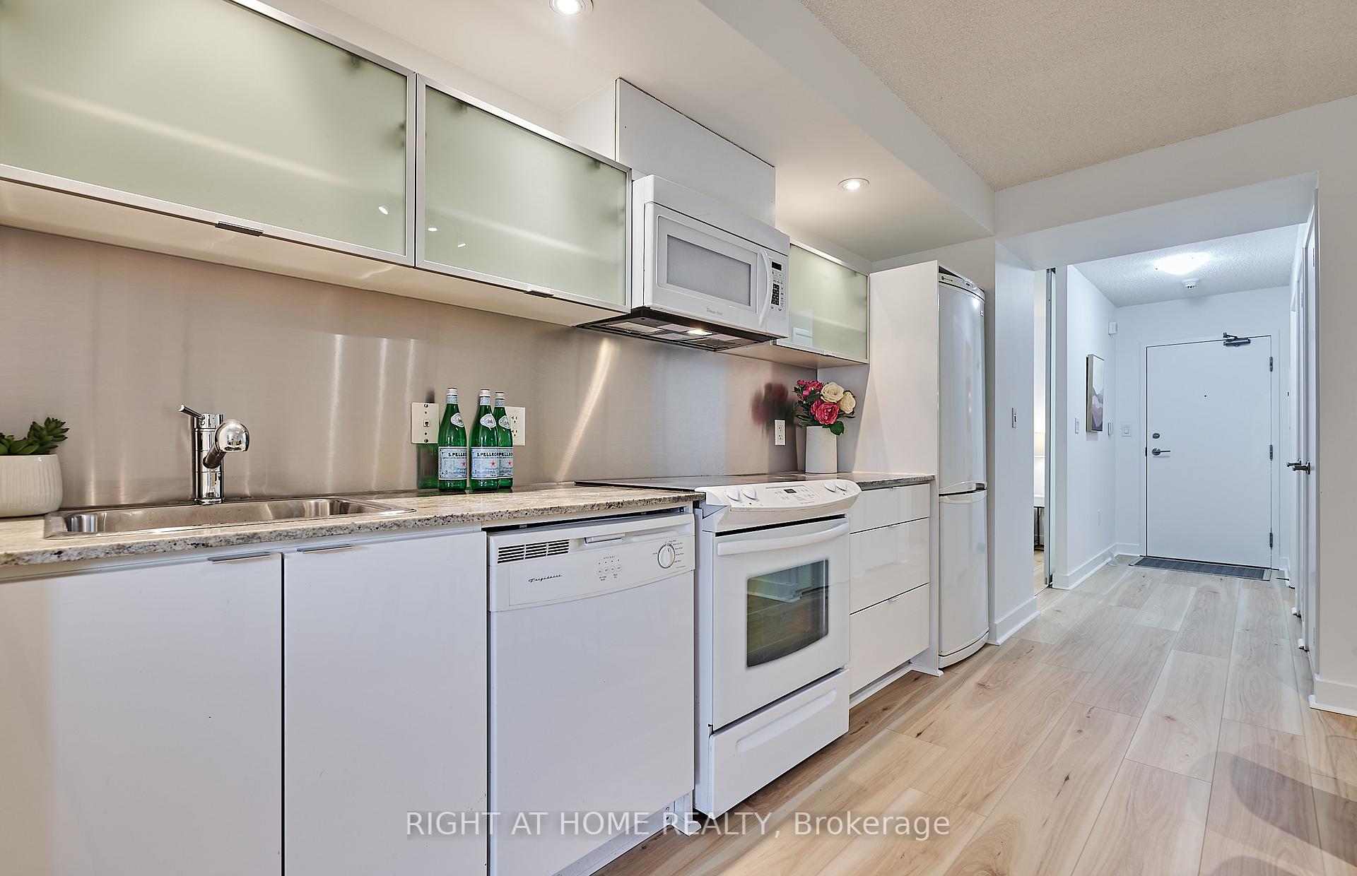 Rarely available at 4K Spadina/Neo, 2 bedroom, 2 bathroom suite overlooking a green and peaceful garden oasis with the option to skip the elevator and head down to the street in only 3 short flights! Incredible value and perfectly situated with a quiet treelined west facing view, with all the amenities of the core at hand. This suite features newer wide plank floors, a sleek kitchen with recently added pantry/bar for additional storage. Two full modern bathrooms, with extra lighting, built-in vanity and dresser added to ensuite. Generous room sizes and meticulously maintained and updated by the owner. A unique and tranquil escape from the hustle and bustle that surrounds, unwind and enjoy the garden view from a spacious balcony. Steps to shops, restaurants, TTC/GoTrain and grocers (Sobeys in building), The Well and Waterworks Food Hall. Minutes to Scotiabank Arena/Rogers Centre, CN tower, Waterfront Music Garden and the new Corleck Arts Centre. Private and secure, the building is equipped with 24hr security, indoor pool, exercise room, party room and visitor parking. Owner currently rents a storage locker for $80/month. Secure underground parking included.