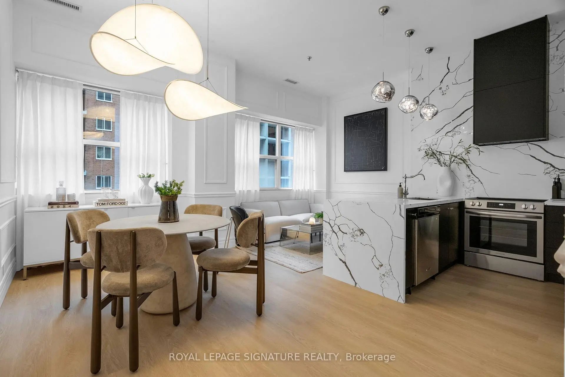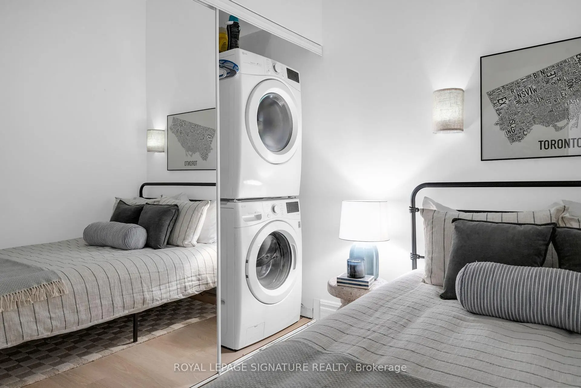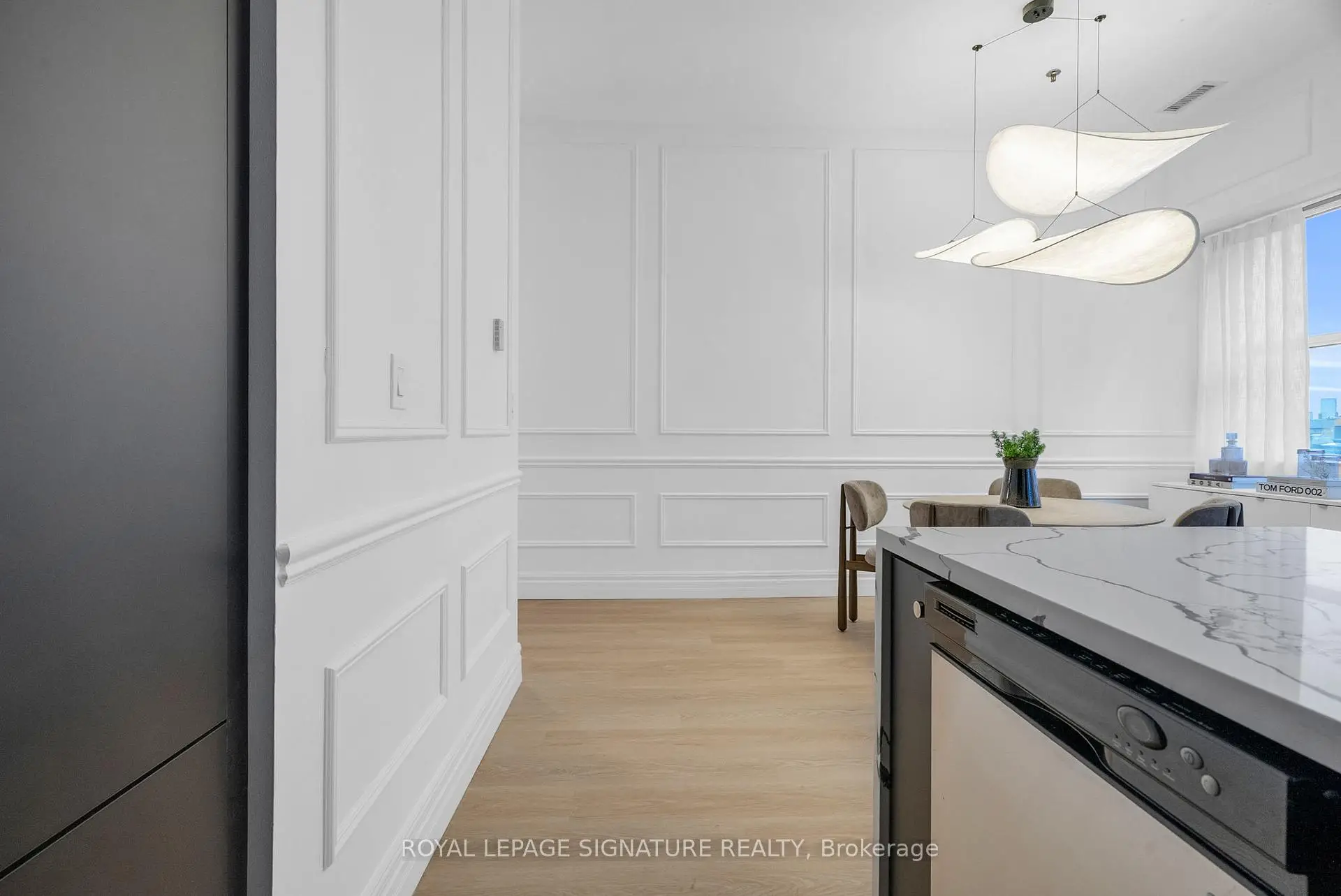 Welcome to the heart of King West. This fully renovated 2-bedroom residence brings boutique loft living to life with its soaring 10 Ft ceilings, oversized windows, and a bright, open-concept layout that feels instantly inviting. The custom chef's kitchen is a true showpiece - featuring brand new appliances including a panelled range hood and built-in fridge, a new stove, and quartz counters carried seamlessly up the backsplash for a refined, contemporary finish. The waterfall island creates a stunning focal point with added seating and prep space, while the clever pocket-door cabinet keeps everyday items tucked out of sight for a clean, minimalist look. Open shelving makes this kitchen both functional makes the space feel even more spacious. Wainscotting and designer lighting continue throughout the home, adding character and a modern, elevated feel. The primary bedroom offers double closets and a 4-piece ensuite, while the second bedroom includes a generous double closet of its own. Large locker conveniently located on the same floor. Enjoy hotel-style amenities including a rooftop terrace with BBQ lounge areas, gym, party room, games room, 24-hour concierge, bike storage, and visitor parking.An unbeatable location - steps to King & Queen West's best dining, cafes, shops, Trinity Bellwoods Park, the waterfront, transit, and quick access to the Gardiner. Walk Score 98 - everything is right here.