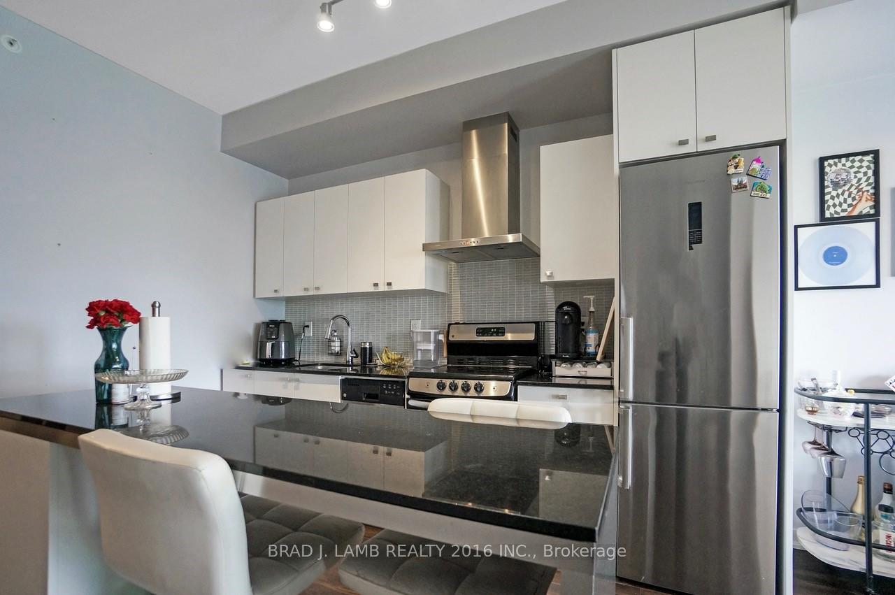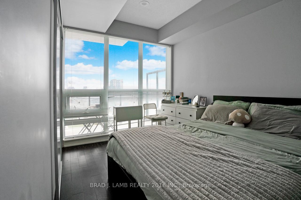Welcome to your new home in the heart of vibrant Liberty Village! This stunning 1-bedroom plus den, 2-bathroom condo offers 700 sq ft of thoughtfully designed living space, perfect for professionals, couples, or anyone seeking modern city living. Large balcony facing the lake. Situated on the 22nd floor, you'll enjoy breathtaking, unobstructed views of the city skyline and Lake Ontario through expansive floor-to-ceiling windows that flood the unit with natural light. The open-concept layout features a sleek kitchen with stainless steel appliances, stone countertops, and ample cabinetry - ideal for cooking and entertaining. The spacious primary bedroom includes a large closet and a private 4-piece ensuite, while the versatile den can be used as a home office, guest room, or workout area. A second full bathroom offers convenience for guests. Live steps from everything - public transit, parks, Metro, the waterfront, Exhibition Place, trendy shops, cafes, pubs, BMO Field and downtown Toronto. This is more than a condo; it's a lifestyle. Don't miss your chance to own in one of Toronto's most dynamic and connected neighbourhoods! Brand new paint throughout! And brand new custom roller blinds!
