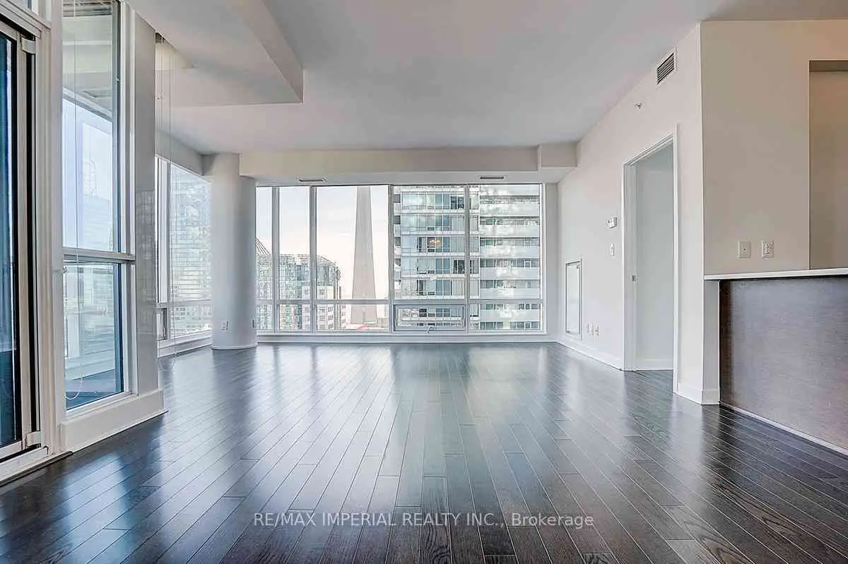 Newly painted with brand-new smooth ceilings, this bright south-east corner 2-bedroom is wrapped in floor-to-ceiling windows, filling the open-concept layout with natural light throughout the day. Enjoy unobstructed CN Tower views, panoramic city vistas, and partial Lake Ontario views from the main living areas. Fresh, clean, and move-in ready, the suite features a functional split-bedroom design and a spacious living/dining area ideal for everyday comfort. Located in the heart of downtown, steps to transit, dining, entertainment, and the Financial District. A beautifully updated corner suite in a prime urban location. Amenities include: 24/7 Concierge, Gym, Yoga room, Meeting Room, Theater Room, Pool, Party room, Sauna and and Plenty of visitor parking. ONE parking space which is located so close to the entrance and TWO lockers.