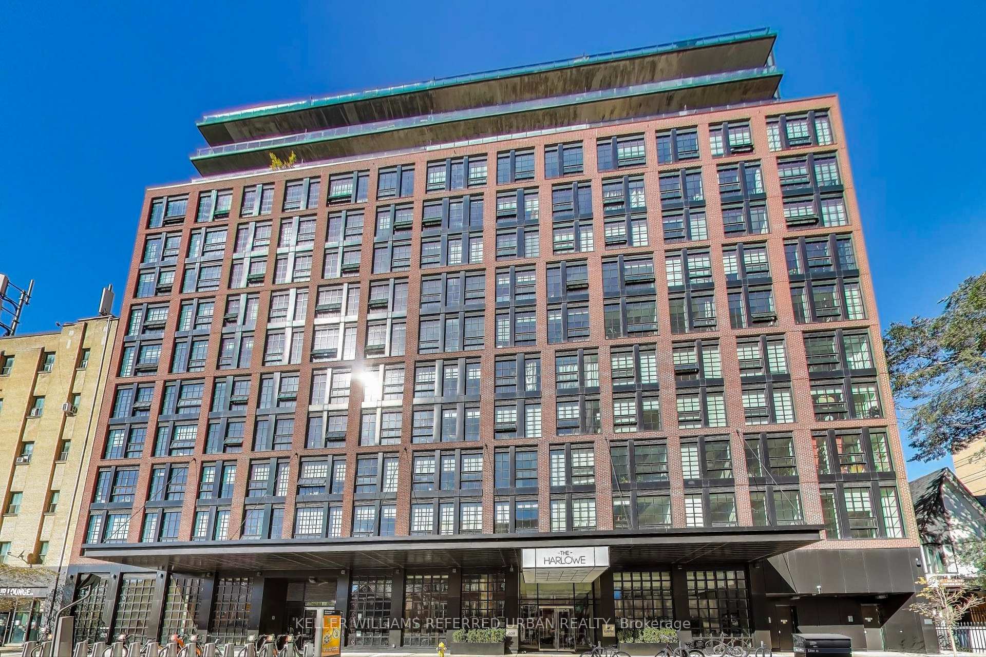 Spacious 2 Bedroom Loft At The Harlowe. High Ceilings, Approx 869 Sq Ft Interior + 112 Sq Ft Balcony. Modern Built-In Appliances. Engineered Hardwood Flooring. Exposed Concrete Feature Walls & Ceiling. Stone Surface Counters. Floor-To-Ceiling Windows. B.B.Q. Gas Line Installed On Balcony. 1 Parking Spot & 1 Locker Unit Included. Amazing Gym and Amenities on Second Floor. Close to King St W Bars & Restaurants, Queen St W Retail, Loblaws, Winners, LCBO, Coffee Shops.