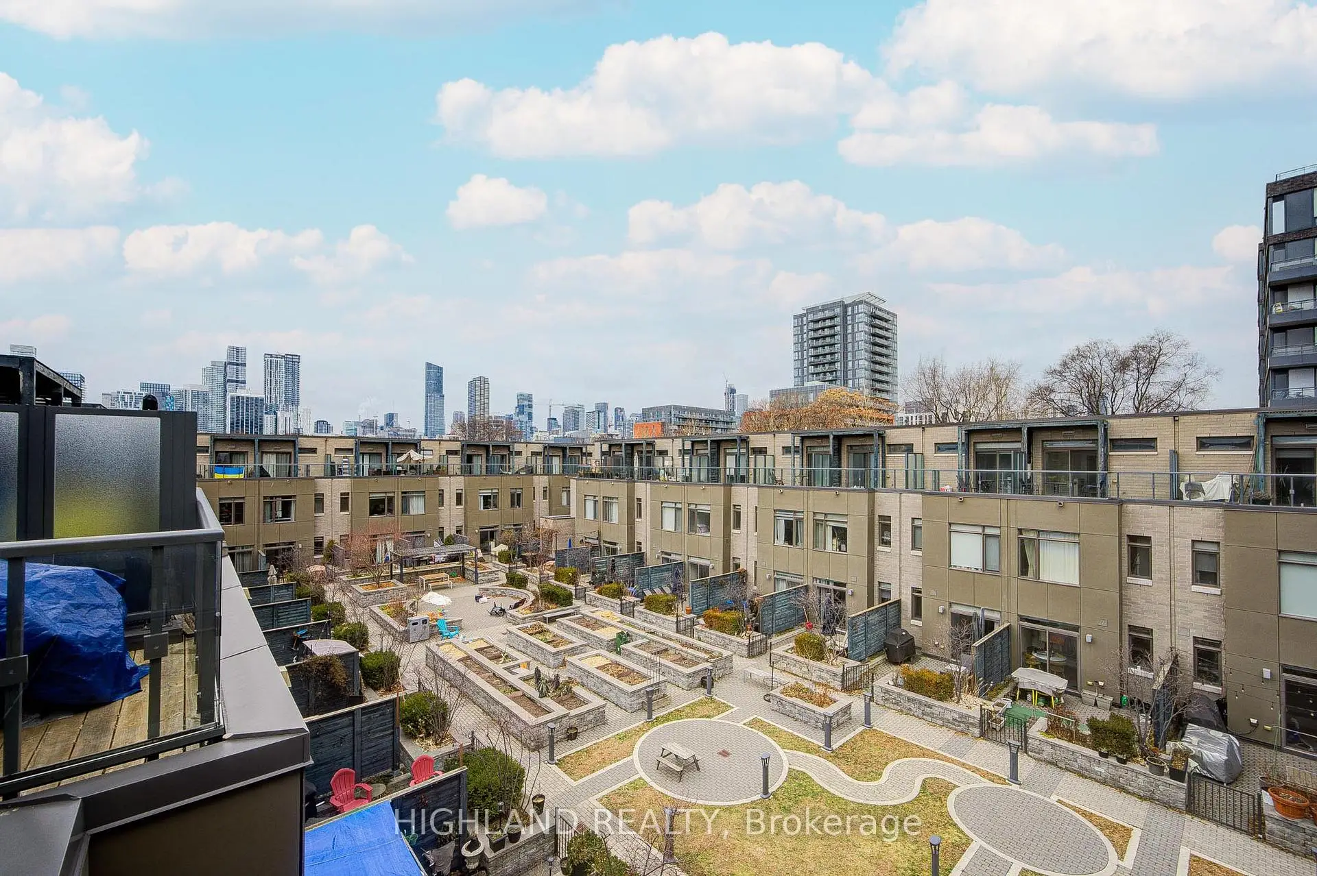 Welcome to this stunning townhome built by Daniel, featuring 3-bedroom, 2.5-bathroom, a media area, 1 parking & 1 locker, located in the prestigious Regent Park community. This home offers approx. 1,285 sq. ft. of bright, modern living space with high ceilings, abundant natural light, and quality laminate flooring throughout. Upgraded open-concept kitchen features custom cabinetry, quartz countertops, backsplash, a large centre island, and the media area could be a breakfast area/home office area with a direct walk-out to the private patio. Second floor offers two spacious bedrooms with large windows and closets, sharing a 4-piece bathroom. Third-floor primary bedroom includes a 4-pc ensuite and walk-out to a south-facing private terrace. Enjoy premium amenities: fitness & yoga studios, media lounge, party room, outdoor terrace, and landscaped courtyard. Minutes to Eaton shopping center, downtown, parks, restaurants, and quick access to the DVP Hwy.