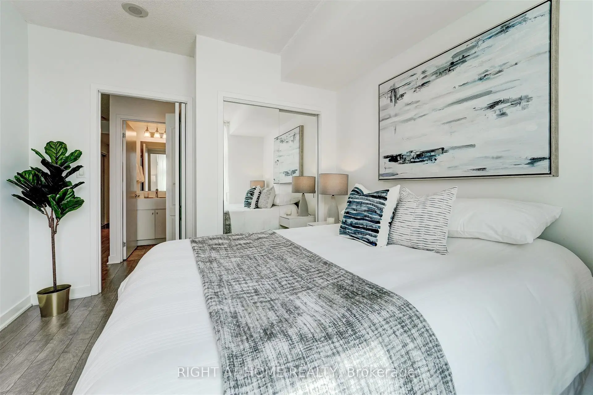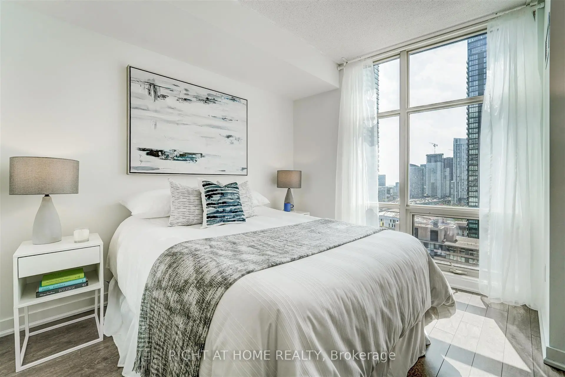 Welcome to Harbour View Estates. This bright and modern 1+Den suite offers a smart, functional layout in one of Toronto's most vibrant waterfront communities. Steps to the Harbourfront, Gardiner Expressway, CN Tower, Scotiabank Arena, Rogers Centre, transit, dining, and shopping. The open-concept living space features floor-to-ceiling windows, filling the unit with natural light. The kitchen is equipped with stainless steel appliances, granite countertops, and a gas stove. Sleek laminate flooring runs throughout, and the den with sliding doors provides versatility as a second bedroom, home office, or nursery. Enjoy city and lake views from the southwest-facing balcony. Parking and locker included, with the parking space featuring an installed two-bike stand. Maintenance fees are all-inclusive, covering heat, hydro, and water. Residents have access to over 30,000 SqFt of amenities at the CityPlace SuperClub, including an indoor pool, gym, basketball court, running track, bowling alley, tennis courts, spa, and 24/7 concierge. Live steps from the water while enjoying world-class amenities and everything downtown Toronto has to offer!
