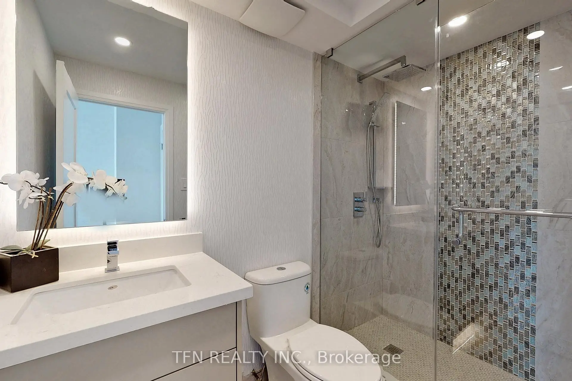 Absolutely spectacular, completely reimagined from top to bottom with premium materials and exceptional craftsmanship. Approximately 1,350 sqft of bright, open-concept living featuring wide-plank laminate floors, flat ceilings, pot lights, porcelain tile, and a designer custom kitchen with quartz waterfall island and new stainless steel appliances. The show-stopping living area offers a built-in modern entertainment wall with fireplace, perfect for family living and entertaining. The primary retreat features a spa-inspired ensuite and walk-in closet. Rare and highly desirable full second bathroom, the only unit of its kind in the building - ideal for families, guests, or multi-generational living. Large ensuite laundry, balcony, custom lighting, and window coverings complete this turnkey home. Renovated luxury complex with gym, sauna, security. Steps to Fairview Mall, Shops at Don Mills, TTC, and quick access to 401/404/DVP. Must See!
