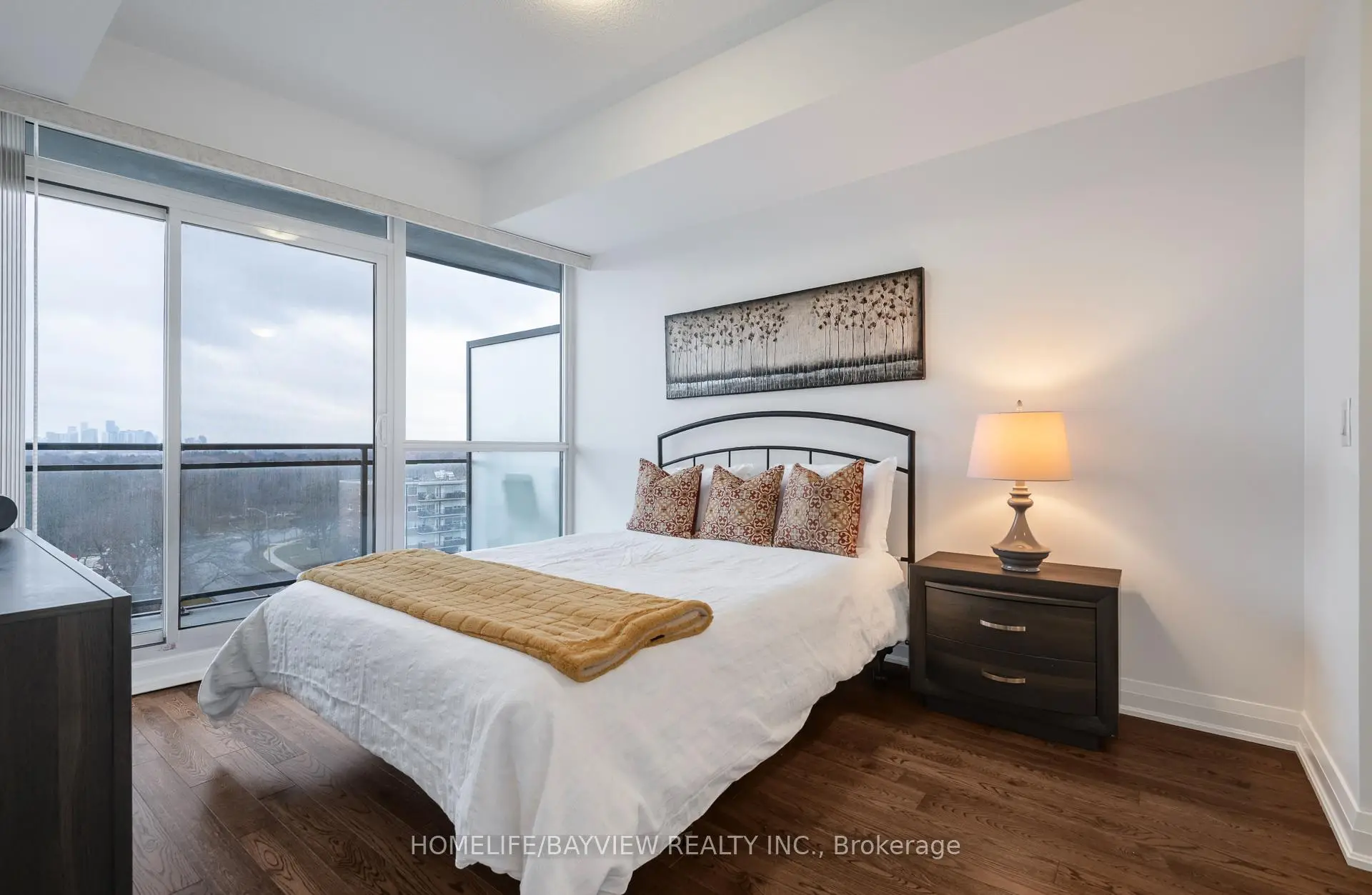 You can have it all! Located in the heart of the vibrant Shops at Don Mills, this spacious condo provides the perfect blend of comfort, convenience, and modern living. Situated in a boutique, low-rise building, this unit boasts an open concept layout with floor-to-ceiling windows, flooding the space with natural light. Highly coveted unobstructed west facing unit with stunning views of sunsets & city skyline! The glass panels on balcony allow for a clear expansive view. Feel at home in this truly spacious 1+den, 2 FULL washrooms, (813 sqft) condo- a truly well designed suite, 9' ceiling, loads of storage space & closets. Den can be closed off and used as a guest room, nursery or office. Step outside to discover the unparalleled convenience of living just moments away from world-class shopping, dining, and entertainment. Stroll on over to a fantastic & diverse range of restaurants, cafes, shops, Cineplex VIP Cinemas, grocery stores: Metro & Mcewen, Eataly, LCBO, banks & more! Take in the special events including art & music. Surrounded by trails & parks: local playground, Don Mills Trail, Edwards Garden, Charles Sauriol Conservation area. With easy access to major transit routes, DVP, 401, Don Mills transit hub- a bus ride away to 3 subway lines (1,2,4) and soon to come Eglinton LRT- this location offers the best of both worlds: urban living in a serene, boutique setting. Building features an exercise room and an inviting party room with a patio, visitor parking. Parking spot with nearby locker. Heat pumps allows for year round control of heat/cool. Turn-key option: most furnishings available for sale.