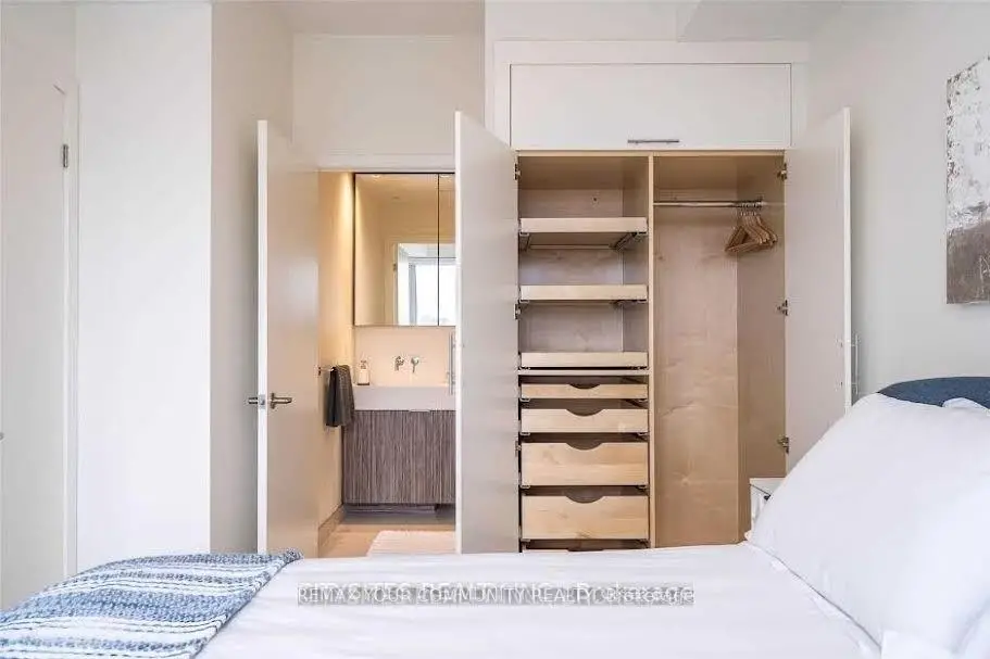 Brand New 2 Bed + 2 Bath Corner Unit W/Breathtaking Panoramic Lake & City View! Lots of Upgrades! New Smart Features Like Custom Automatic Blinds & Lighting, Built In Custom Master Closet. Upgraded Kitchen W/Tile Backplash And Miele Appliance Package! Steps To TTC / Loblaws / St. Lawrence Market / Sugar Beach / George Brown Ocad. Ez Access To Gardiner. Custom Paint Throughout. Floor To Ceiling Windows, Spacious 300 Square Foot Open Terrance. 1 Parking & Locker Adjacent To Elevator Included, Building Amenities Include A Spa Like Fitness Centre, Yoga / Pilates & Theatre.