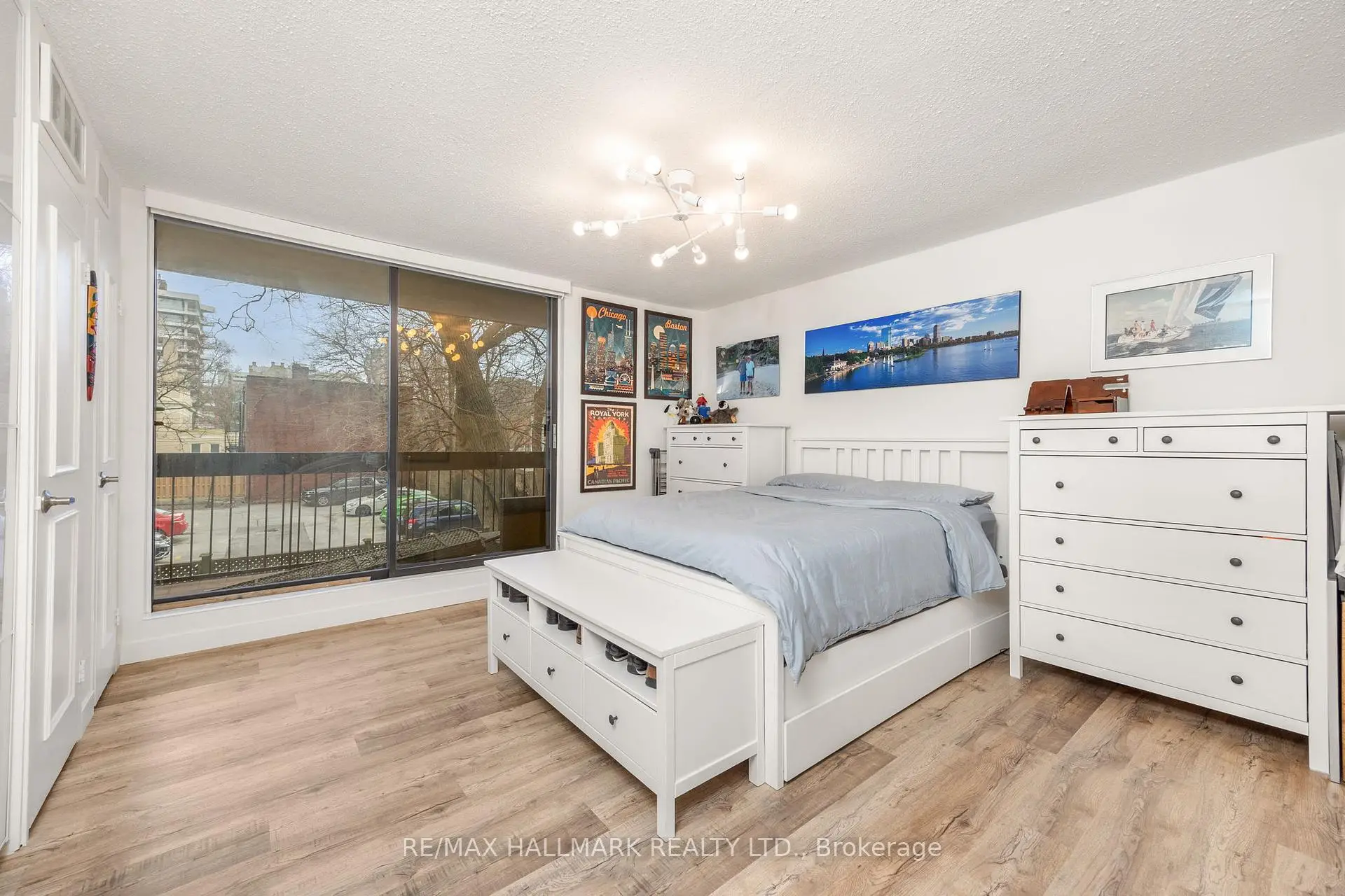Spacious 2-bedroom suite in the heart of the Annex, offering over 1100 square feet of bright, open-concept living. Located in a charming 5-storey heritage boutique building, this suite features a south-facing balcony that fills the living, dining, kitchen, and office areas with natural light. The custom kitchen includes ample storage and a generous breakfast bar that comfortably seats six. The primary bedroom offers wall-to-wall closets, a beautiful 4-piece ensuite, and direct access to the 40-foot balcony, which is also accessible from the living room. A second full bathroom with a sleek glass shower enclosure completes the interior. The building includes a rooftop terrace, gym, and sauna. Condo fees are all inclusive, covering electricity, water, heating, cooling, and cable.