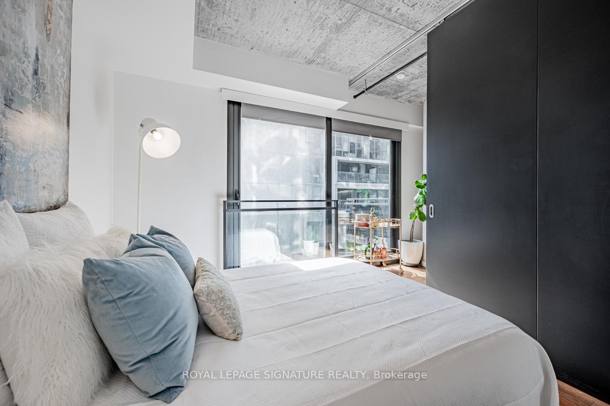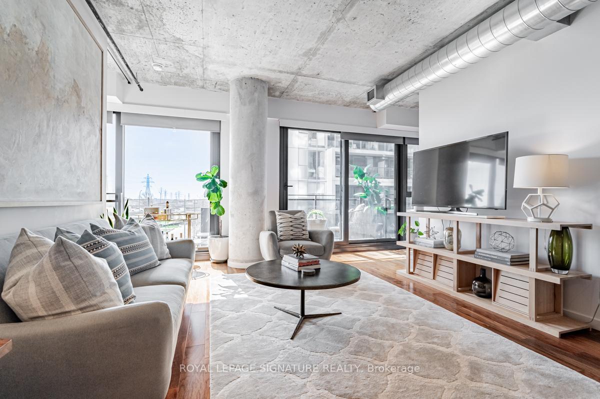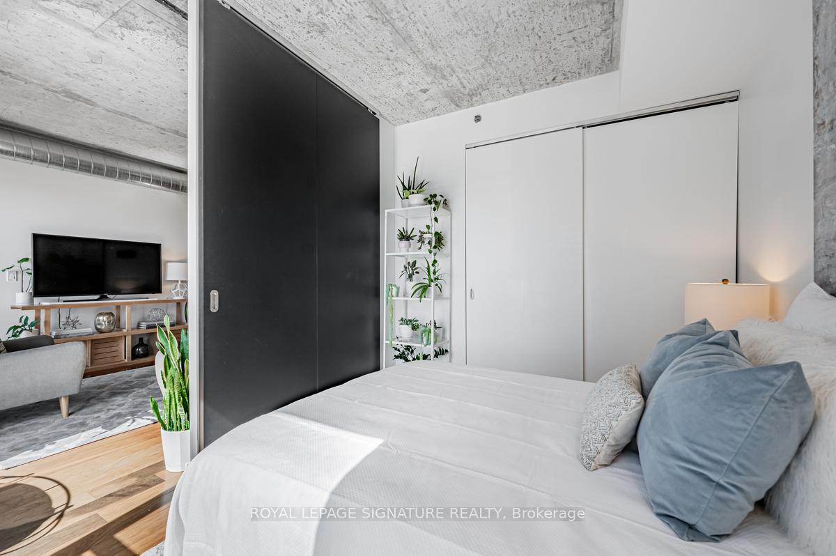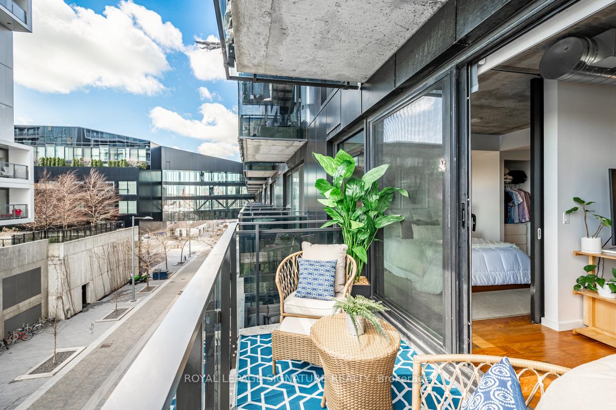Welcome to River City Condos where sustainable living meets modern urban style! Step inside one of Toronto's first Gold LEED-certified residential communities, perfectly located in the city's vibrant downtown east. This bright and spacious suite offers true loft vibes, featuring exposed concrete ceilings and ducts, floor-to-ceiling windows, and hardwood floors throughout. Enjoy the ideal split-bedroom layout for added privacy and versatility. The primary suite features walk-through double closets and a fully tiled ensuite bath, while the second bedroom includes a double closet and a charming Juliette balcony. The modern kitchen has been thoughtfully updated with quartz countertops, a ceramic tile backsplash, and a stainless steel sink and faucet. Step out to your private balcony and take in the unobstructed southeast views - ideal for sunrise coffees or afternoon cocktails with friends! Residents of River City enjoy fantastic amenities, including a gym, party room, guest suites, and visitor parking - along with shared access to an outdoor pool and BBQ area. Nestled in the heart of the West Don Lands and Corktown neighbourhoods, you're just steps to Underpass Park and Corktown Commons. With a Walk Score of 98 and Bike Score of 97, you're perfectly positioned for city living - surrounded by great cafes, dining, shops, and recreation, plus direct access to the Lower Don Trail and other city bike paths. Bonus: this unit comes with two bike racks and two storage lockers - so you'll never run out of space! Only minutes to some of Toronto's coolest neighbourhoods - Distillery District, St. Lawrence Market, Leslieville, and East Chinatown, with quick access to transit and the DVP.