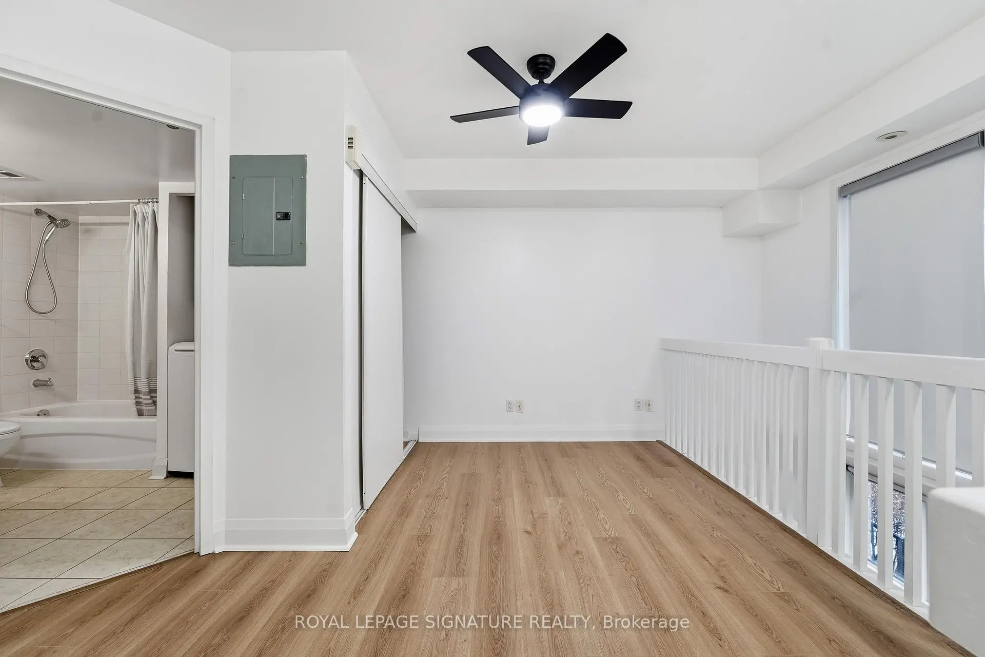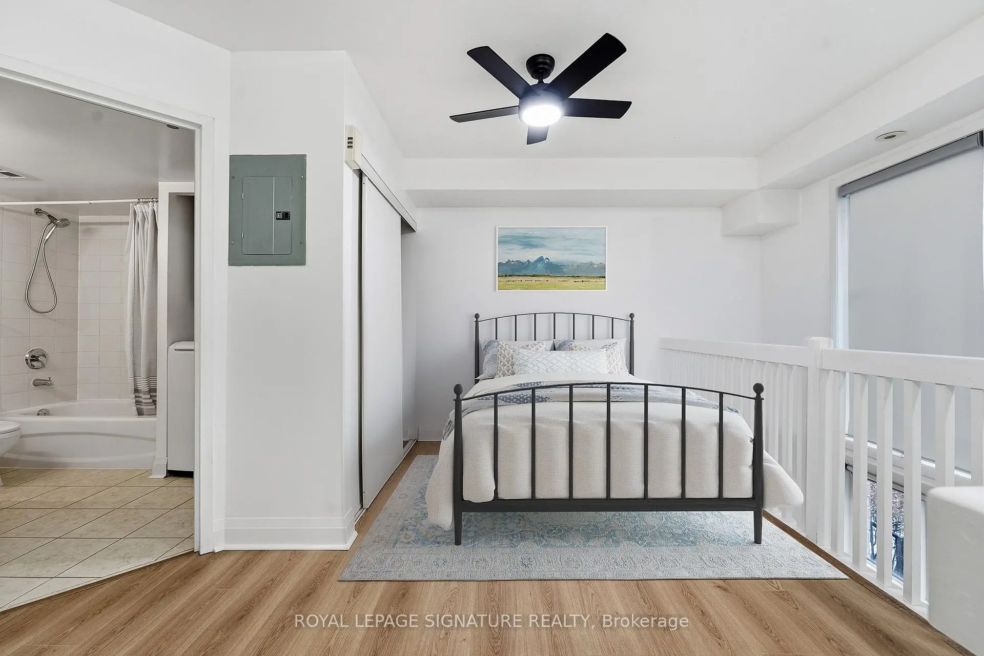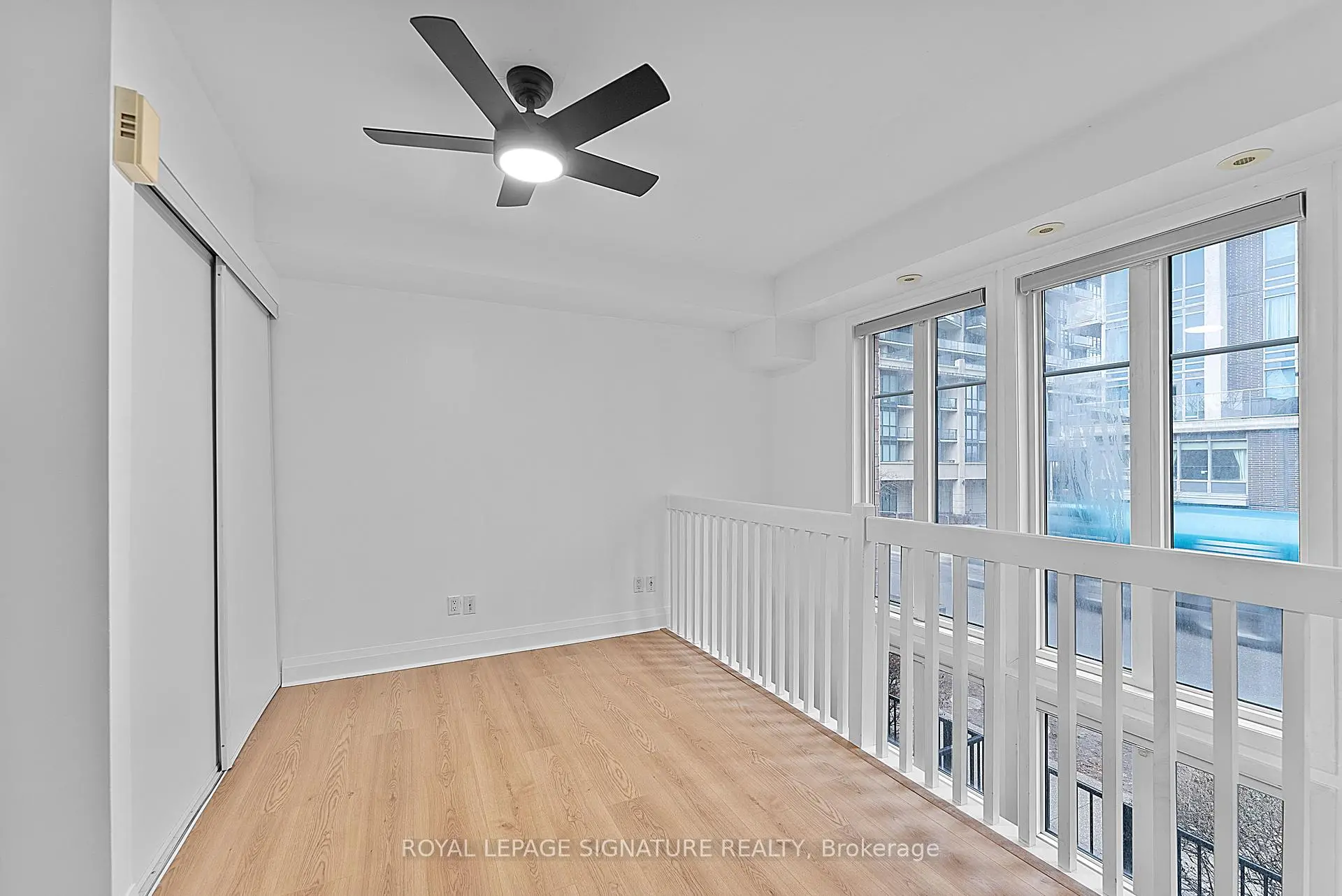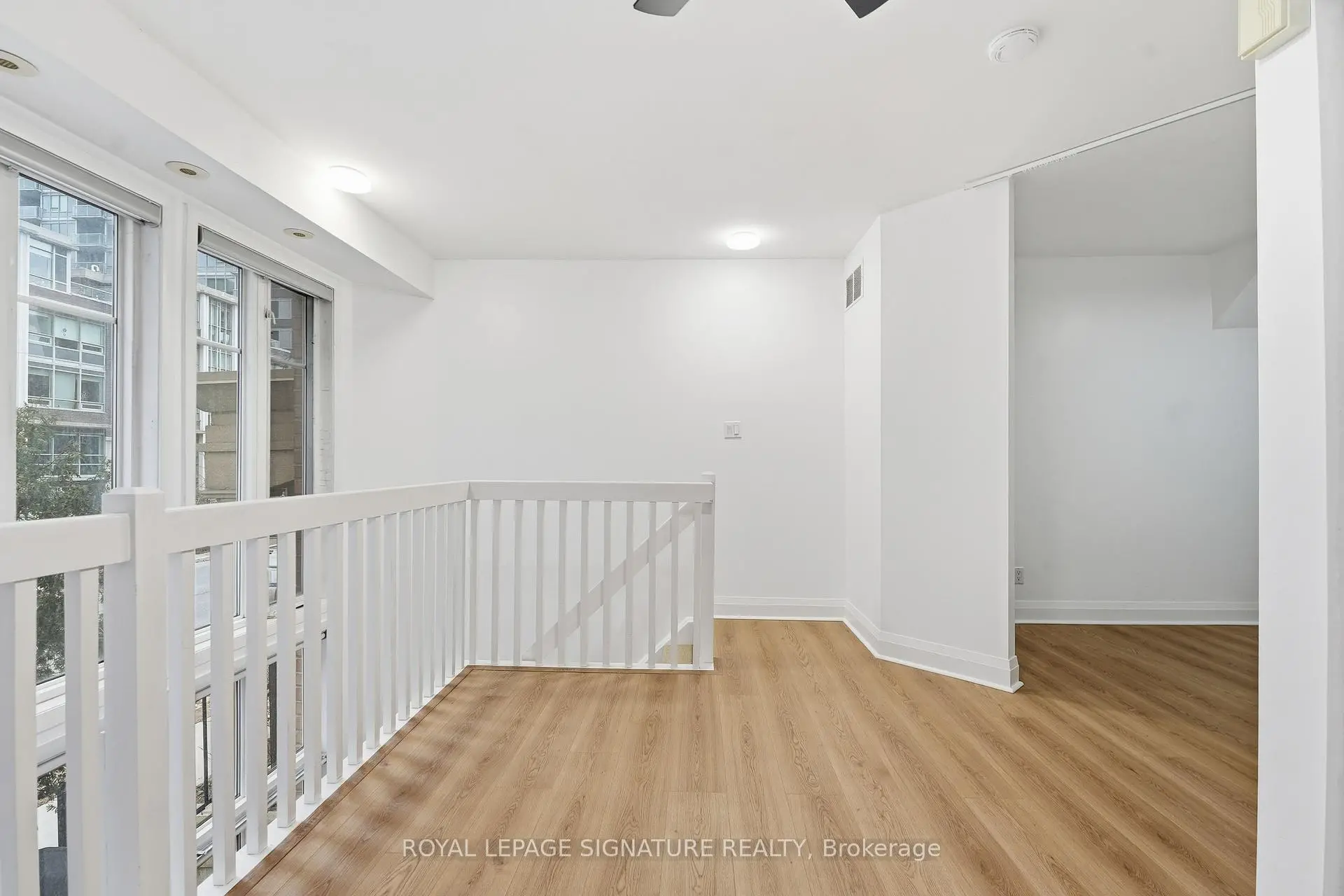 Bright south-facing two-storey loft-style townhouse in the heart of Liberty Village, offering 810 square feet of well-designed interior living space. This main level above grade townhome features 1 bedroom plus den and two bathrooms, including a main-level powder room, brand new flooring, paint and lighting. The open-concept main level is filled with natural light and offers a functional kitchen with full-size stainless steel appliances, generous counter space and an area for a dining table. The living space walks out to a large private terrace, ideal for everyday use and entertaining. The upper level features a spacious primary bedroom with an ensuite bathroom, along with a versatile den well suited for a home office or flexible living space. Parking and locker included, all the mechanical items are owned. Steps to Altea gym, the new Farmhouse market, plus all the shops, restaurants, transit, and everyday amenities you expect downtown.