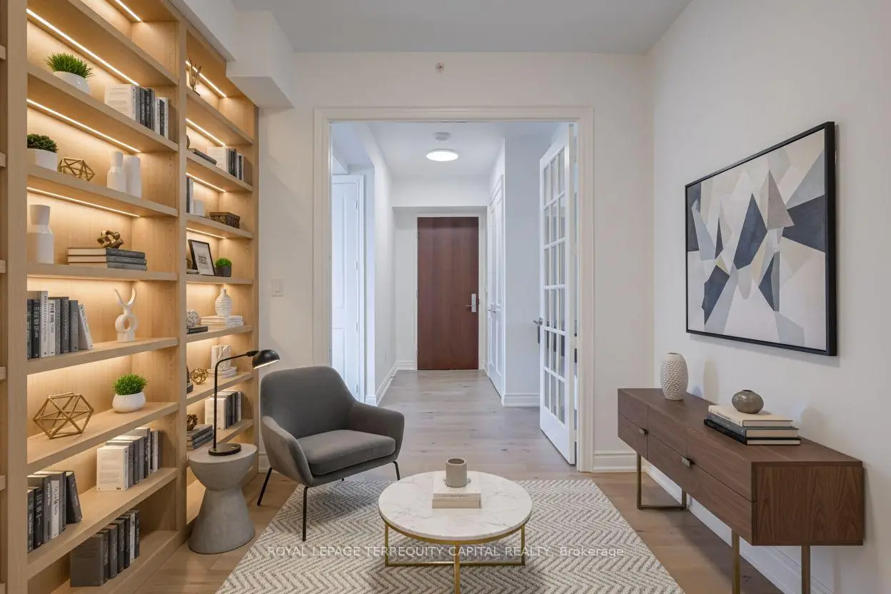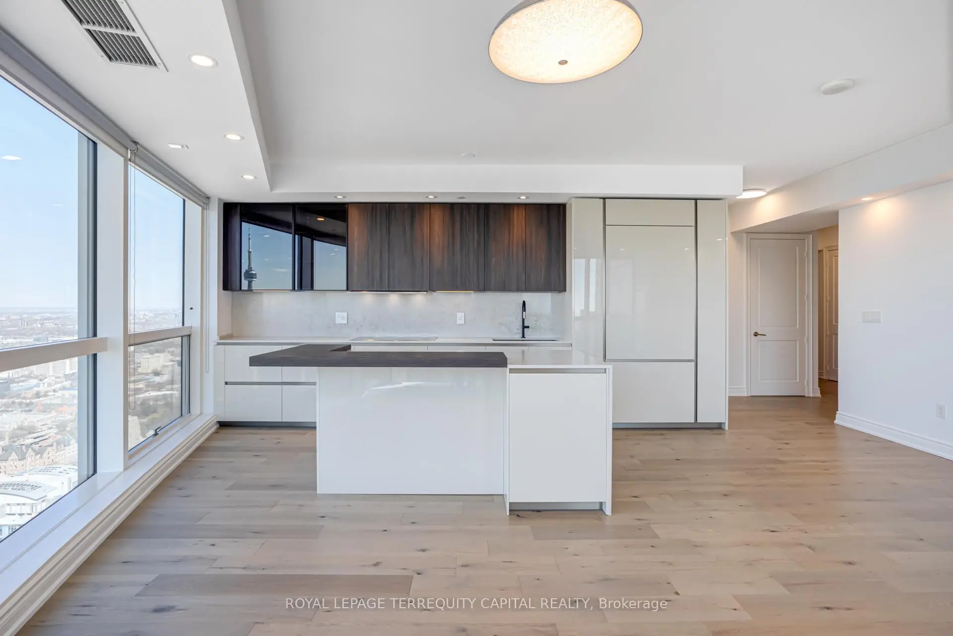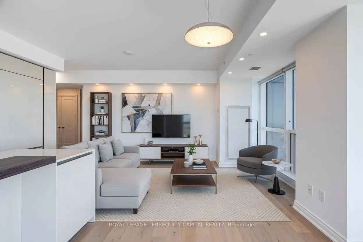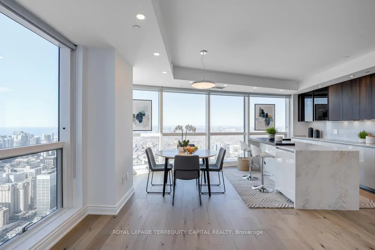 Welcome to Aura at College Park- a landmark address in the vibrant heart of Downtown Toronto. This stunning southwest corner suite offers 1,252 sq. ft. of luxurious living space, FULLY RENOVATED TOP TO BOTTOM. featuring 2 bedrooms + den, 9-ft ceilings, and floor-to-ceiling windows framing unobstructed CN Tower and Lake Ontario views. Custom European finishes, this home exudes sophistication and quality craftsmanship. The custom Italian kitchen and built-in closets (valued at $140K+) are complemented by top-of-the-line appliances- Miele (Germany), Fhiaba (Italy), and AEG (Italy)- along with a built-in wine cellar, engineered hardwood floors, pot lights, and smooth ceilings throughout. The open-concept layout features a spacious kitchen and oversized island ideal for entertaining. The versatile den can serve as a third bedroom or home office, offering flexibility for any lifestyle. Enjoy unparalleled convenience with direct indoor access to IKEA, Marshalls, and the TTC subway. Steps to the Eaton Centre, Financial District, U of T, TMU, and Toronto's top hospitals and research centres, Aura is perfect for urban professionals. Residents enjoy access to the Higher Ground Health Club, a grand lobby, and world-class amenities in this prestigious tower. With a Walk Score of 99 and Transit Score of 100, everything you need is right at your doorstep. A must-see suite in one of Toronto's most iconic buildings!