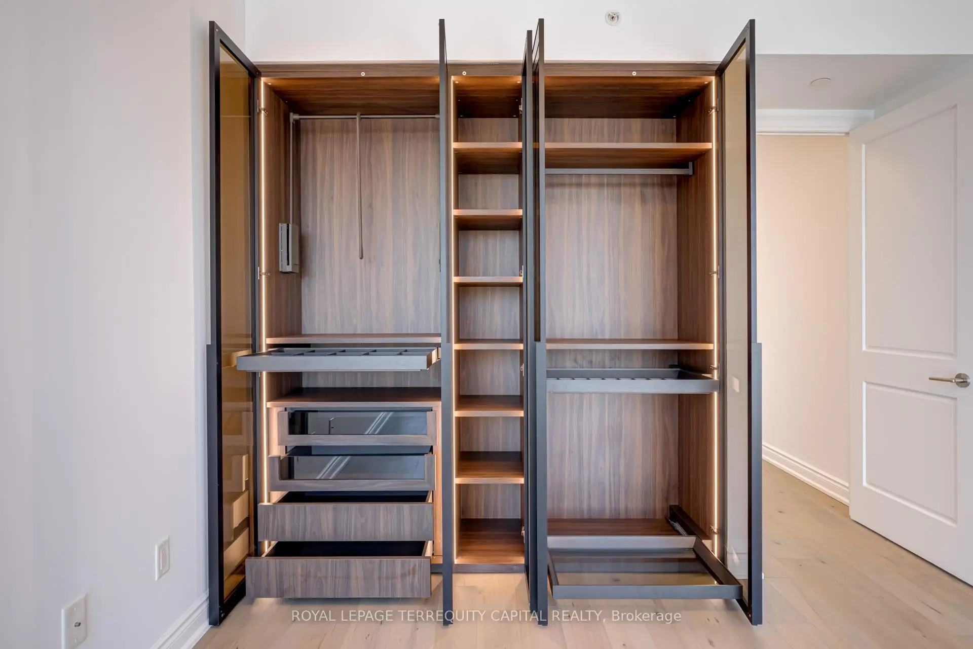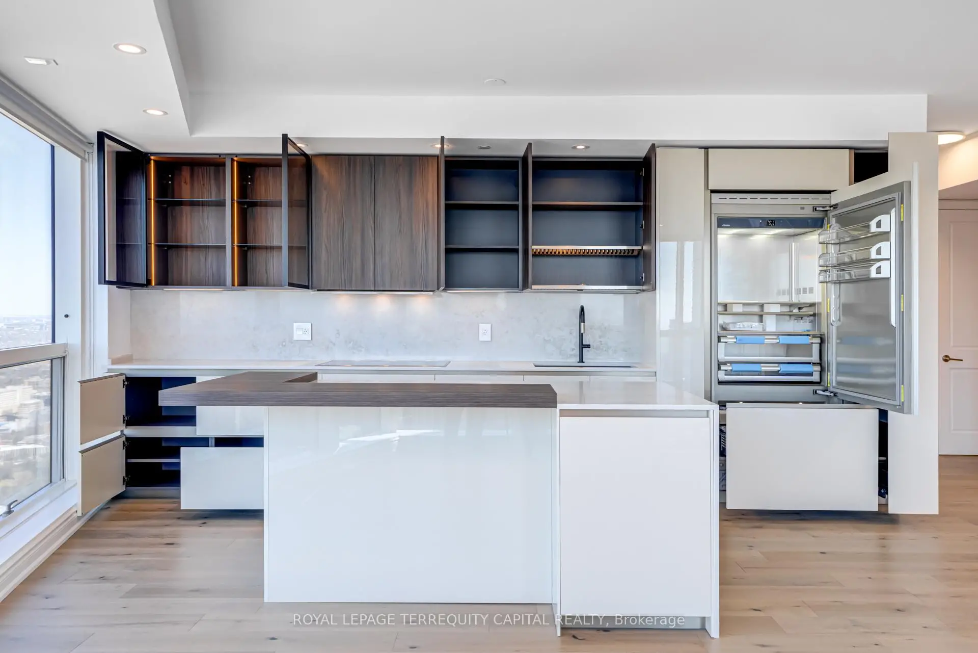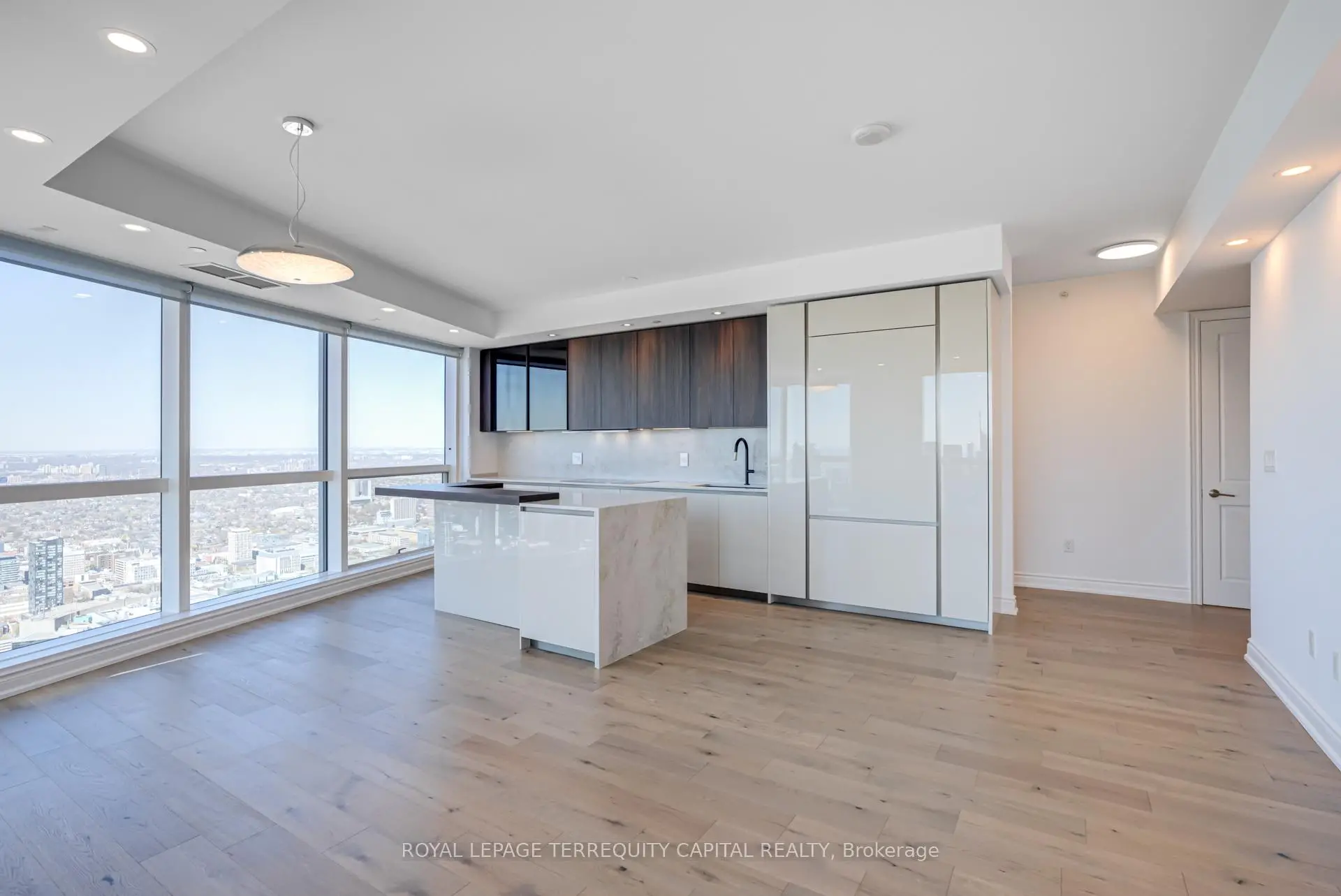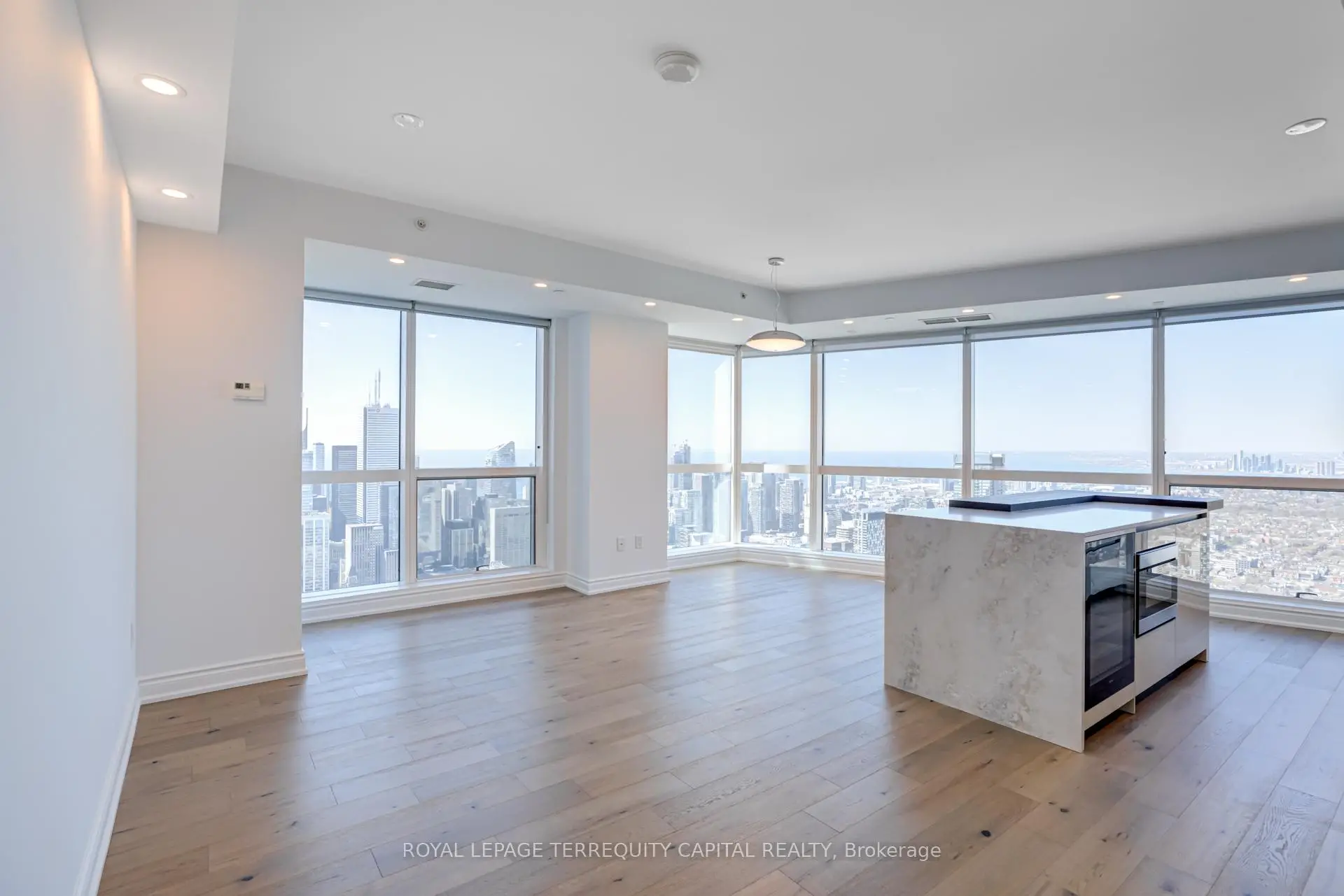 Welcome to Aura at College Park- a landmark address in the vibrant heart of Downtown Toronto. This stunning southwest corner suite offers 1,252 sq. ft. of luxurious living space, FULLY RENOVATED TOP TO BOTTOM. featuring 2 bedrooms + den, 9-ft ceilings, and floor-to-ceiling windows framing unobstructed CN Tower and Lake Ontario views. Custom European finishes, this home exudes sophistication and quality craftsmanship. The custom Italian kitchen and built-in closets (valued at $140K+) are complemented by top-of-the-line appliances- Miele (Germany), Fhiaba (Italy), and AEG (Italy)- along with a built-in wine cellar, engineered hardwood floors, pot lights, and smooth ceilings throughout. The open-concept layout features a spacious kitchen and oversized island ideal for entertaining. The versatile den can serve as a third bedroom or home office, offering flexibility for any lifestyle. Enjoy unparalleled convenience with direct indoor access to IKEA, Marshalls, and the TTC subway. Steps to the Eaton Centre, Financial District, U of T, TMU, and Toronto's top hospitals and research centres, Aura is perfect for urban professionals. Residents enjoy access to the Higher Ground Health Club, a grand lobby, and world-class amenities in this prestigious tower. With a Walk Score of 99 and Transit Score of 100, everything you need is right at your doorstep. A must-see suite in one of Toronto's most iconic buildings!