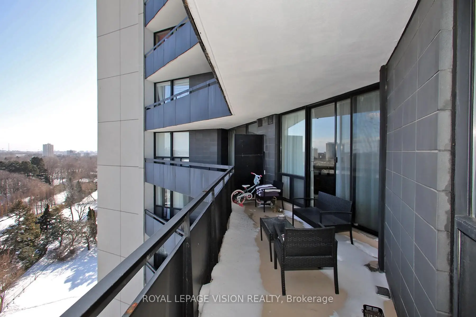 Welcome to this fully renovated, bright and spacious 3-bedroom, 2-bathroom condo in the heart of North York, offering approximately 1,352 sq ft of stylish open-concept living with a walkout to a large balcony. The living area includes an entertainment wall, fireplace, perfect for relaxing or entertaining. The primary bedroom offers an updated ensuite bathroom and walk-in closet, ideal for families. Includes large ensuite laundry, custom lighting, and window coverings. Located in a well-managed building with **ALL UTILITIES INCLUDED** in maintenance fees, enjoy 24-hr concierge, gym, sauna, security, and landscaped grounds with BBQ area. TTC at your door, steps to Fairview Mall, schools, parks, and minutes to the highway. Move-in ready.