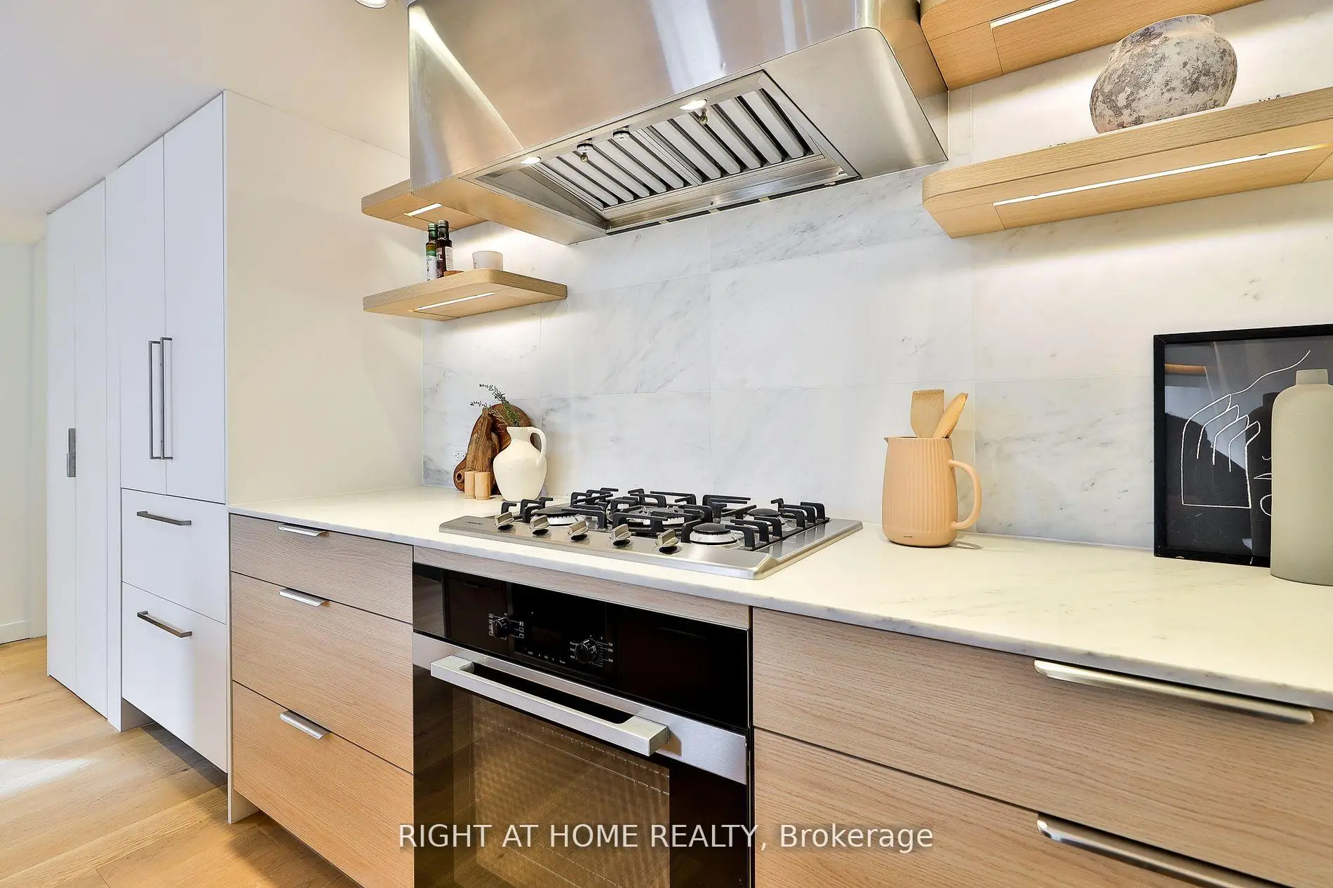 The final 1 bedroom Penthouse at Brunswick Lofts! A bright and modern corner Penthouse with private terrace in the trees in a rare boutique building in the heart of the Annex. This sun-filled and stylish suite offers a generous floorplan of almost 1,100 square feet, in a just-completed heritage conversion of only seven suites. Spanning two levels, this west Penthouse features a private entry with foyer and offers exceptional volume, tremendous attention to modern details and a one-of-a-kind roofline that creates a unique double-height living room flooded with natural light. A custom kitchen with white oak cabinetry, natural stone surfaces, integrated Miele appliances, gas cooktop, oversized island with wine fridge perfect for avid chefs and great entertaining. Upstairs, the quiet primary suite features tailored built-ins and a bright ensuite with soaker tub and shower. Main floor powder room, great storage and the warmth and elegance of loft living. Parking by street permit, and steps to Bloor, Harbord Village, U of T and transit. Heritage architecture and contemporary craftsmanship in an outstanding location. HST included, and full Tarion warranty.