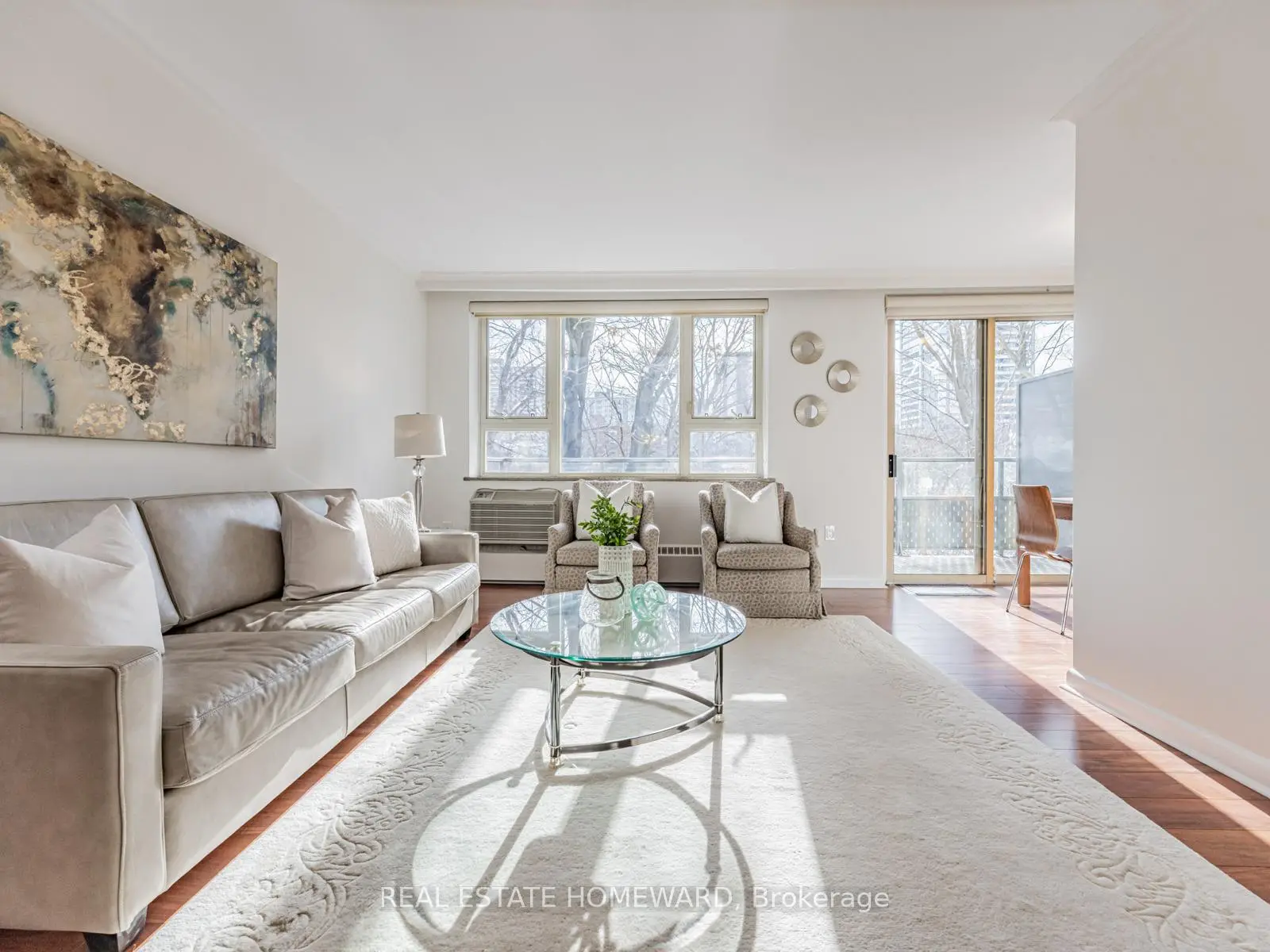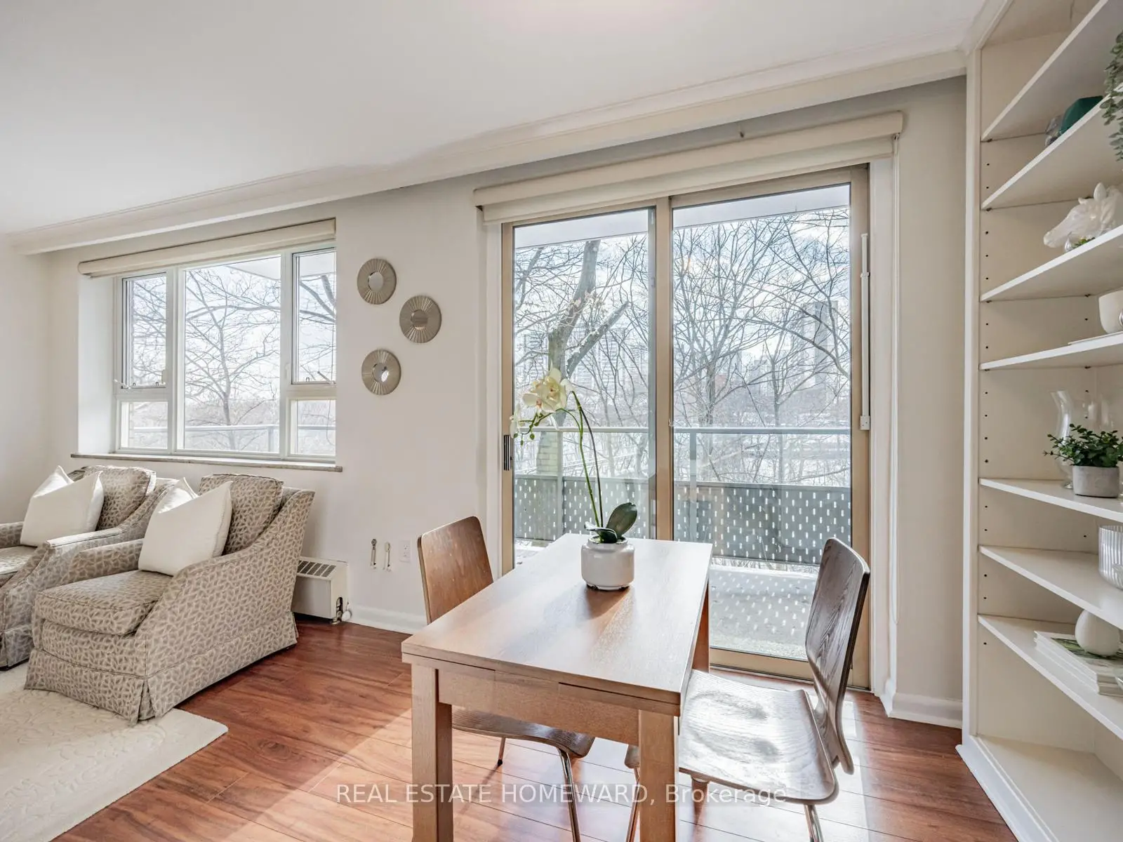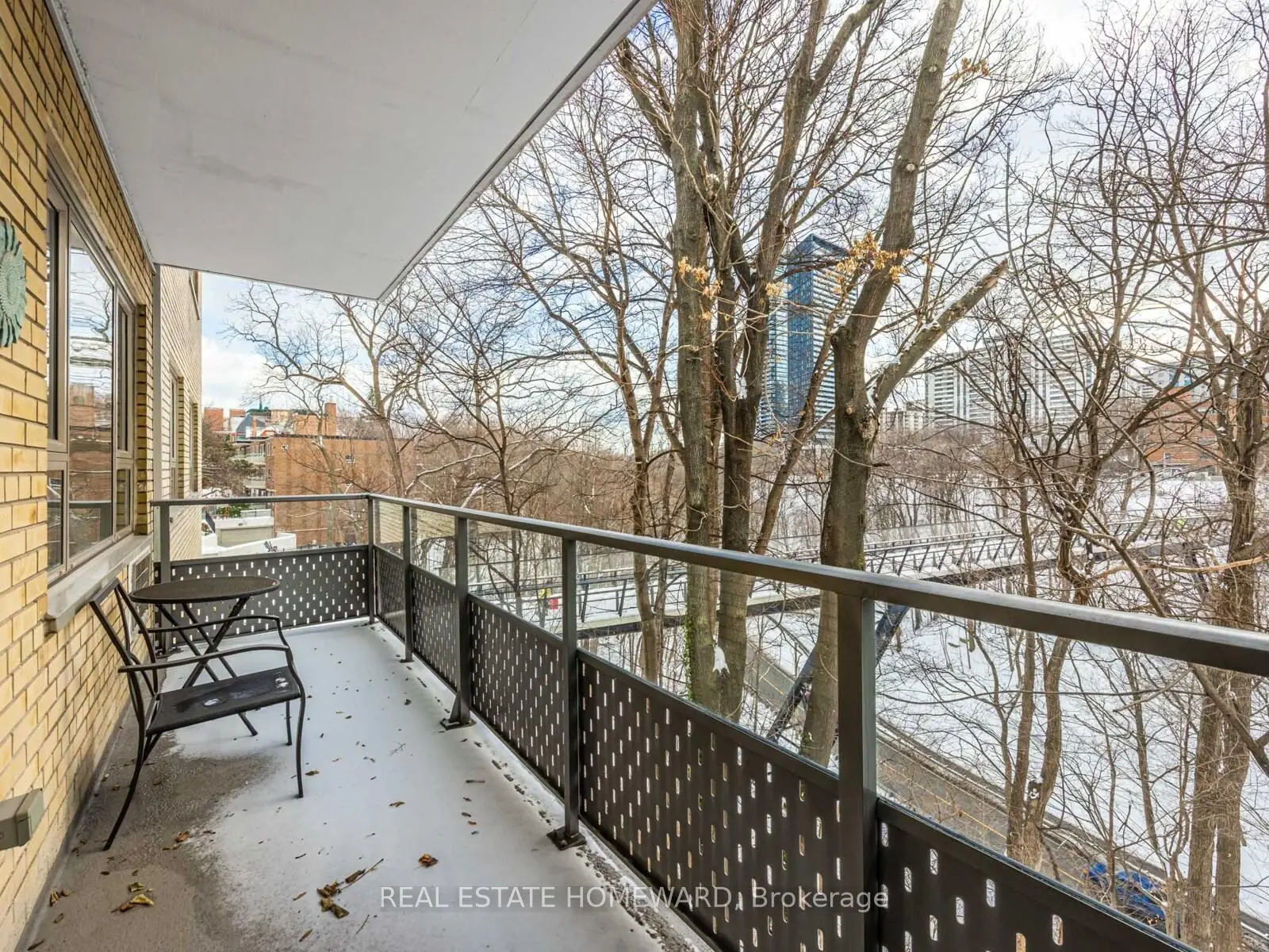 Peace and tranquility await in this private, elegant second storey suite at 40 Glen Road. Nestled in a perfect South Rosedale location...quiet, calm, perched right near the edge of the Rosedale Valley Ravine...yet just a short walk over the newly built Morley Callaghan Footbridge and you are immediately connected to the vibrancy of the city. 40 Glen Road is a mid-century co-op building that has a caring, friendly ownership group and management that clearly has pride in the property that extends to every facet of it. Unit 210, with sweeping views of the ravine and walking bridge is bathed in glorious natural light all along its south side, where the balcony is located conveniently off the breakfast nook. The interior has large well laid out rooms, offering sensibility, graceful flow, and a breath of fresh air when compared to most recently constructed condos. The primary bedroom has an ensuite bathroom, as well as his and hers closets. The second bathroom is conveniently located just off the big beautiful den (which could be converted back to a third bedroom), and close to the second bedroom. The main entertaining space is an open concept living/dining room, with the separate kitchen having ample storage and counter space for all of your culinary adventures. This unit is a gem. Once you step inside, it simply feels like home.
