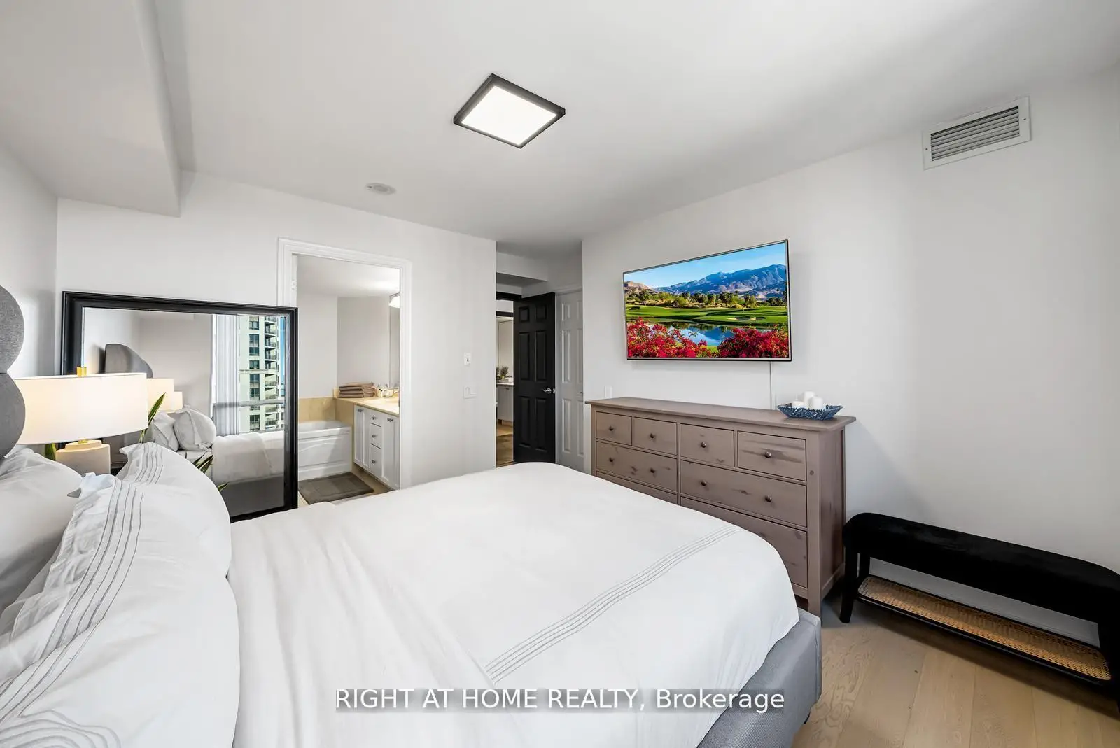 Welcome To Skymark Tridel Residences! This Spacious 1,100 Sq.Ft 2-Bedroom, 2-Bath Corner Suite Offers Unobstructed South-Facing Views Of Downtown Toronto. Enjoy Sun-Drenched Open-Concept Living And Dining Areas, An Upgraded Kitchen With Breakfast Nook, And A Corner Balcony Perfect For City Sunsets. The Primary Bedroom Features A 5-Piece En-suite And Large Organized Closet, While The Second Bedroom Is Bright And Spacious. Recent Updates Include Smooth Ceilings, New Flooring, Fresh Paint, And Modern Lighting. Residents Enjoy Resort-Style Amenities Including A Fitness Centre, Pool, Sauna, Bowling Alley, Golf Simulator, Home Theatre, Party Rooms, Terrace BBQs, 24-Hour Concierge, And More. Prime North York Location With Easy Access To Hwy 401, Subway, Shopping, Dining, And All Conveniences. A Perfect Home Or Investment-Book Your Private Showing Today!