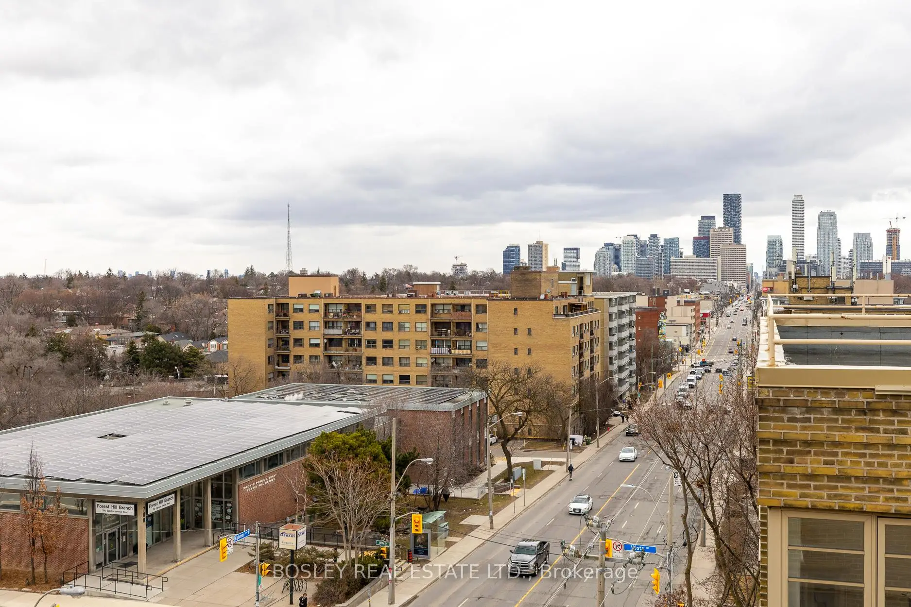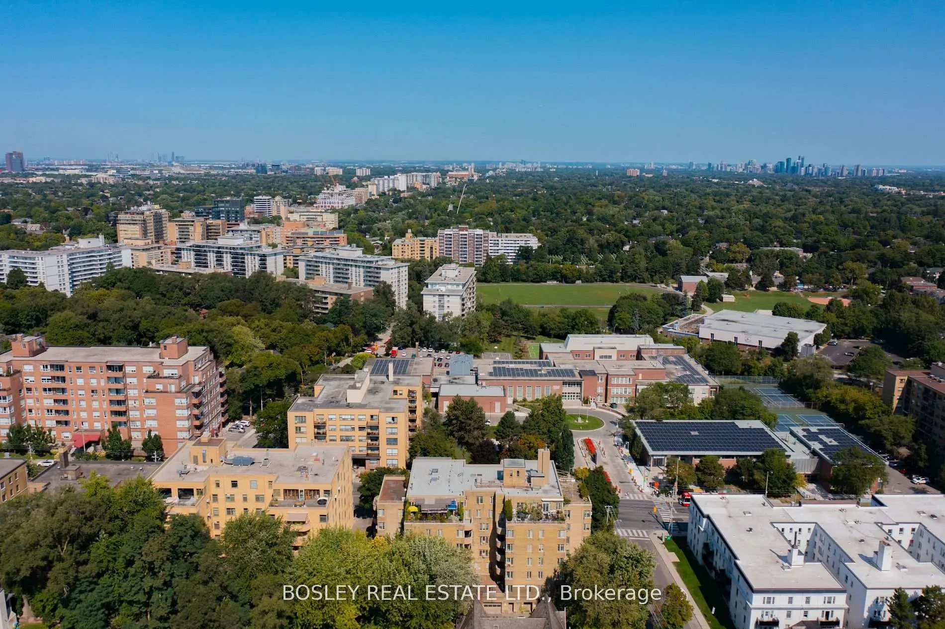 WELCOME TO THE ROYCROFT (circa 1939) a rare Art Deco gem designed by prominent architect John Edward Hoare, The Roycroft is a New York-style co-ownership building located at coveted Eglinton & Old Forest Hill Rd. From the moment you step into the lobby-and operate the charming period elevator-you know this is no ordinary residence. This treasured Art Deco Penthouse is one of only four PH suites and offers nearly 1,200 sq ft of interior living space plus an extraordinary 653 sq ft private terrace. As a corner suite, it boasts oversized windows, abundant natural light, and breathtaking views over the tree canopy of Forest Hill, nearby parks, and the city skyline. The expansive open-concept living and dining area flows seamlessly to the terrace, perfect for entertaining or quiet sunset moments. The separate kitchen is tucked to one side and filled with light from a picturesque skylight (see rendered photos for potential open-concept redesign). The oversized primary bedroom features a large window with serene elevated views. The second bedroom is generously sized with a wall-to-wall closet and has been thoughtfully used as a dual-purpose home office/bedroom with many built-in bookshelves. Unbeatable location: a short walk to the shops, services, and restaurants of The Eglinton Way, a 5-minute walk to the upcoming Chaplin subway station, plus a bus right at the front door. Monthly fees include all utilities, cable/internet, and property taxes. Parking and locker included. Financing is more readily available for co-ownerships than co-ops (see attached reference material). These large Penthouse suites in The Roycroft rarely come to market. Renovate to enhance while preserving its Art Deco charm, or create a fully custom vision.