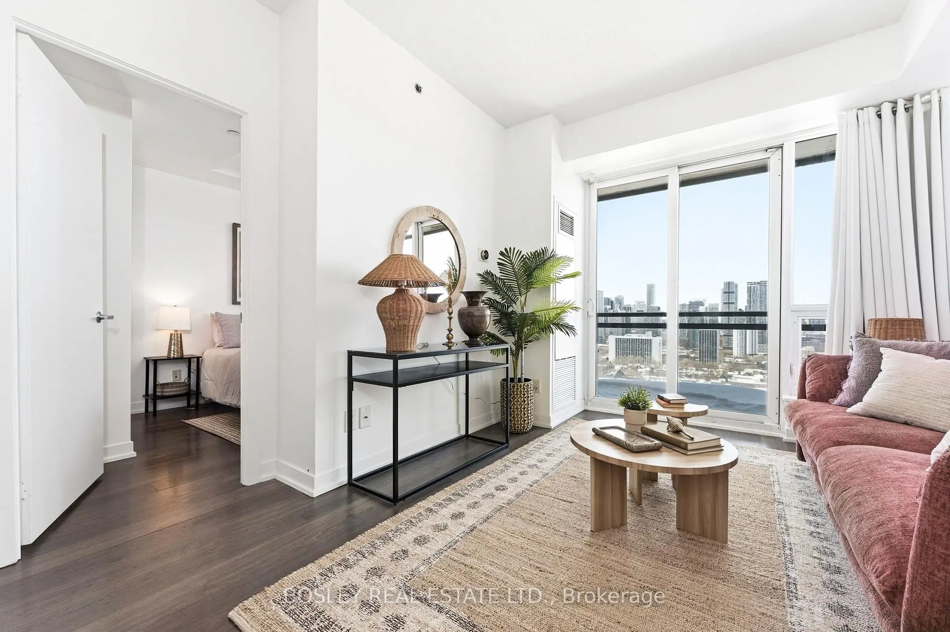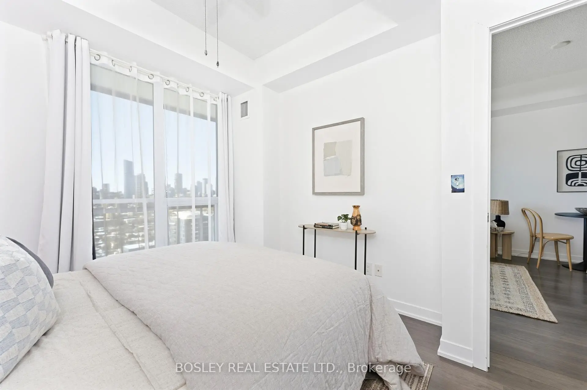 A view of city that will rival few others! This bright and charming unit is not just a great layout! It also has one of the best unobstructed views of Toronto off a charming balcony ready for you to take it all in. This unit has a real +1, a separate den or nursery where you can have a private office if you work from home or a nursery for your newborn or a private zen den for you to relax. A full chefs kitchen with plenty of storage, ample counter space and a breakfast bar for your kitchen helpers and visitors. Real sized appliances! No mini appliances. Quartz counters and undermount sink. No sliding glass doors. Two washrooms including an ensuite off the principle bedroom. Views can be admired from your terrace, your bedroom or your living room. Plus newly revamped lobby in 2025. Perfected Italian cuisine on the main floor at Cafe Zuzu. You don't even need a coat! Easy access to DVP and Gardiner plus Dundas Streetcar to subway. This is city living, well done!