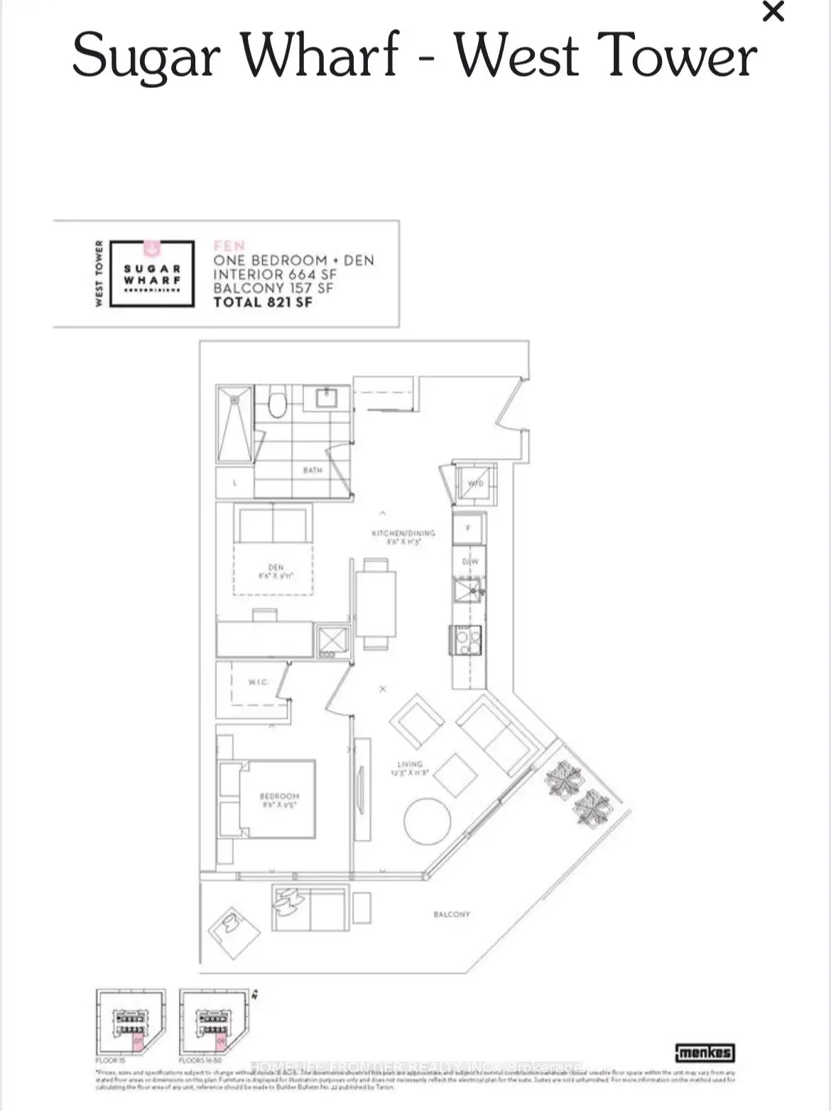 Experience the epitome of waterfront living at Menkes' prestigious Sugar Wharf West Tower. This meticulously designed 1 Bedroom + Den suite offers approximately 664 sq. ft. of sophisticated interior space, seamlessly extending to an impressive 157 sq. ft. balcony that captures breathtaking, unobstructed views of Lake Ontario. The unit features soaring 9-foot smooth-finish ceilings, a modern chef-inspired kitchen with integrated appliances, quartz countertops, and luxury laminate flooring throughout. Residents enjoy world-class amenities, including a 25,000 sq. ft. fitness centre, indoor lap pool & 24-hour concierge. Perfectly positioned steps from Sugar Beach, the LCBO flagship, and the Financial District, this suite offers a 100% walk and transit score for a truly effortless urban lifestyle.