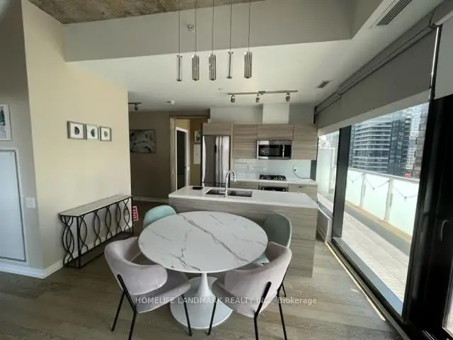 King West Location! Contemporary Loft Inspired Finishes. A Bright, Spacious 2 Full Bedrooms, 2 Full Bathrooms, South-West Corner-Suite. Extra High Concrete Ceilings, Modern Interior W/hardwood Floors Throughout, 842 sf Of Interior Living Space, Huge 200 sf Balcony W/Gas Bbq Connection. 60 Ft Of Floor To Ceiling Windows, Concrete Gas Range On Caesarstone Countertop, Ss Appliances, En-Suite Laundry! 360' View Rooftop Infinity Pool, Gym, Party Room, Bike Storage & 24Hr Security. Locker & Parking Included. Steps To Countless Restaurants, Cafes, Bars, Shops, & Public Transit.Extras:Ss fridge, ss gas cook top, ss oven, ss microwave, w/d, elf's. Closet organizers throughout.