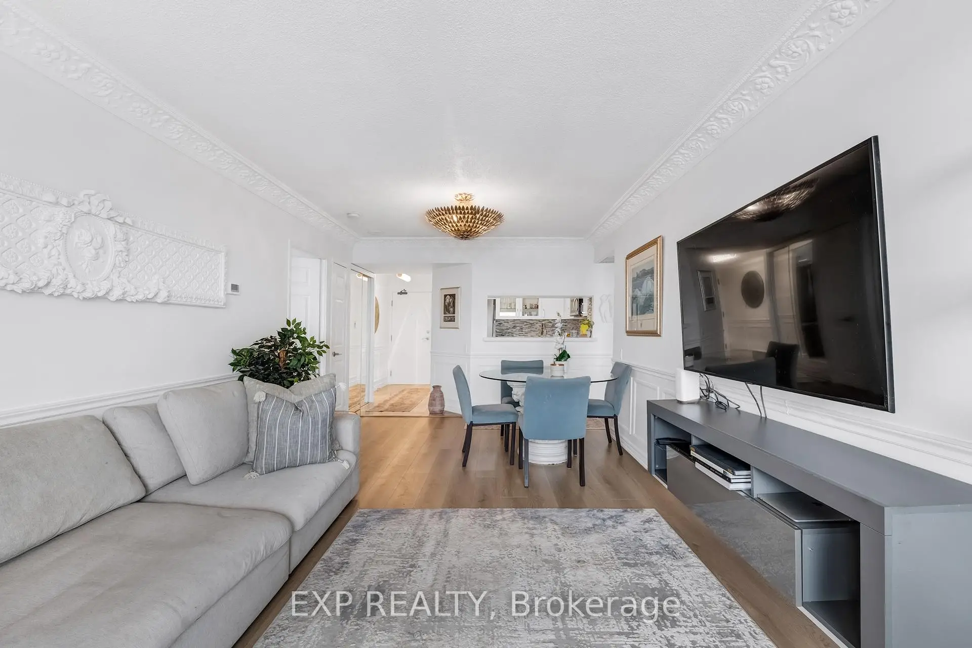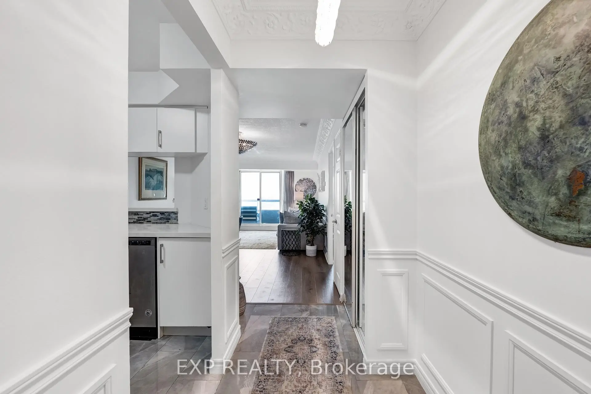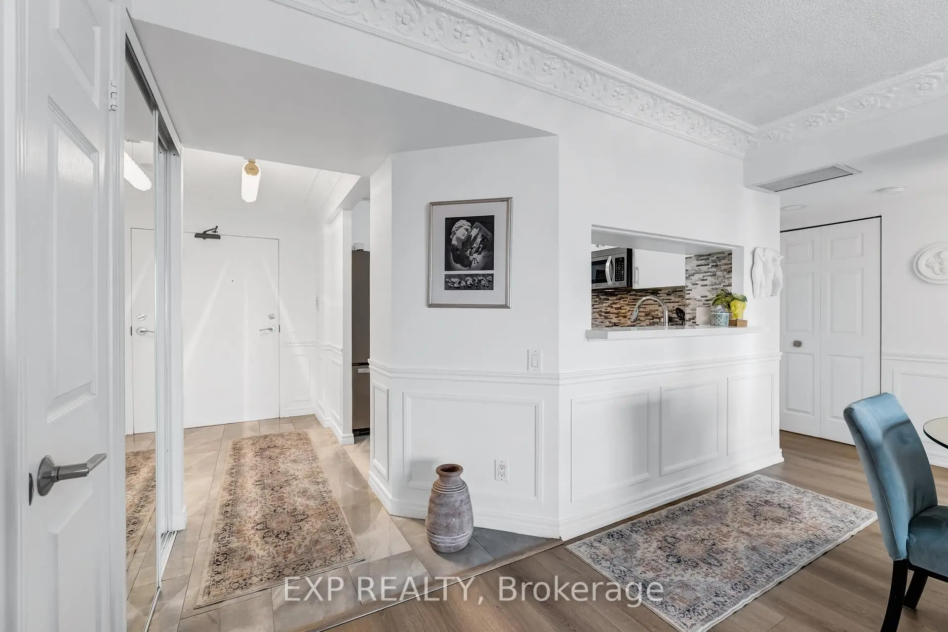 Experience boutique condo living at the highly regarded Crystal Towers, ideally located at 2 Covington Rd in the heart of Englemount-Lawrence. This spacious 2-bed, 2-bath residence offers a bright, functional layout in one of Toronto's most established and walkable neighbourhoods. Boasting 938 sq. ft. of interior space plus a private balcony, this beautifully updated suite features an open-concept layout with 9-ft ceilings and oversized windows with unobstructed eastern exposure, filling the home with natural morning light and skyline views. Updates include new flooring (2025), freshly painted walls, wainscoting & crown mouldings in crisp white, and custom drapery throughout, adding a polished, designer touch. The split-bedroom layout ensures privacy ideal for families, guests, or a home office. The primary bedroom offers a walk-in closet and a fully renovated ensuite (2025) with a modern vanity, while the 2nd bath was also remodelled in 2025 with contemporary finishes. A full-size Samsung front-load W/D adds convenience and move-in-ready appeal. The renovated kitchen (2025) features modern finishes, ample storage, and stainless steel appliances, perfect for everyday living and entertaining. Crystal Towers is a well-managed, amenity-rich building with 24-hr concierge, indoor parking, Sabbath elevator, fitness centre, indoor pool, sauna, party room, and media/theatre room. In a true walker's paradise, this home is steps to Lawrence Plaza (Metro, LCBO, Shoppers Drug Mart) and the vibrant Kosher Corridor (United Bakers Dairy, Bubby's NY Diner, Richmond Kosher Bakery). Families enjoy proximity to Ledbury Park ES/MS and Bialik Hebrew Day School, while commuters have quick access to Allen Rd, Hwy 401, and TTC transit.