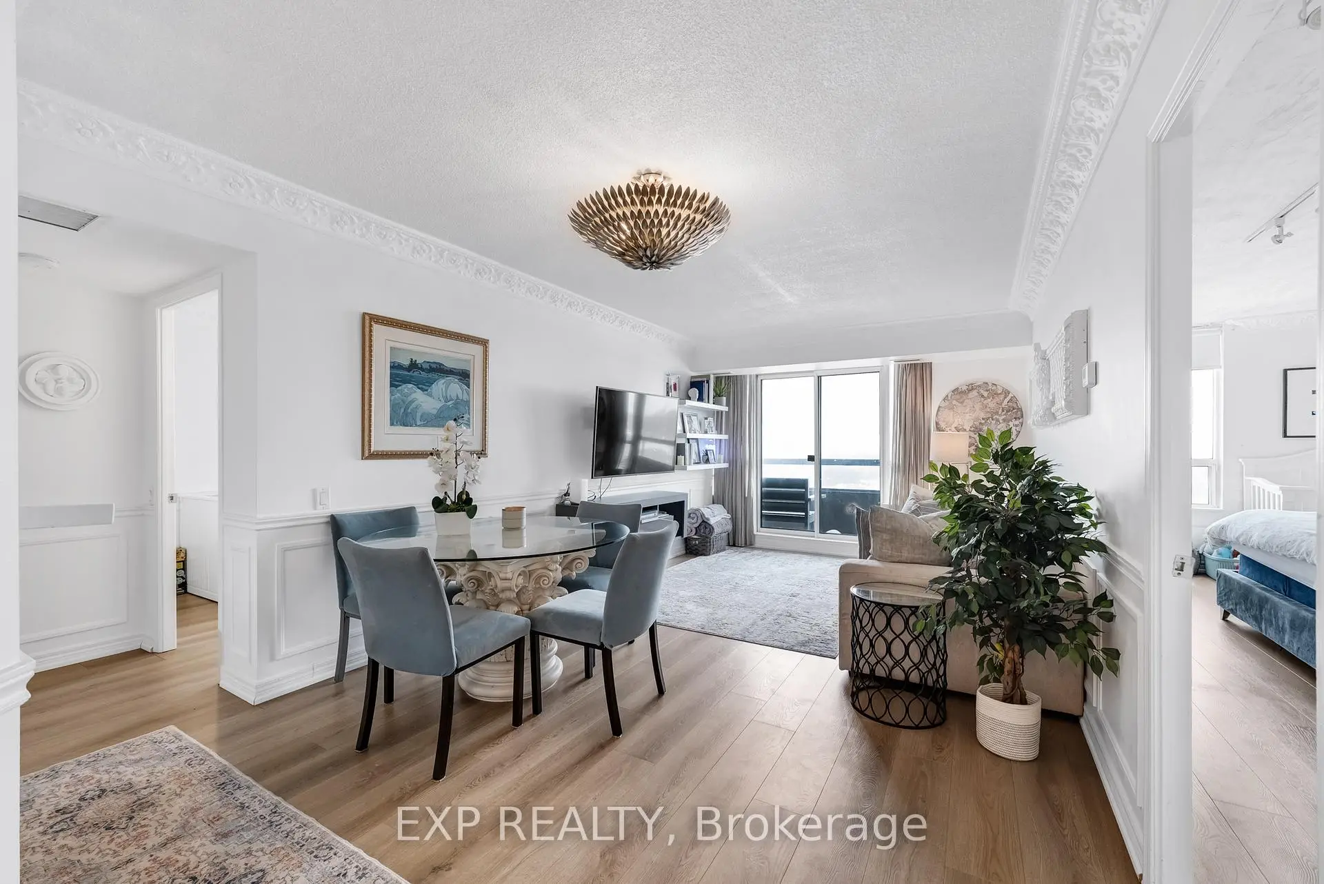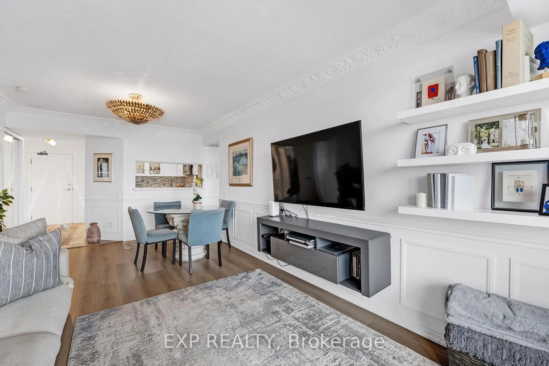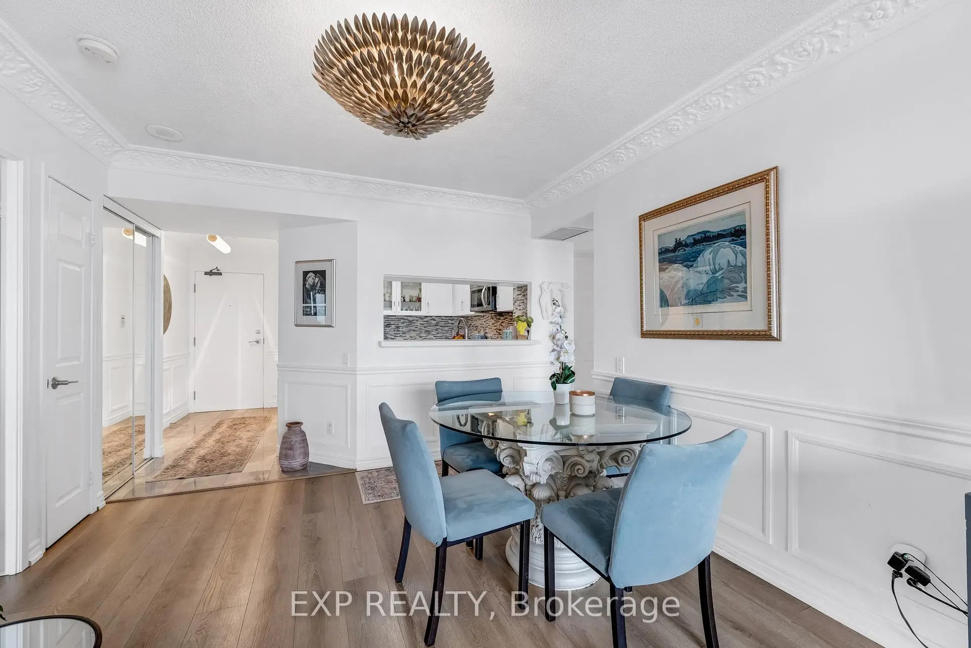Experience boutique condo living at the highly regarded Crystal Towers, ideally located at 2 Covington Rd in the heart of Englemount-Lawrence. This spacious 2-bed, 2-bath residence offers a bright, functional layout in one of Toronto's most established and walkable neighbourhoods. Boasting 938 sq. ft. of interior space plus a private balcony, this beautifully updated suite features an open-concept layout with 9-ft ceilings and oversized windows with unobstructed eastern exposure, filling the home with natural morning light and skyline views. Updates include new flooring (2025), freshly painted walls, wainscoting & crown mouldings in crisp white, and custom drapery throughout, adding a polished, designer touch. The split-bedroom layout ensures privacy ideal for families, guests, or a home office. The primary bedroom offers a walk-in closet and a fully renovated ensuite (2025) with a modern vanity, while the 2nd bath was also remodelled in 2025 with contemporary finishes. A full-size Samsung front-load W/D adds convenience and move-in-ready appeal. The renovated kitchen (2025) features modern finishes, ample storage, and stainless steel appliances, perfect for everyday living and entertaining. Crystal Towers is a well-managed, amenity-rich building with 24-hr concierge, indoor parking, Sabbath elevator, fitness centre, indoor pool, sauna, party room, and media/theatre room. In a true walker's paradise, this home is steps to Lawrence Plaza (Metro, LCBO, Shoppers Drug Mart) and the vibrant Kosher Corridor (United Bakers Dairy, Bubby's NY Diner, Richmond Kosher Bakery). Families enjoy proximity to Ledbury Park ES/MS and Bialik Hebrew Day School, while commuters have quick access to Allen Rd, Hwy 401, and TTC transit.