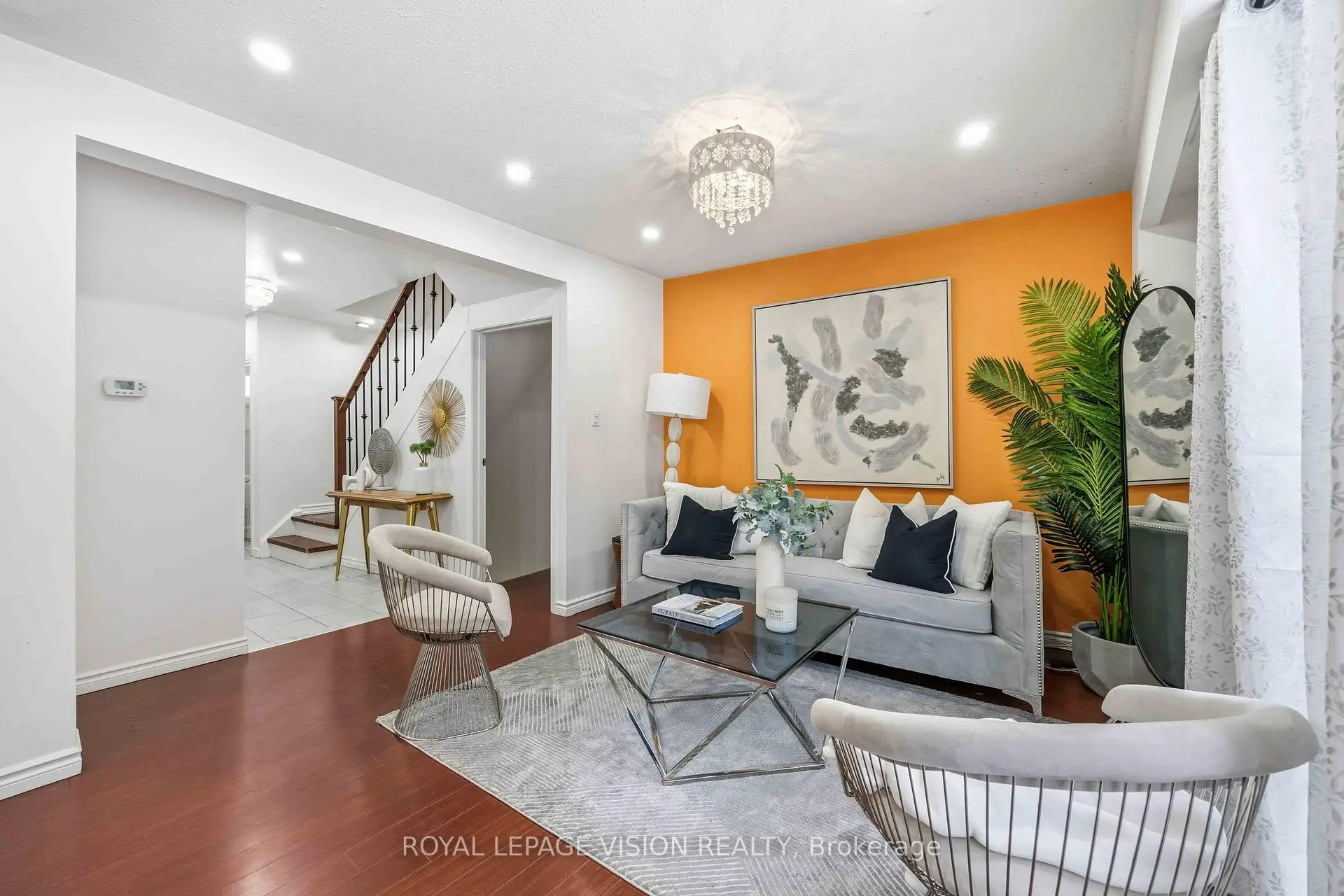Come Home in this Rarely Offered Urban Oasis! Tucked away in a park-like, child-friendly circular courtyard, this beautifully maintained home offers the perfect blend of tranquility and convenience. Step inside and feel the warmth of a residence that has been thoughtfully updated over time. The main floor features a well-appointed L-shaped living and dining area - ideal for both everyday living and entertaining. The modern kitchen boasts quartz countertops and stainless steel appliances, creating a stylish and functional space for family meals. Upstairs, you'll find three spacious bedrooms with soaring ceilings that enhance the sense of openness and light. The finished basement adds exceptional versatility, offering a massive 21-foot bedroom, a partially completed kitchen, and a full 3-piece bathroom - perfect for extended family, guests, or a potential in-law suite setup. The utility room provides generous storage space, functioning as your own private locker. Location is unbeatable - with quick access to Highways 401, 404, 407, and the Don Valley Parkway, all within 500 meters. Downtown access is seamless. Top-ranking elementary, middle, and high schools are within walking distance, along with the library, hospital, community Centre, and medical facilities. Enjoy your own private backyard surrounded by lush greenery - a peaceful retreat in the heart of the city. This is more than just a property - it's a place to truly call HOME! UPGRADE TIMELINE: Roof (2024), Fresh Paint (2026), Powder Room Update (2024), Kitchen (2018), Washer-Dryer (2018), All Light Fixtures (2018), A/C (2011), Furnace- 2025 Dec. MAINTENANCE INCLUDES: Common Elem., Parking, Bldg. Insurance, Water, Cable TV & HIGH SPEED INTERNET.* Some Pictures are taken previously during Summer time.