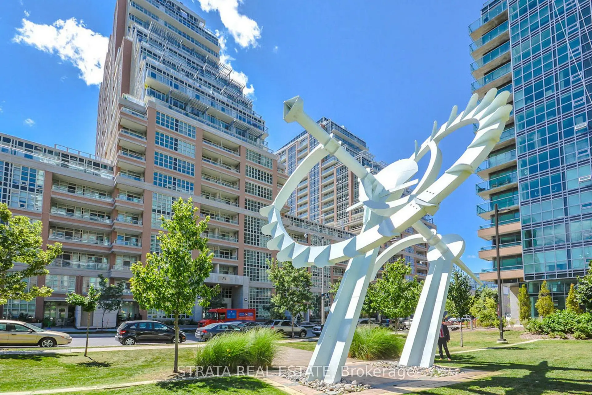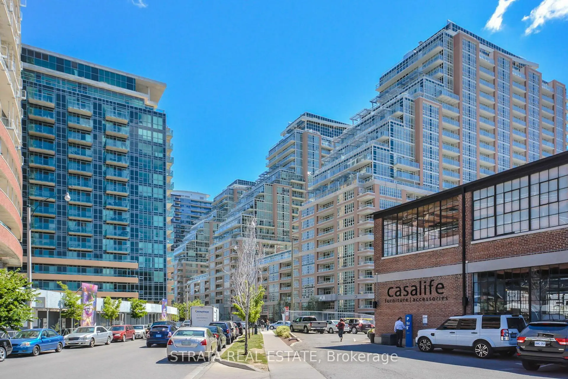 *Liberty Lakeview Towers* In the center of Liberty Village you will find this upgraded 1 bedroom plus den with just shy of 700 sqft. $25k in recent improvements including; new hardwood floors throughout, built-in desk and shelving in the den, custom walk-in closet in the primary bedroom, and automatic blinds. Step inside #513, and immediately feel the airiness of the 17 foot ceilings from this Incredibly well laid out unit, without any wasted space. Featuring a proper foyer (not walking right into the kitchen), loads of clever storage solutions, including a HUGE custom walk-in closet, plus a deep balcony (bbqs allowed!) with a view of Liberty Village Park. The neighbourhood conveniences along with the building amenities are endless, which include, gym, games room, concierge, pool, roof top with bbqs, theatre room, bowling alley, and party room. **Parking plus a locker** complete this opportunity for those who are seeking anything but cookie cutter, while not sacrificing style or function. ***OPEN HOUSE***Saturday and Sunday from 2-4pm.