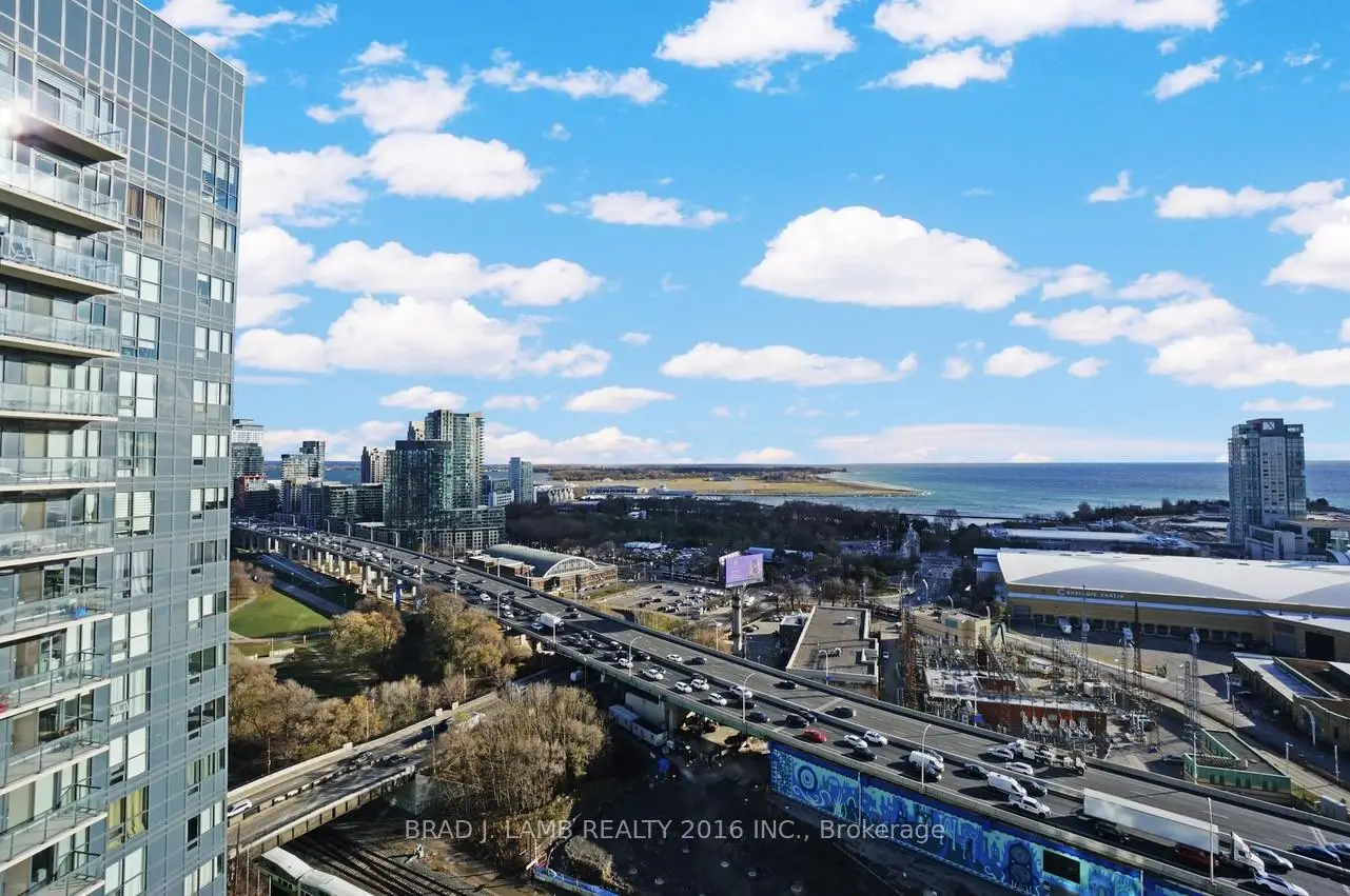 Welcome to your new home in the heart of vibrant Liberty Village! This stunning 1-bedroom plus den, 2-bathroom condo offers 700 sq ft of thoughtfully designed living space, perfect for professionals, couples, or anyone seeking modern city living. Large balcony facing the lake. High up on the 22nd floor, you'll enjoy breathtaking, unobstructed views of the city skyline and Lake Ontario through expansive floor-to-ceiling windows that flood the unit with natural light. The open-concept layout features a sleek kitchen with stainless steel appliances, stone countertops, and ample cabinetry - ideal for cooking and entertaining. The spacious primary bedroom includes a large closet and a private 4-piece ensuite, while the large den with a full closet can be used as a 2nd bedroom, home office, or workout area. A second full bathroom offers convenience for guests. Live steps from everything - public transit, parks, Metro, the waterfront, Exhibition Place, trendy shops, cafes, pubs, BMO Field and downtown Toronto. This is more than a condo; it's a lifestyle. Don't miss your chance to own in one of Toronto's most dynamic and connected neighbourhoods! Brand new paint throughout! And brand new custom roller blinds!