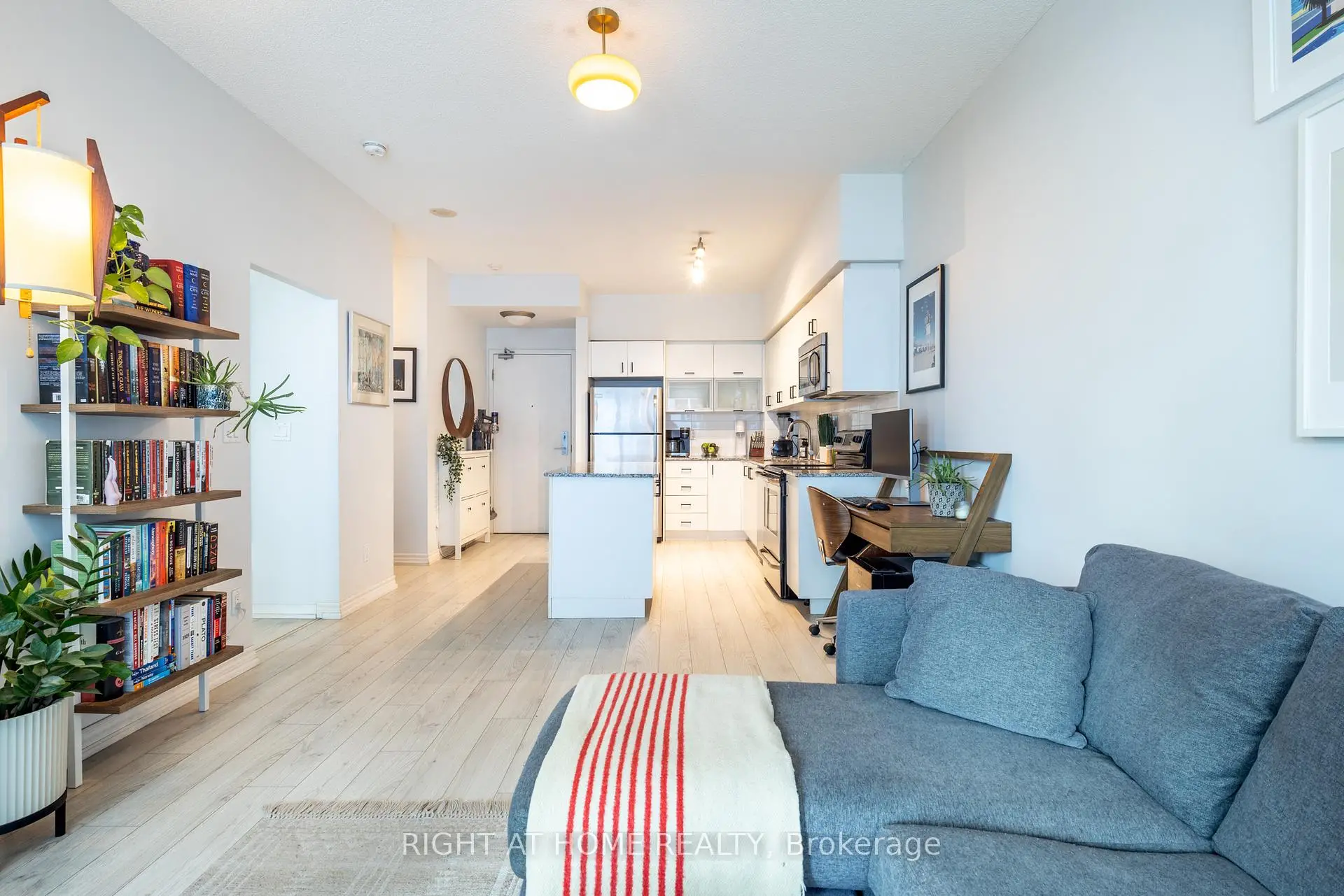 Welcome to this spacious one-bedroom suite in Liberty Village offering over 650sqft of stylish, well-appointed living space. The modern kitchen features a large centre island, stone countertops, full-size appliances and abundant storage - ideal for both everyday living and entertaining. The king-sized bedroom is a rare find and showcases an oversized window, along with double closets and a custom built-in dresser. A sleek bathroom with walk-in glass shower, plus convenient ensuite laundry completes the interior. Residents enjoy premium building amenities including concierge, gym, indoor pool, hot tub, sauna, party room, guest suites, visitor parking and outdoor BBQ/entertaining area. Steps to shops, grocers, restaurants, cafés and just a short walk to King West, Queen West, Trinity Bellwoods Park, Lake Ontario waterfront, and the Downtown Core.