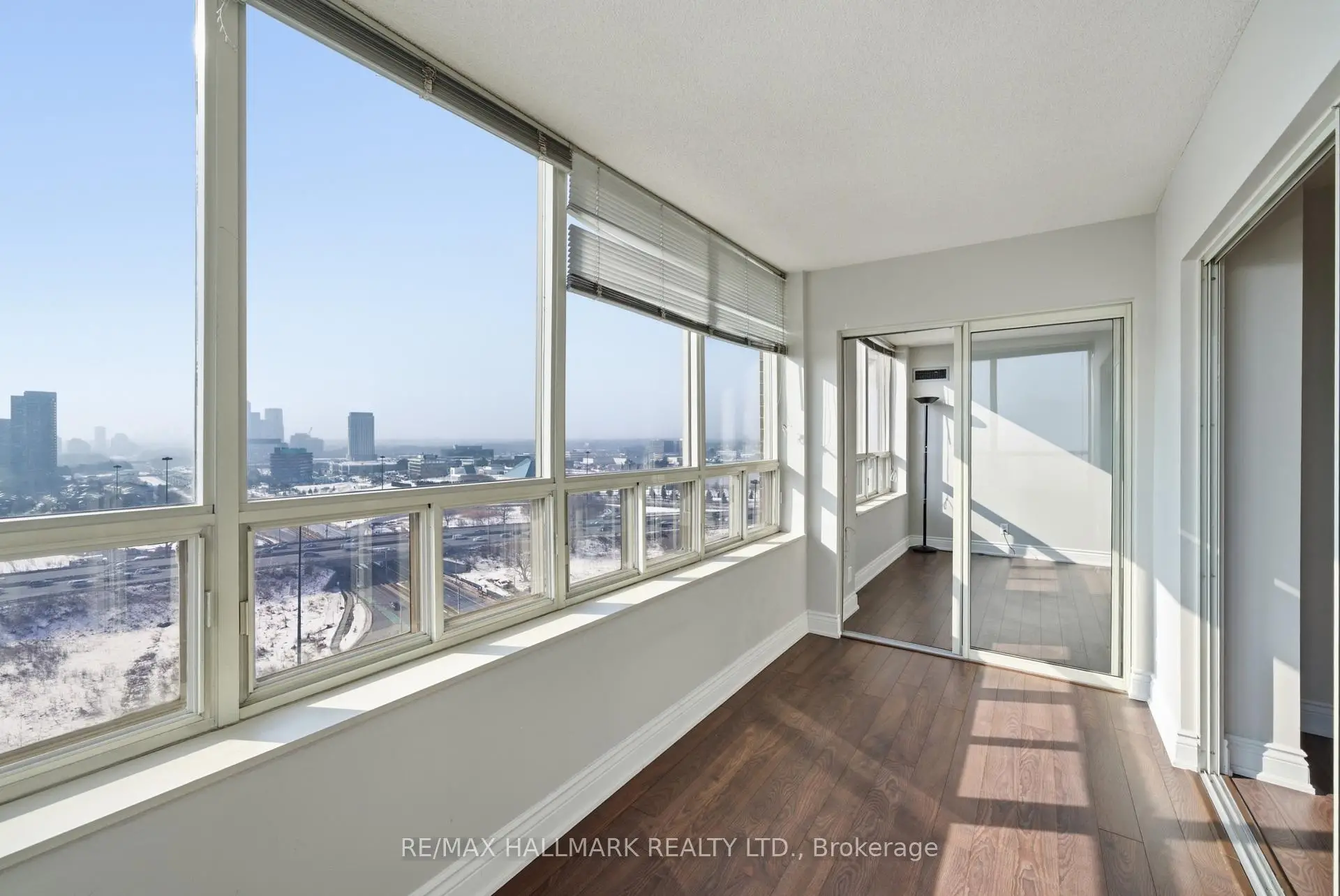 This stunning condo unit on the 20th floor offers a perfect blend of comfort, style, and convenience. The spacious two-bedroom + den layout features large, airy rooms and a flowing floorplan that maximizes space and natural light. The sunroom provides breathtaking views of the city skyline, making it an ideal spot to relax and enjoy sunsets every day. Maintenance fees are inclusive, covering heat, water, and hydro, ensuring hassle-free living. Included parking space is located next to the elevator. The building is well managed and boasts resort-style amenities, including a sunny indoor pool, fully equipped gym, relaxing saunas, and more, all designed for a lifestyle of leisure and wellness. Located just steps from transit, with Wynford LRT stop right outside your door! This family-friendly community is perfect for commuters, offering quick access to downtown while being surrounded by nature trails and some of Toronto's finest green spaces. This is truly a prime location that combines city living with the tranquillity of nature, offering residents the best of Toronto in one exceptional package.