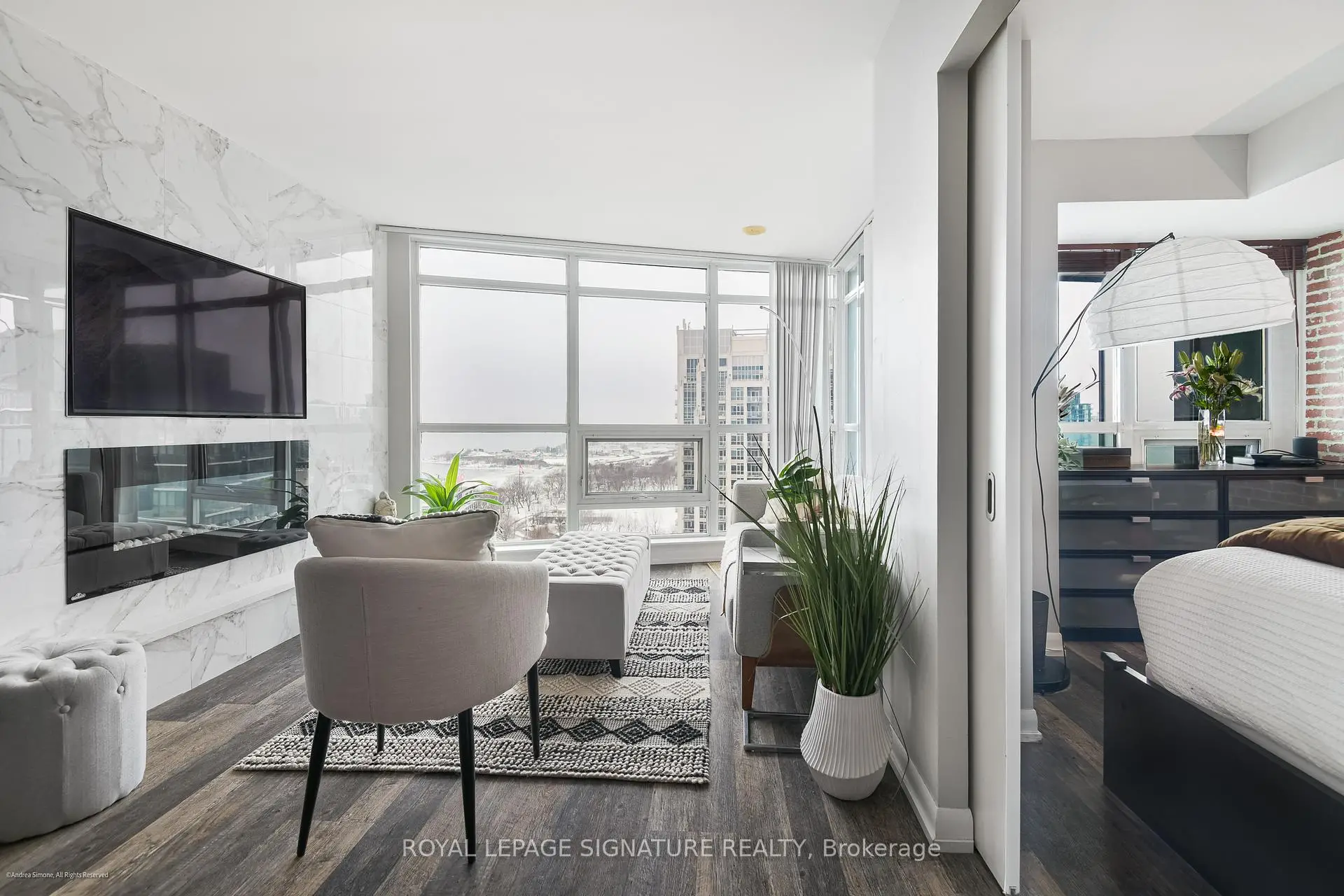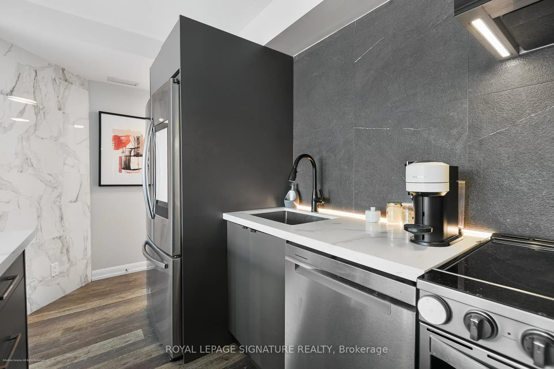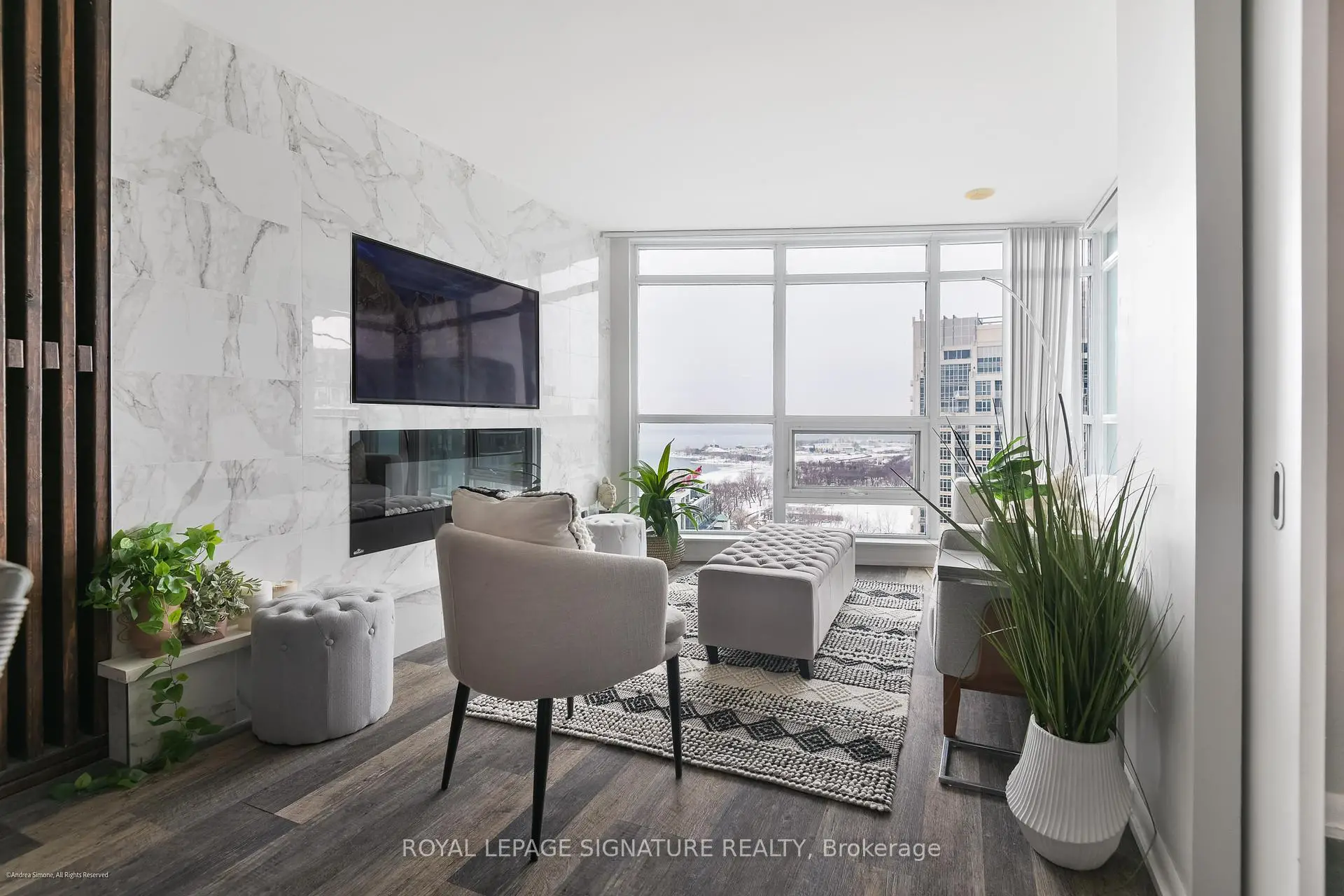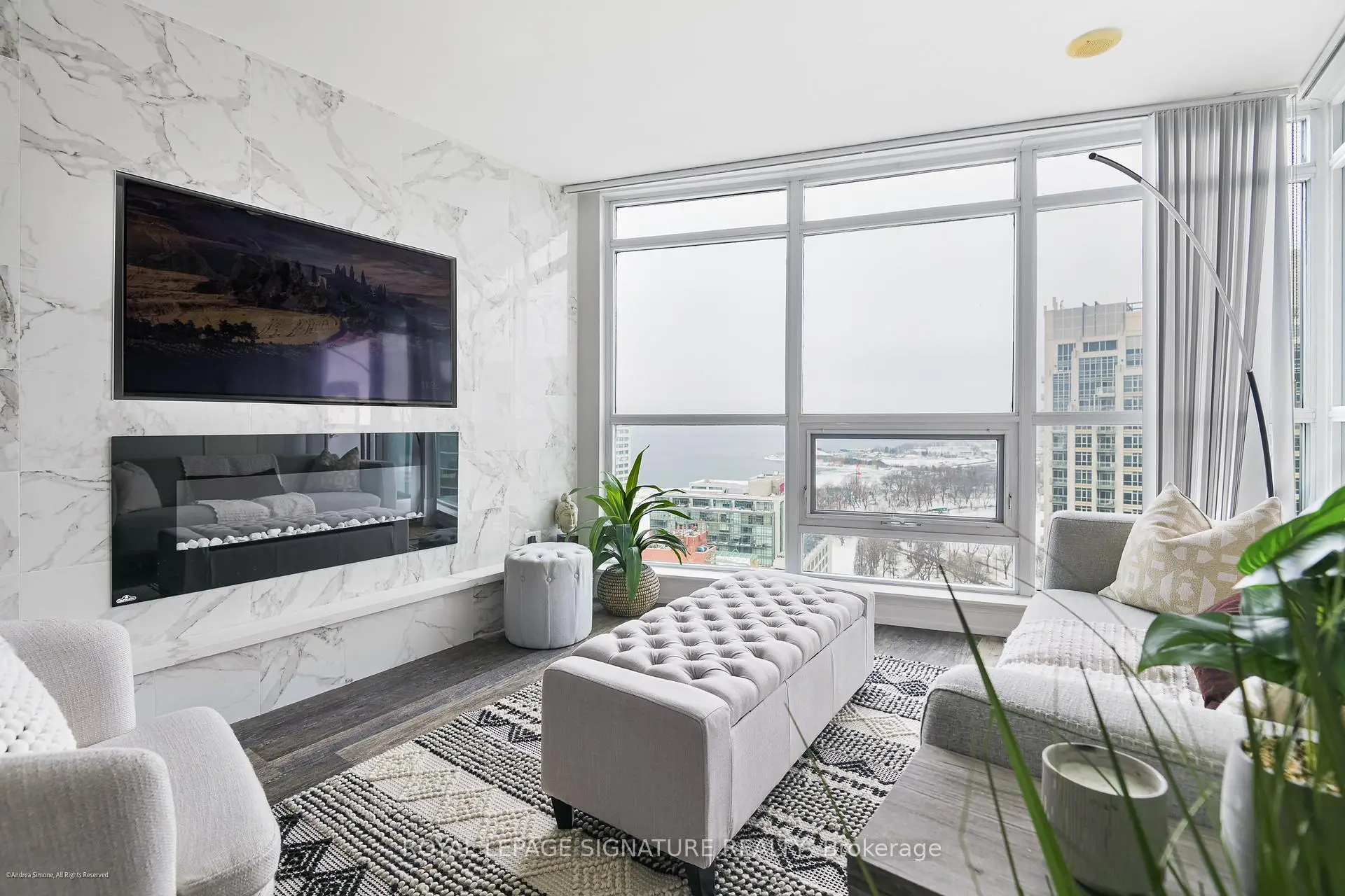Well-appointed and stylishly outfitted - this 1+den is anything but boring beige. Sleek black kitchen with 2-year-old appliances, stone counters, a sizable island, and lots of storage is the heart of the home. The suite sits 26 floors up and overlooks the western waterfront; sunsets are a dream from the balcony. Building perks include a pool, gym, and 24-hour concierge. Situated in a prime waterfront location, you're just steps from the lake, parks, and the Martin Goodman Trail. Loblaws/Joe Fresh is right across the street, plus LCBO, Shoppers, cafes, and restaurants all nearby. TTC streetcars stop just outside the building, with easy access to Union Station, Billy Bishop Airport, and the Gardiner. Urban convenience meets laid-back lakeside living! Parking is rental at $140/M
