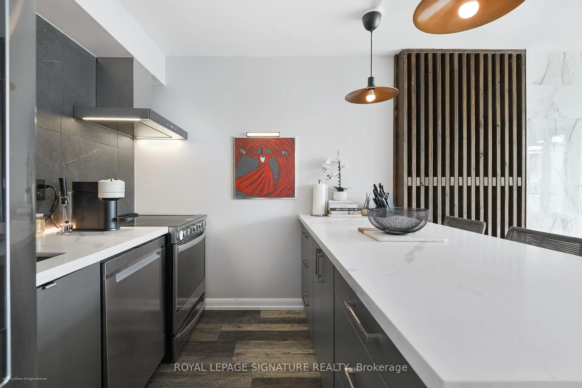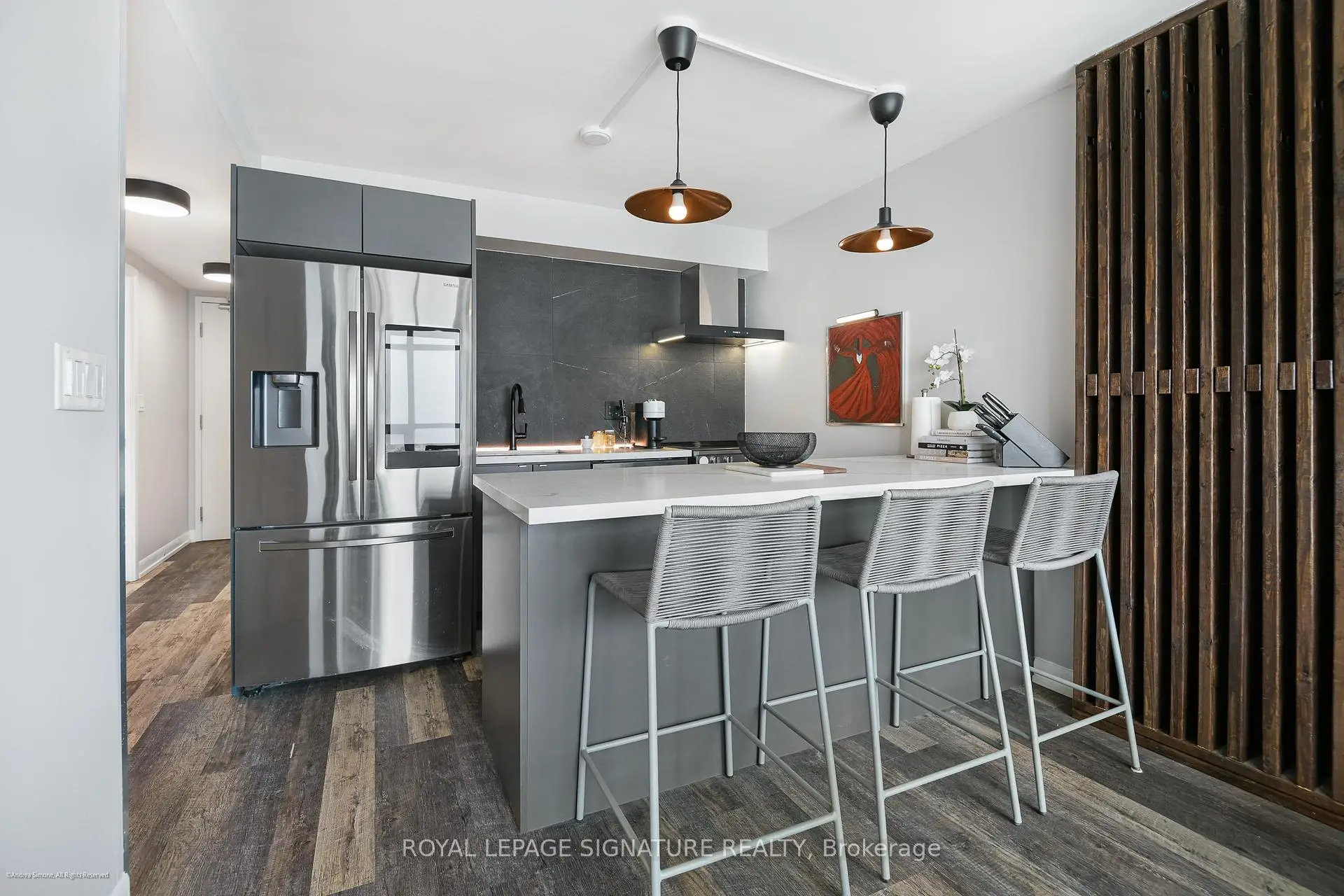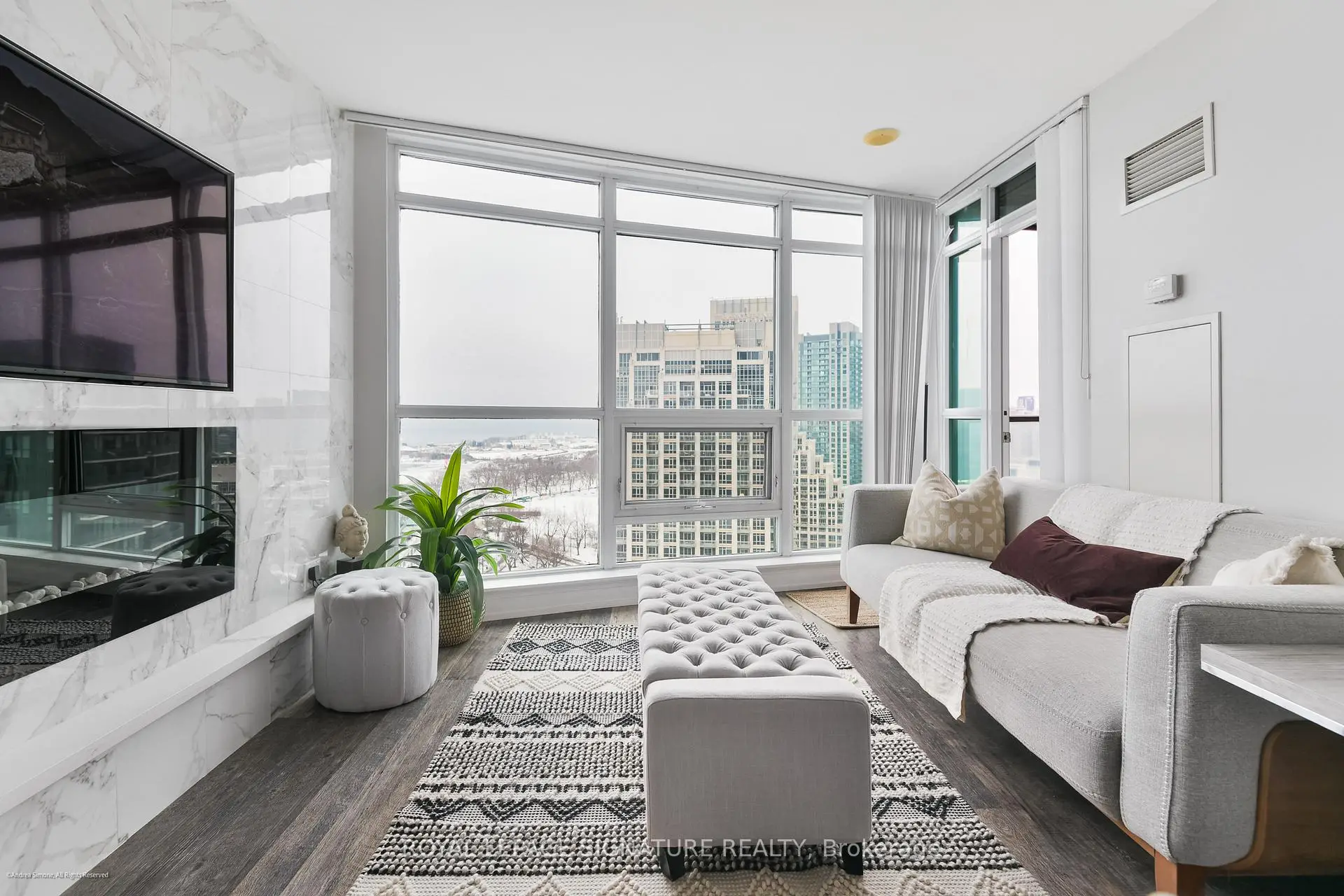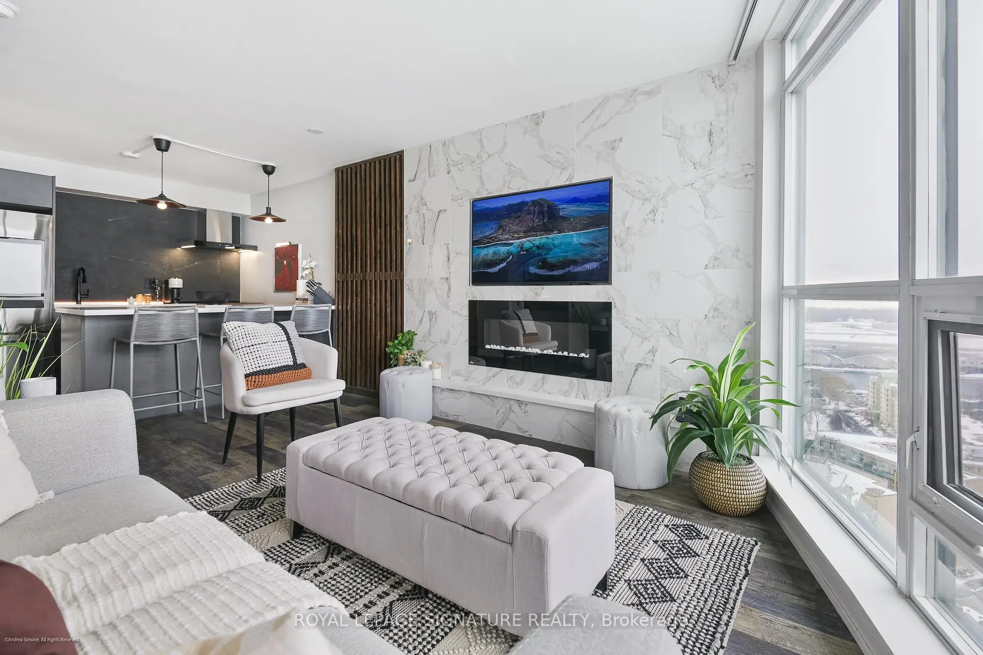 Well-appointed and stylishly outfitted - this 1+den is anything but boring beige. Sleek black kitchen with 2-year-old appliances, stone counters, a sizable island, and lots of storage is the heart of the home. The suite sits 26 floors up and overlooks the western waterfront; sunsets are a dream from the balcony. Building perks include a pool, gym, and 24-hour concierge. Situated in a prime waterfront location, you're just steps from the lake, parks, and the Martin Goodman Trail. Loblaws/Joe Fresh is right across the street, plus LCBO, Shoppers, cafes, and restaurants all nearby. TTC streetcars stop just outside the building, with easy access to Union Station, Billy Bishop Airport, and the Gardiner. Urban convenience meets laid-back lakeside living! Parking is rental at $140/M