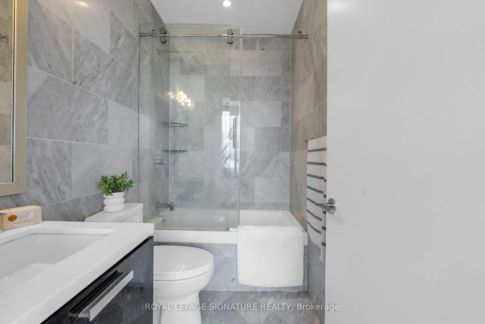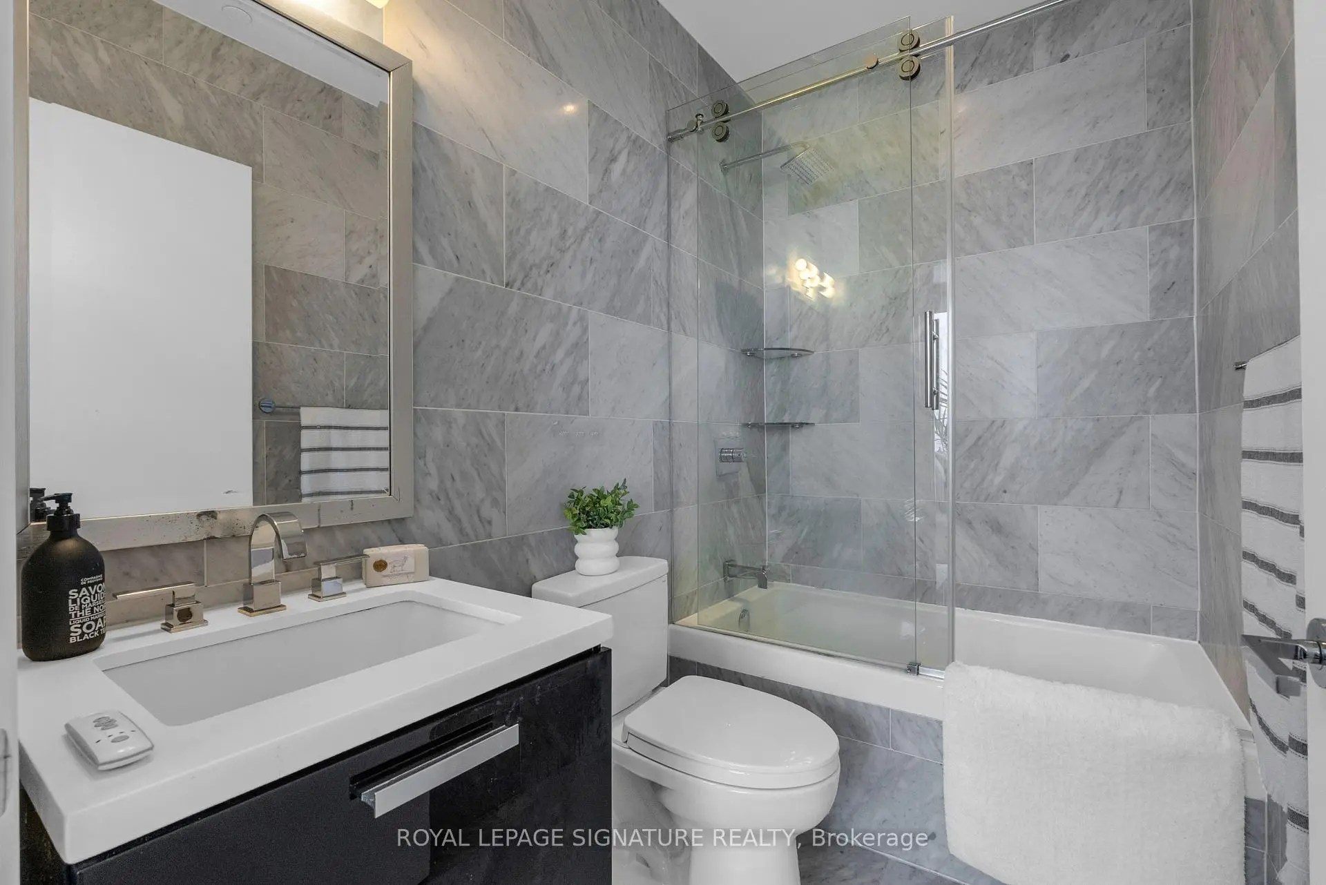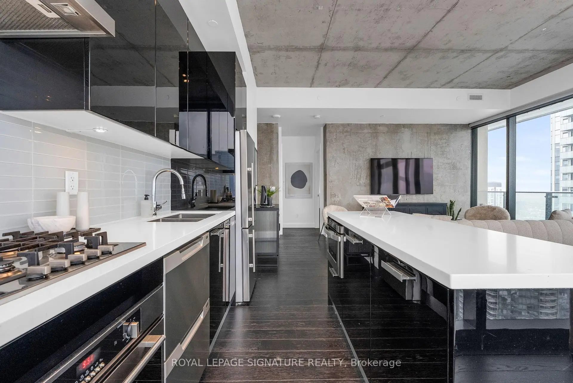 Welcome to the ICONIC Theatre Park's luxurious sub-penthouse at 224 King Street. This RARE 3-bedroom oasis boasts 10' ceilings, hardwood floors, and mesmerizing views from every corner. The modern kitchen, fitted with top-tier stainless steel appliances, pairs perfectly with a sprawling 217 Sqft balcony w/ BBQ gas hookup. The primary suite is a true sanctuary, complete with a marble ensuite and walk-in closet. Steps away from the Financial and Theatre Districts, the underground PATH, elite dining, shopping, and dynamic nightlife. 1 Parking & 3 Lockers!