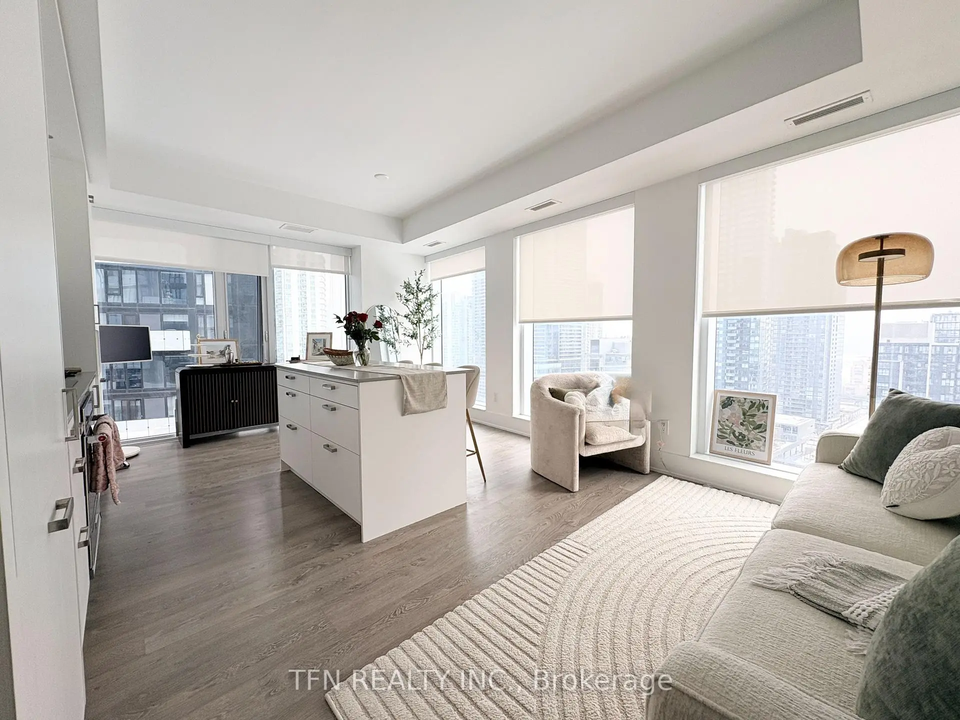 Live at the Centre of It All at The Well Residences by Tridel. Eat. Work. Play. Shop. Live. This iconic, master-planned community is redefining downtown living in the heart of King West, seamlessly blending luxury residences with world-class retail, dining & entertainment. Steps to Toronto's vibrant Theatre District, waterfront trails and premier cultural & sporting venues, this is urban living at its finest. This modern luxury 2-Bedroom Corner Suite offers approximately 916sf of thoughtfully designed living space, showcasing stunning skyline and CN Tower views through expansive floor-to-ceiling Windows. The open-concept layout features 2 full Bathrooms, including a spa-inspired primary ensuite with a Frameless Glass Shower and a sleek contemporary Kitchen equipped with energy-efficient premium appliances, Quartz countertops and a Waterfall Centre Island - perfect for entertaining. Enhanced with Tridel Connect Smart Home technology, complimentary High-Speed Internet, 1 Parking space & 1 Locker, this home delivers both style and functionality. Residents enjoy an exceptional collection of hotel-inspired amenities, including: 24hr Concierge; Spectacular Rooftop Outdoor Pool w/ panoramic city views; expansive outdoor Terrace w/ BBQ areas; State-of-the-art Fitness Ctr & Yoga Studio; Elegant Party & Lounge spaces; Media, Games & Co-working rooms; Business Ctrs & Guest suites; Pet-friendly amenities including a Dog Run. Unmatched Location & Connectivity: 10 mins walk to the Financial District; 5 mins to the Waterfront & Harbourfront; 15 mins to Union Station & PATH; Steps to TTC, Bike Paths & major Highways; Direct access to The Well's 500,000+ sf of curated retail incl. upscale shops, destination restaurants, cafés, Food Hall, LCBO, Shoppers Drug Mart & everyday conveniences. The Well offers a rare opportunity to live, work & socialize in one of Toronto's most dynamic and architecturally significant communities. This is elevated downtown living - redefined!