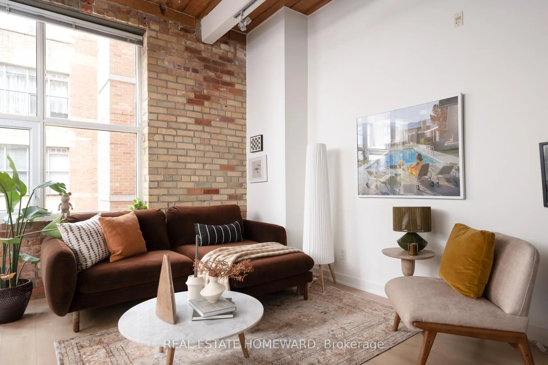 A true hard loft in one of Queen West's most iconic addresses - the Chocolate Company Lofts. Opportunities here are rare, and this newly refreshed suite is a standout. This thoughtfully renovated home pairs authentic brick-and-beam character with meaningful modern upgrades. Soaring ceilings, exposed brick, original wood beams, and oversized windows showcase the industrial charm loft lovers seek - now elevated with carefully selected improvements that make the space entirely move-in ready. The open-concept living, dining, and kitchen area has been completely reimagined with new flooring, brand-new cabinetry and countertops, and a newly installed heat pump ($8,500) provides efficient year-round heating and cooling. The kitchen offers space to dine in, while the generous living area allows for various flexible configurations (see various layouts in the photography). The washroom has been updated with a sleek new glass shower enclosure, adding a polished, contemporary finish. The bedroom is well proportioned and quietly tucked away, offering comfortable separation and ample closet space. In-suite laundry adds everyday practicality. Located directly across from Trinity Bellwoods Park, the setting is truly exceptional. Step outside to enjoy the very best of Queen West - acclaimed cafés, restaurants, boutiques, and convenient transit - all with the park as your front yard. A rare chance to own a renovated hard loft in a landmark building - where historic character meets modern comfort in one of Toronto's most coveted neighbourhoods.
